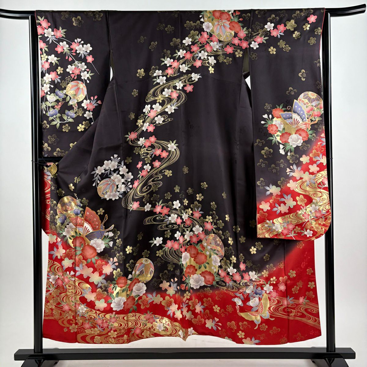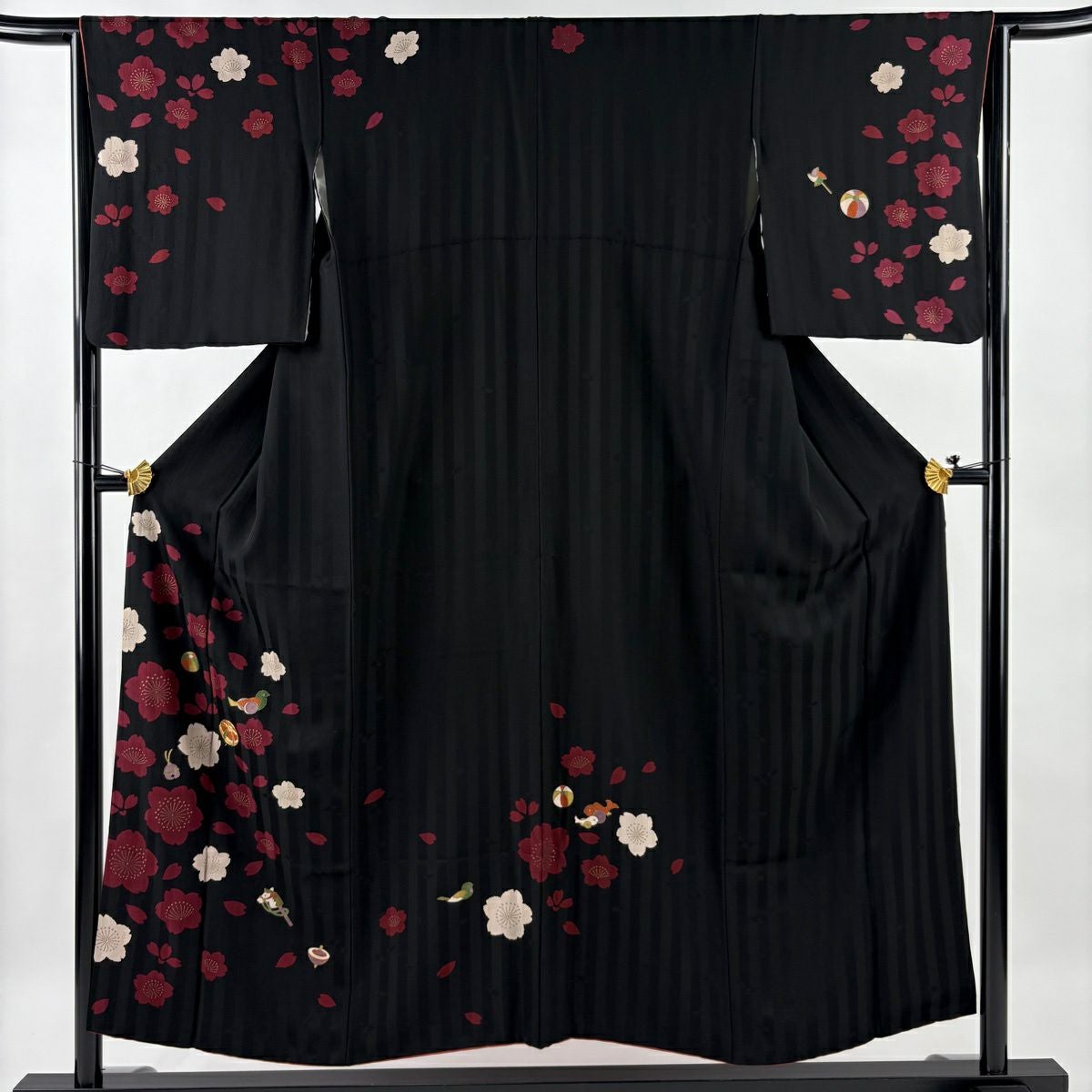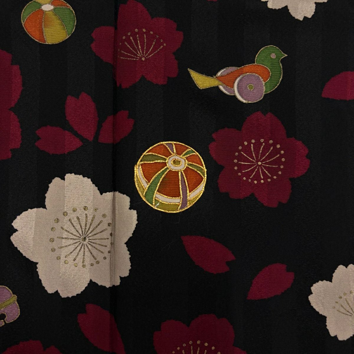 付下げ 身丈151.5cm 裄丈63cm S 袷 桜 鞠 金糸 金彩 黒 正絹 秀品
