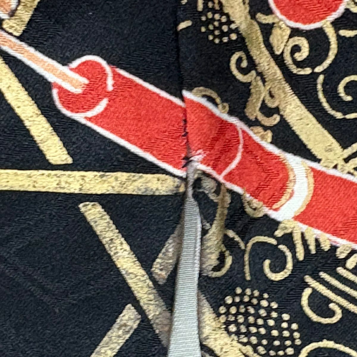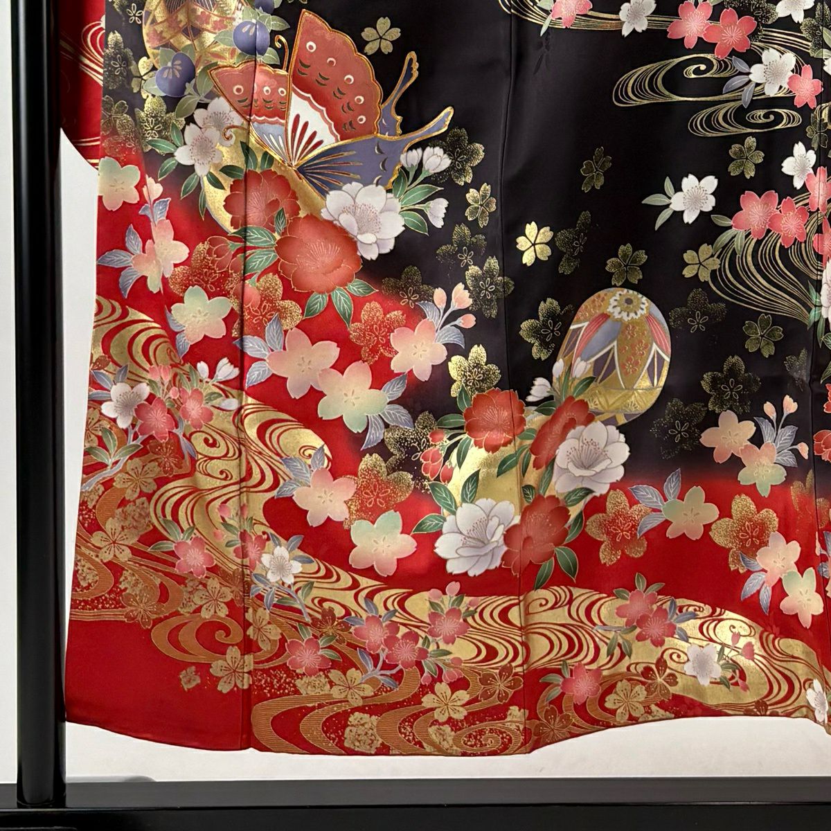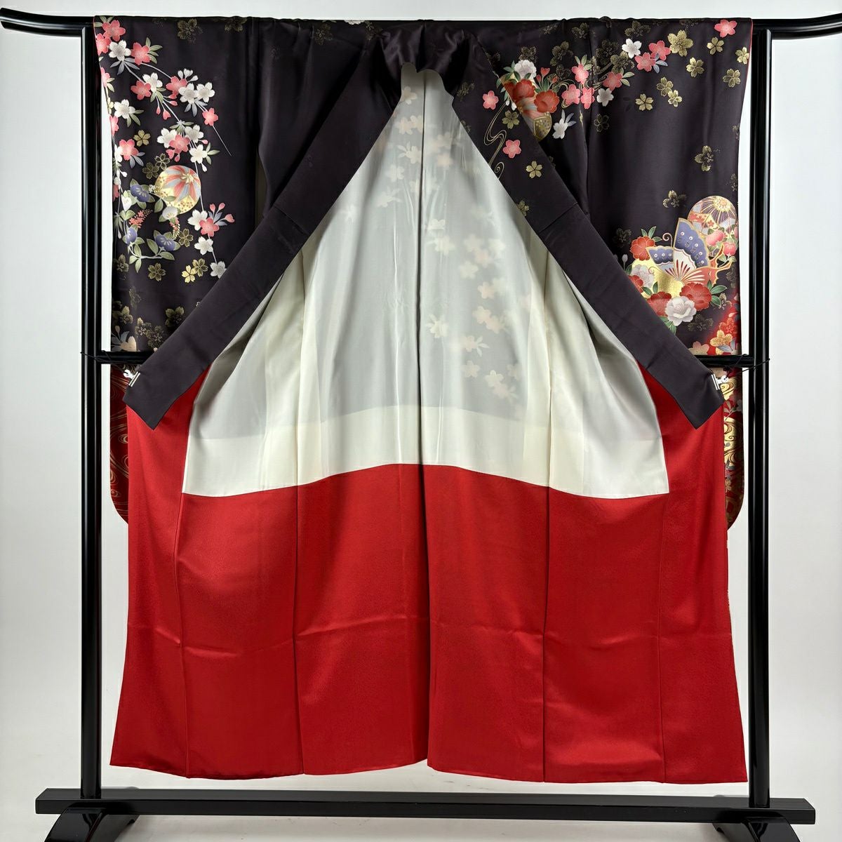 付下げ 身丈151.5cm 裄丈63cm S 袷 桜 鞠 金糸 金彩 黒 正絹 秀品