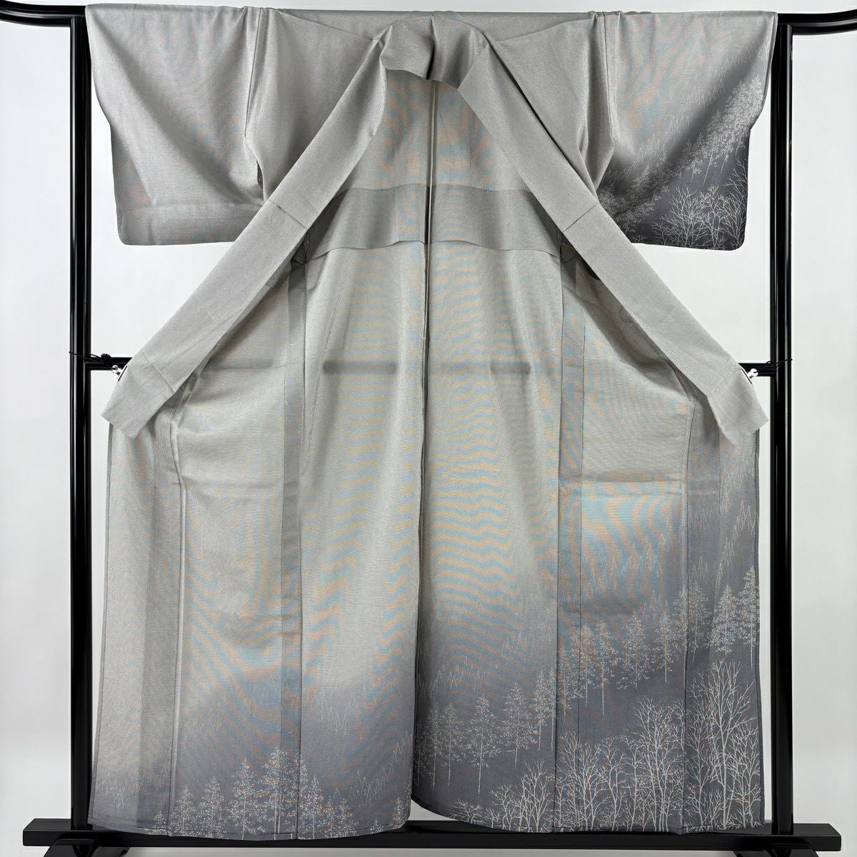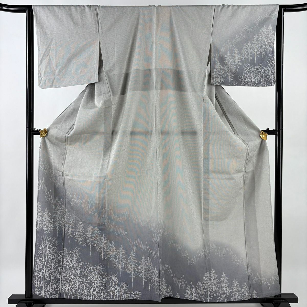 付下げ 身丈160.5cm 裄丈64cm M 薄物 樹木 ぼかし 灰色 正絹 秀品