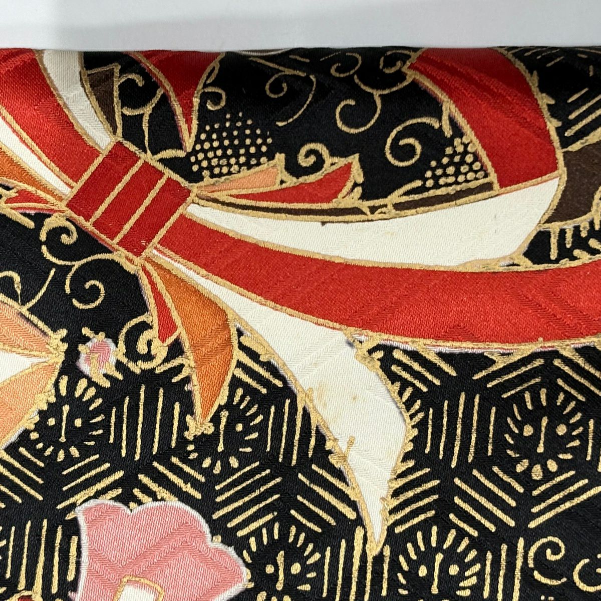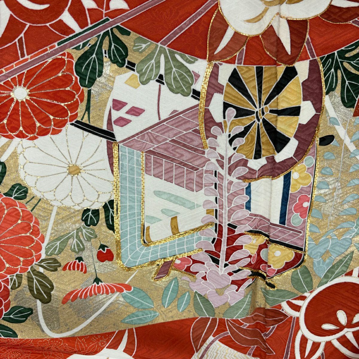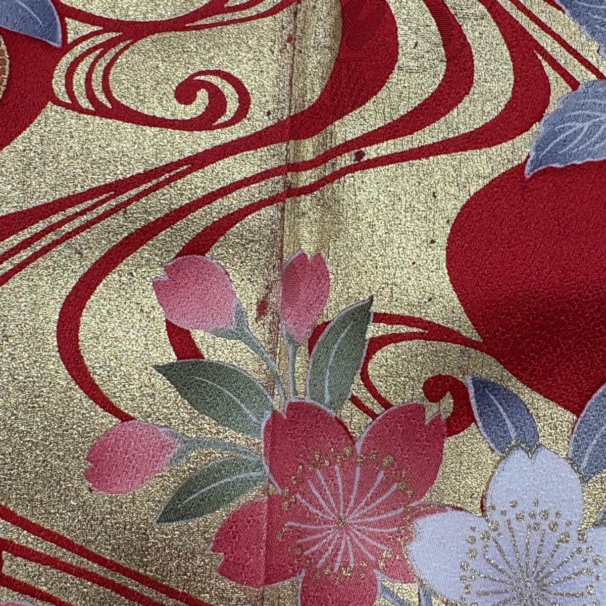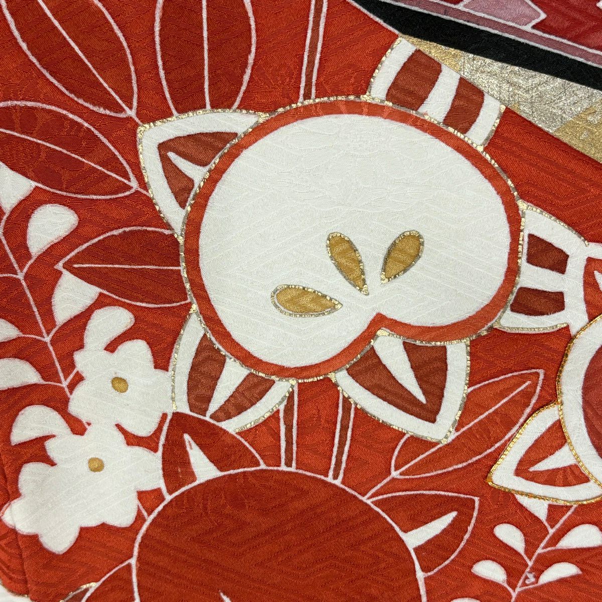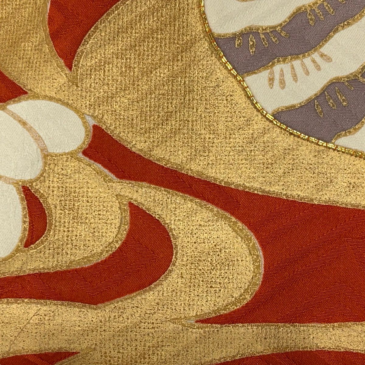 振袖 身丈168cm 裄丈67cm M 袷 御所車 橘 金糸 金彩 朱色 正絹 秀品