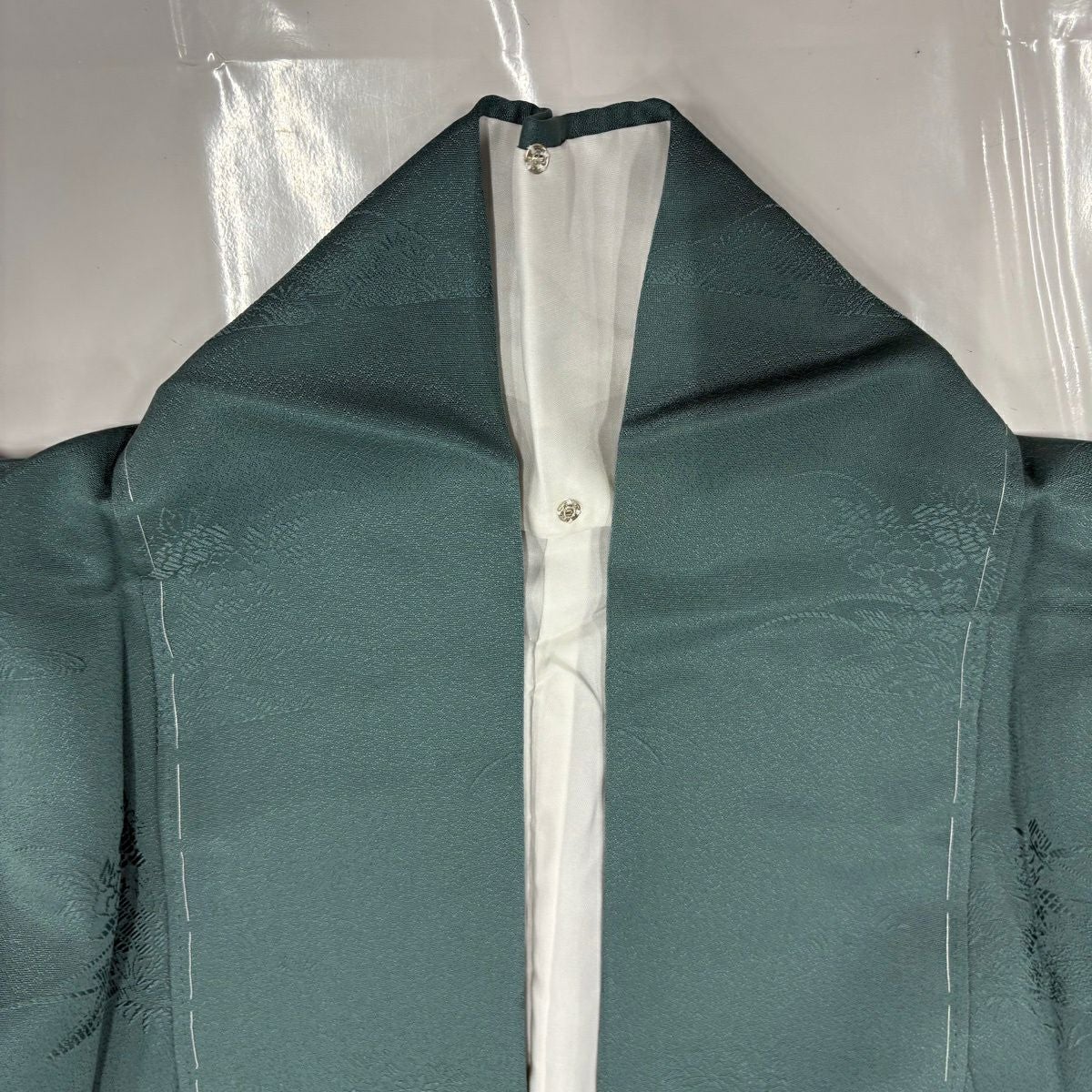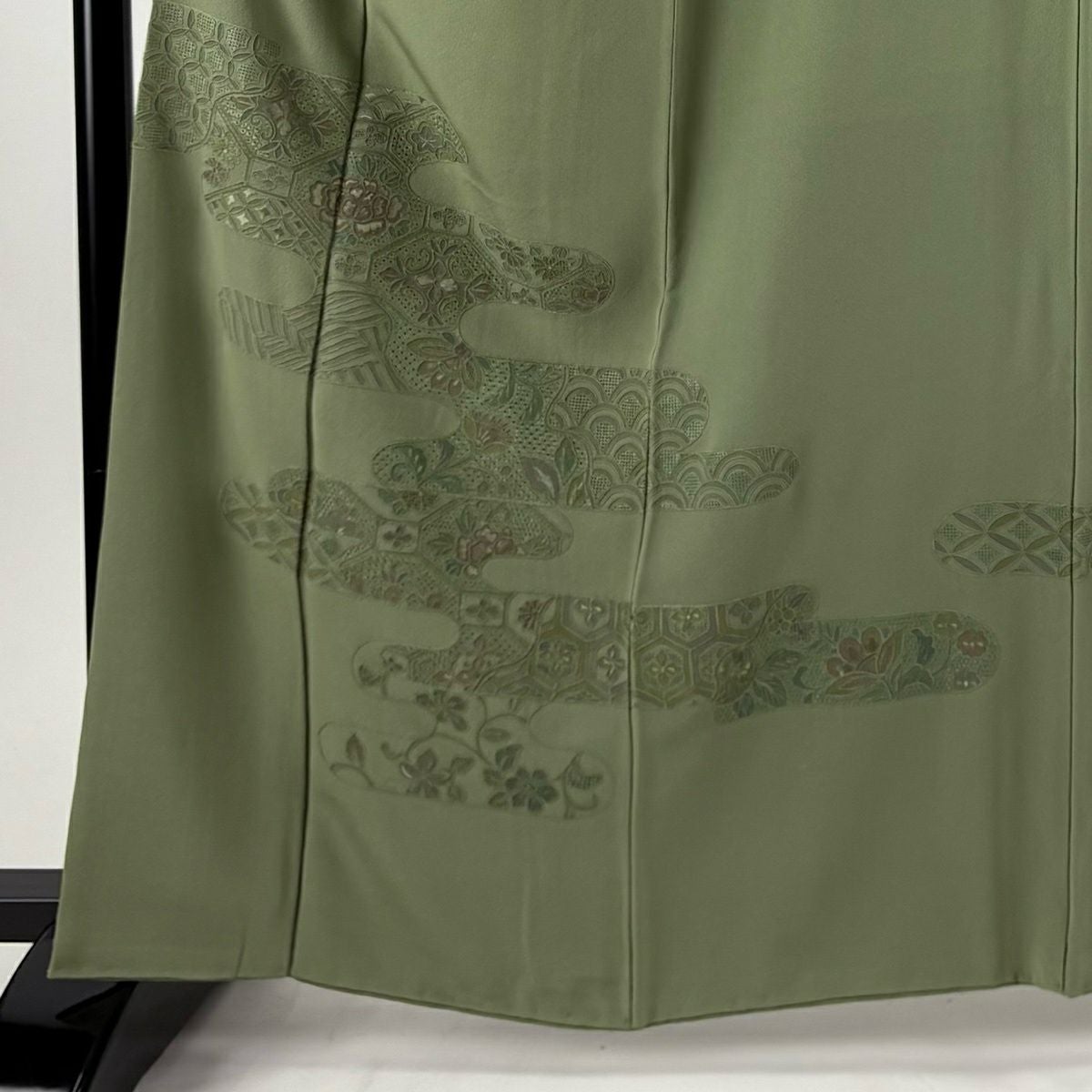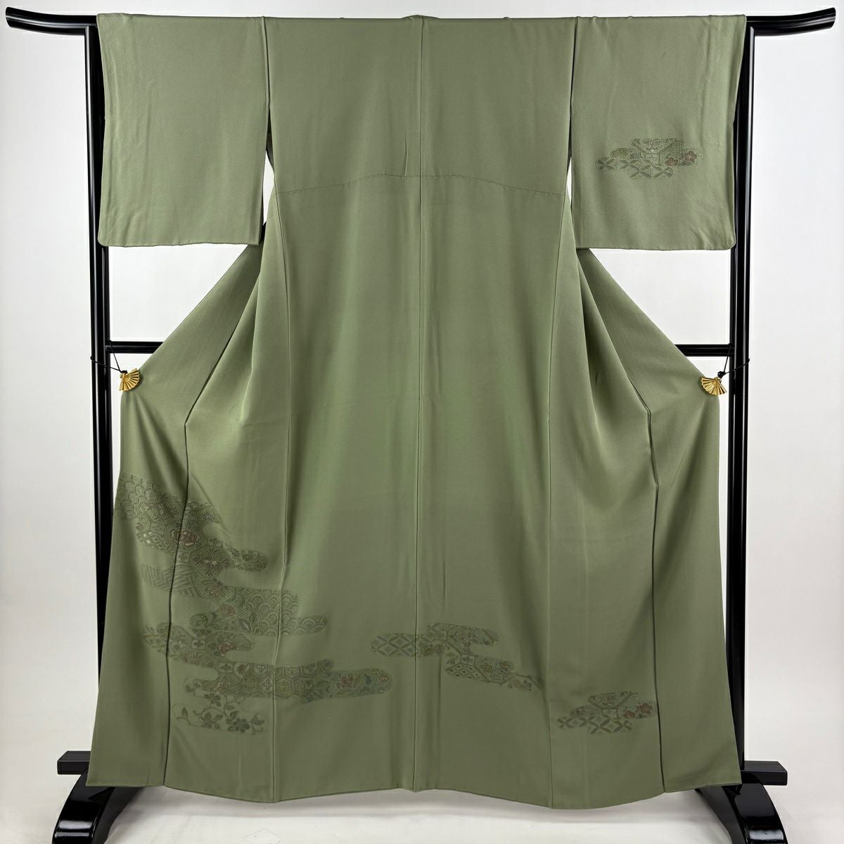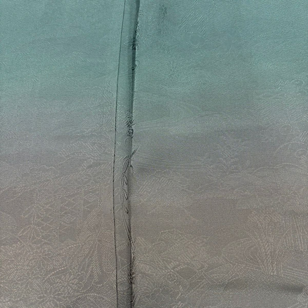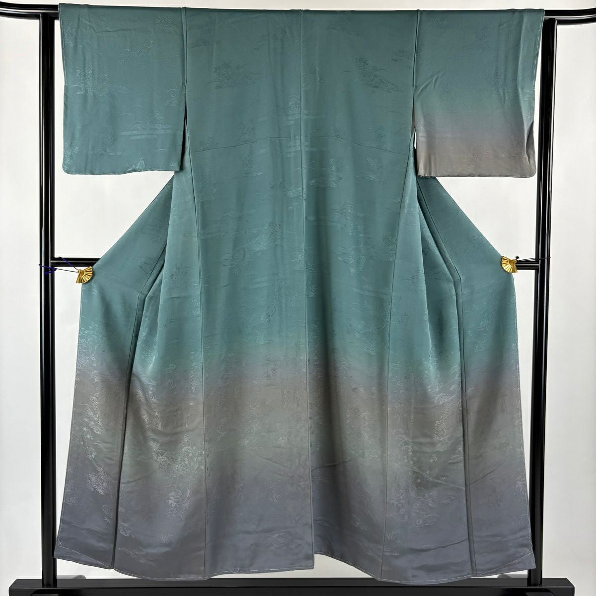 付下げ 身丈151cm 裄丈63.5cm S 袷 地紋 染め分け 灰緑 正絹 秀品