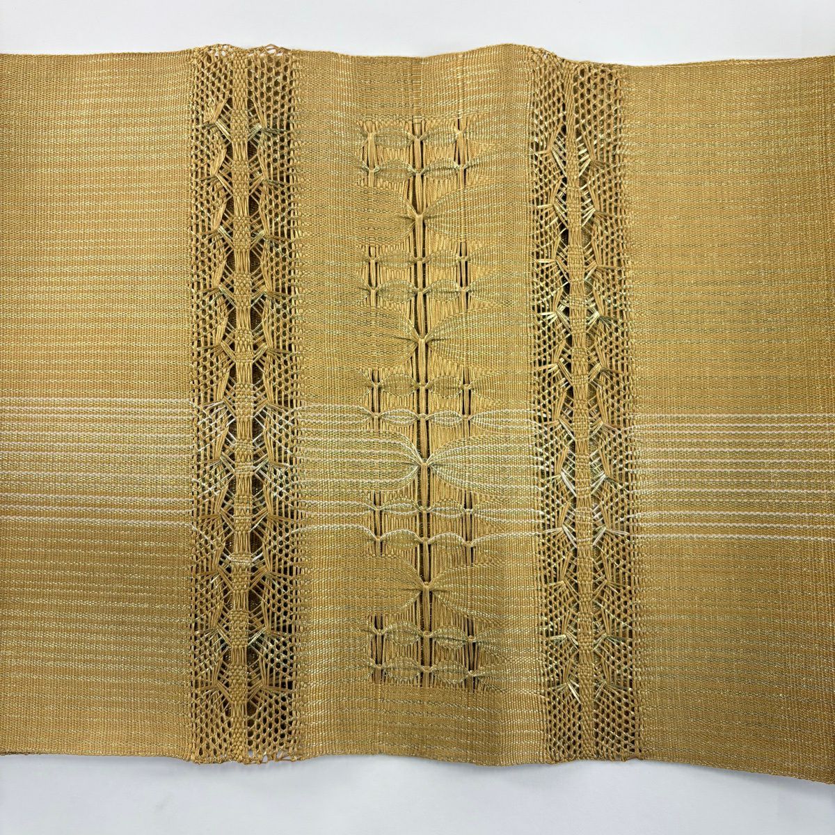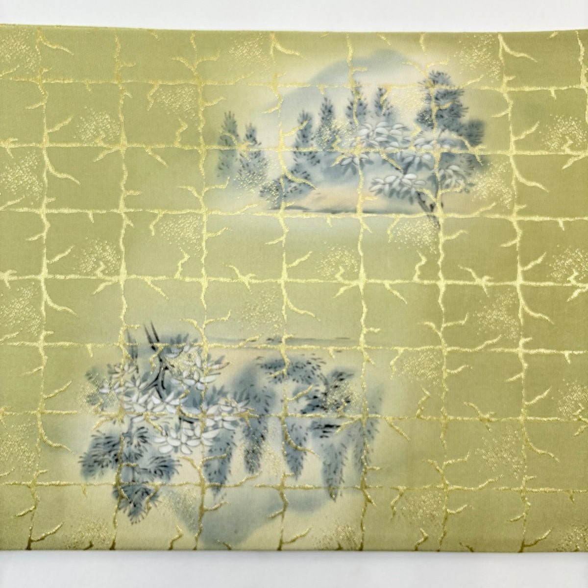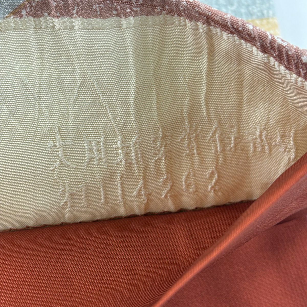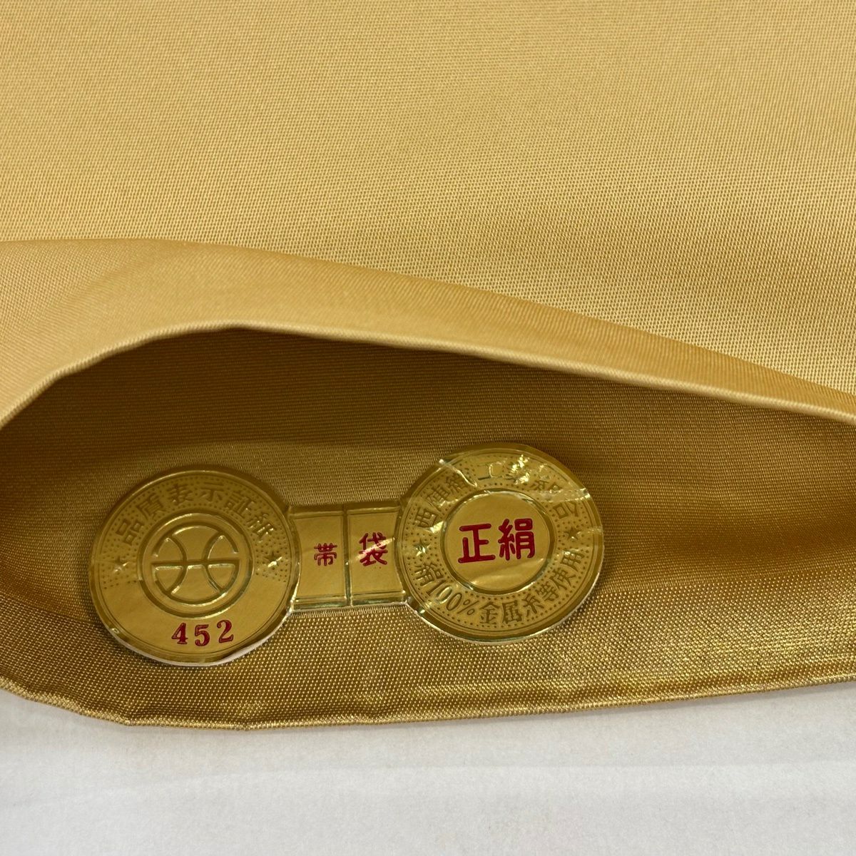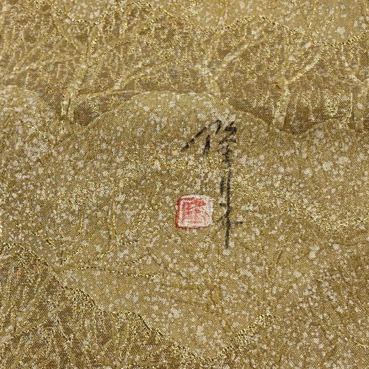 【美品】 袋帯 秀品 川島織物 落款あり 扇面 草花 金糸 からし色 六通 正絹