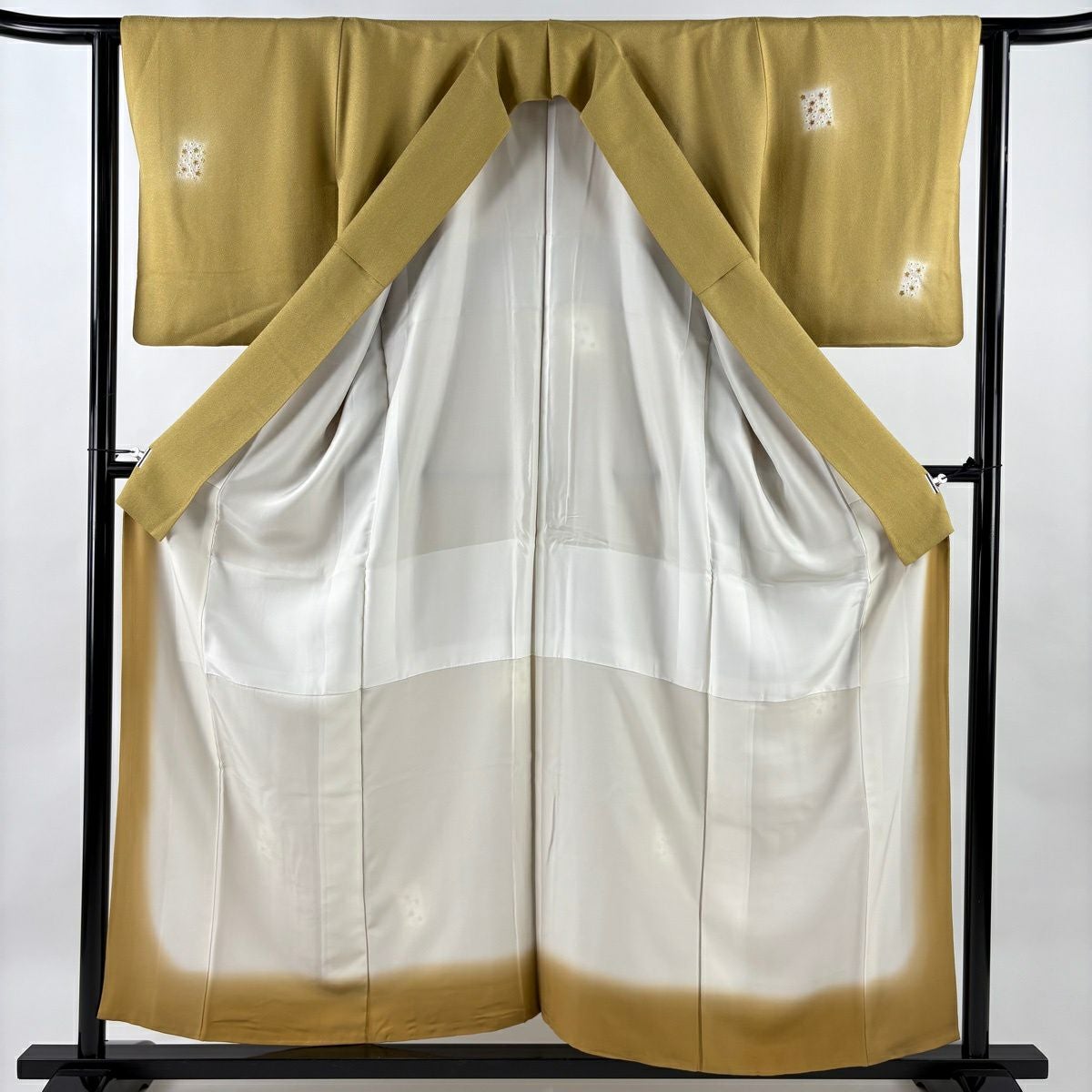 付下げ 身丈156.5cm 裄丈63cm S 袷 小花 金彩 からし色 正絹 秀品