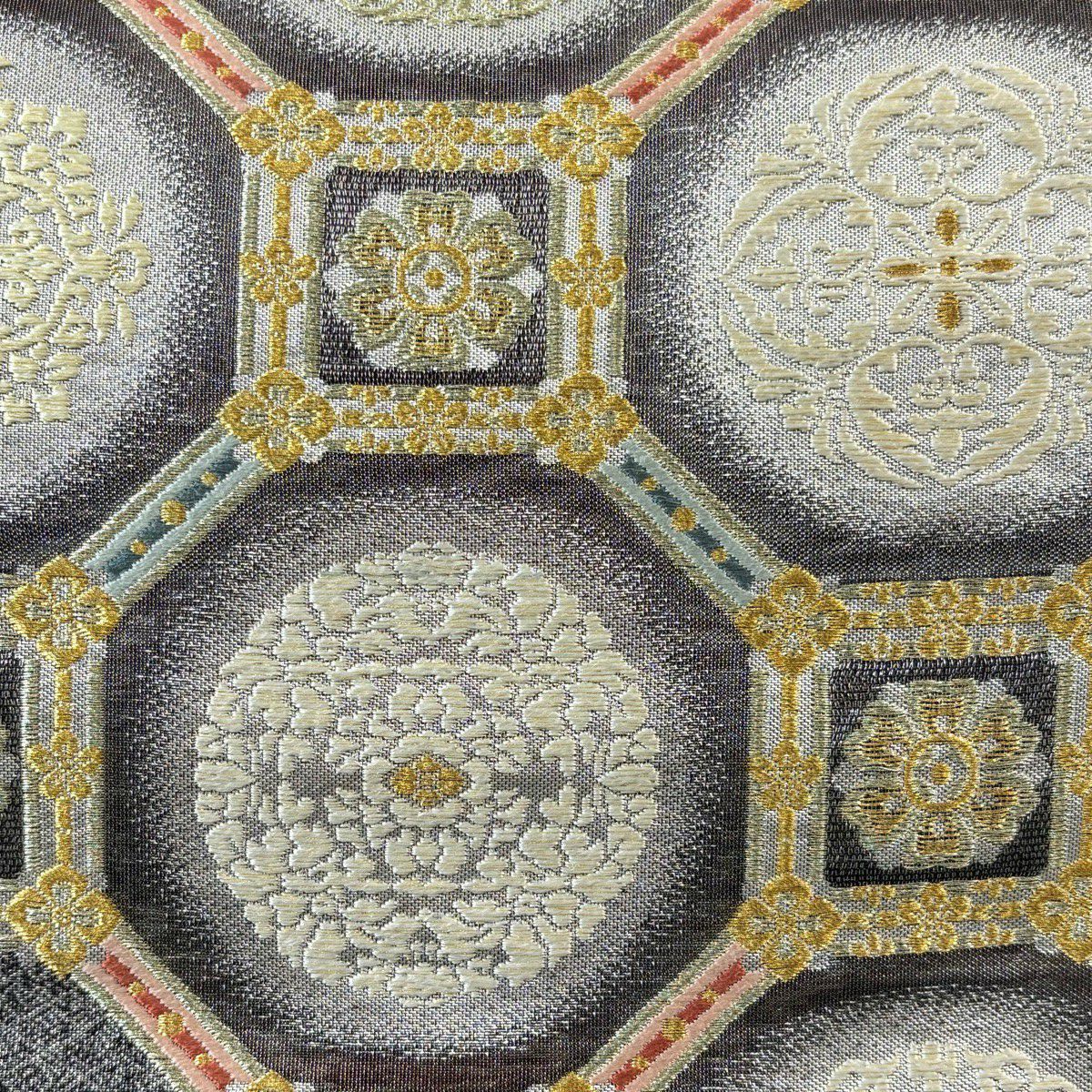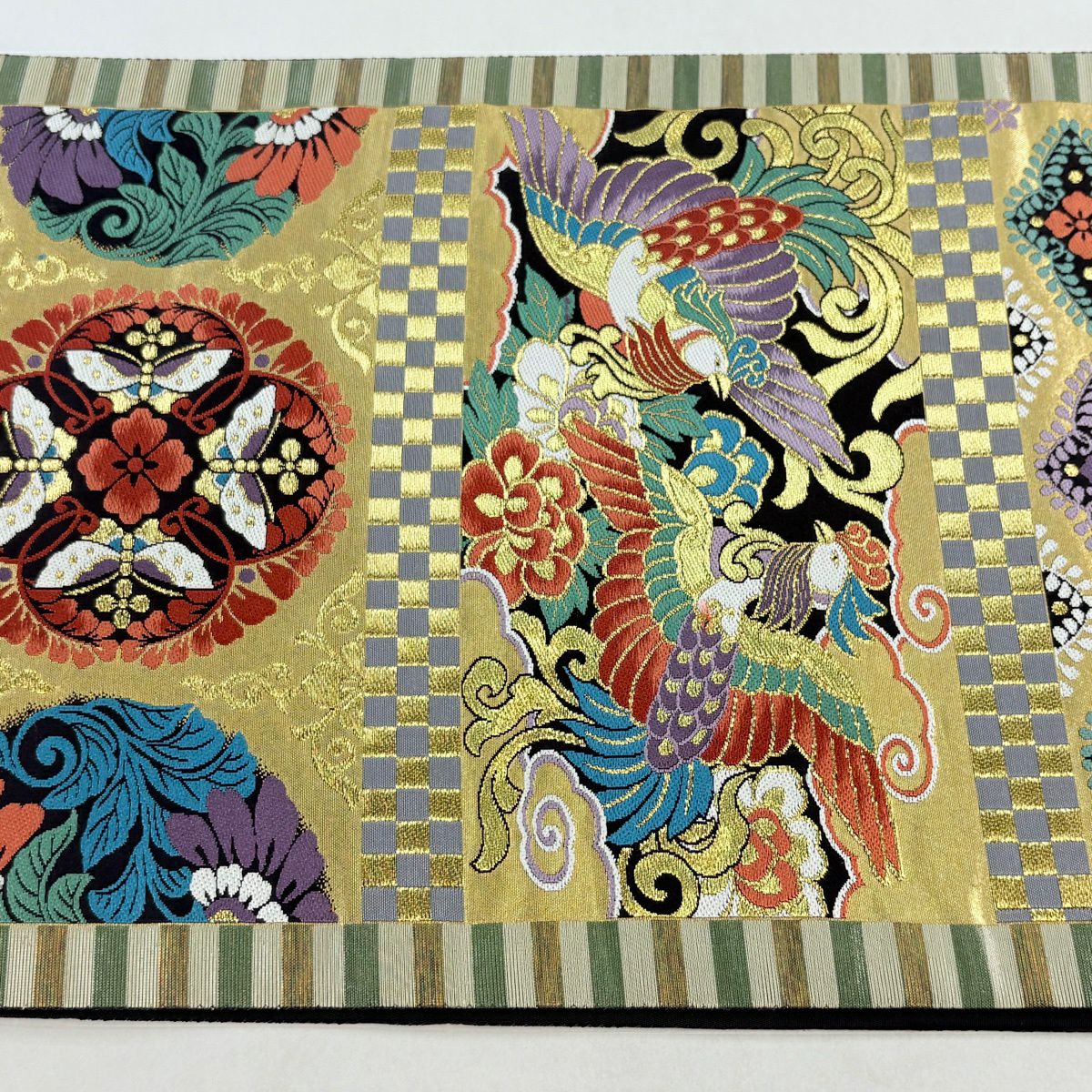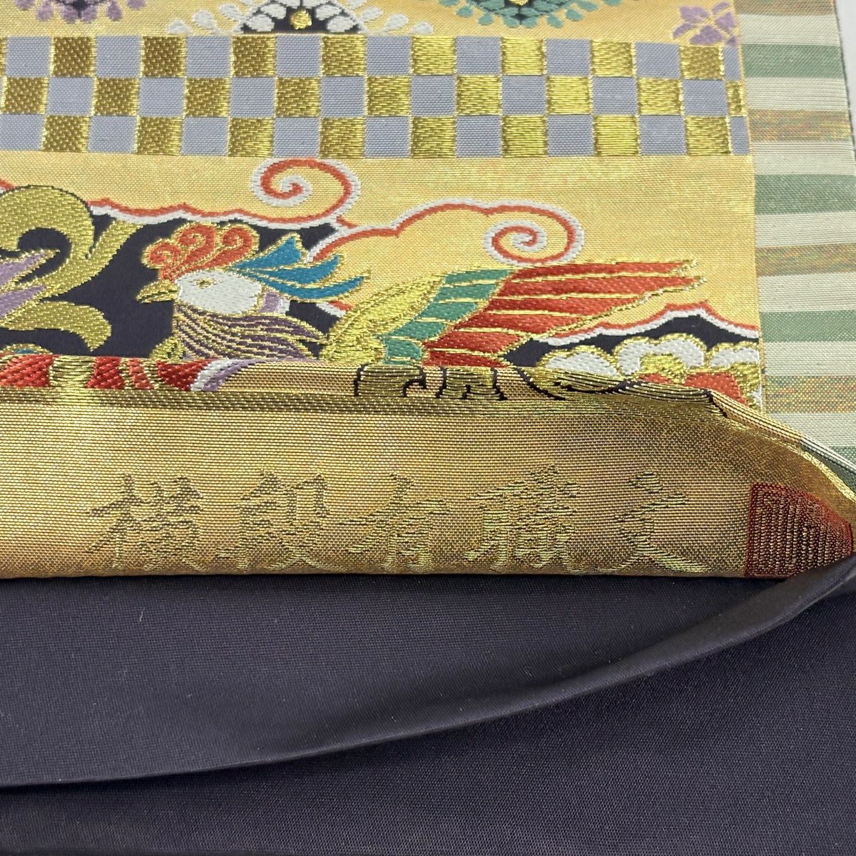 【美品】 袋帯 秀品 蜀江取天平文 向かい鳥 華文 金銀糸 箔 墨色 六通 正絹