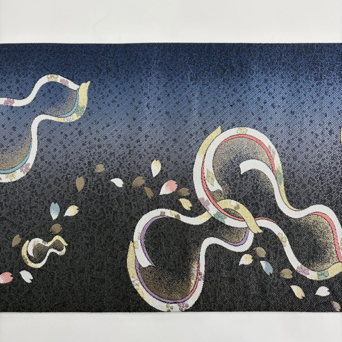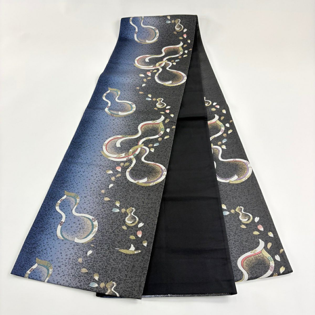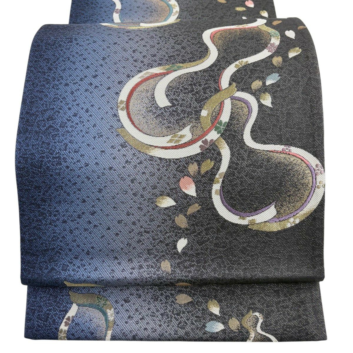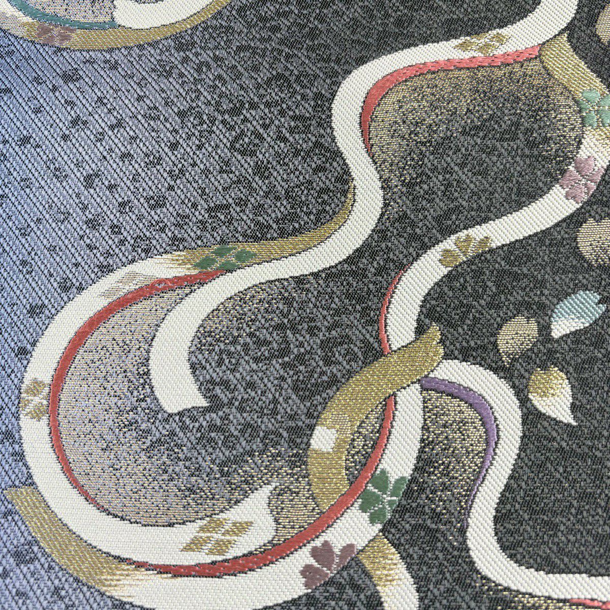 【美品】 袋帯 秀品 蜀江取天平文 向かい鳥 華文 金銀糸 箔 墨色 六通 正絹