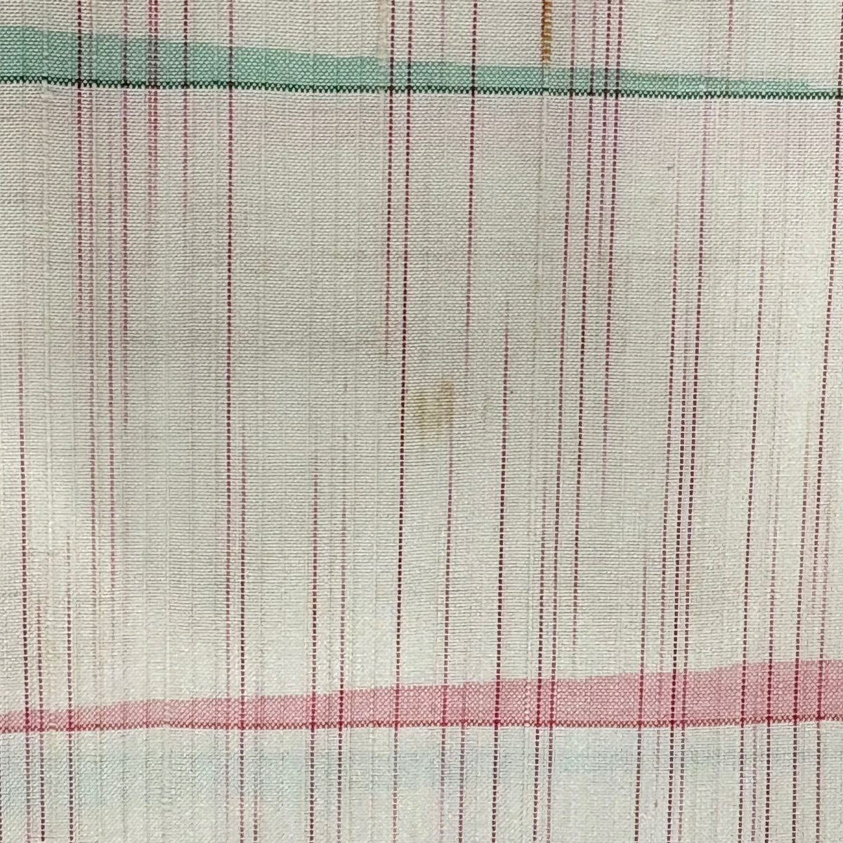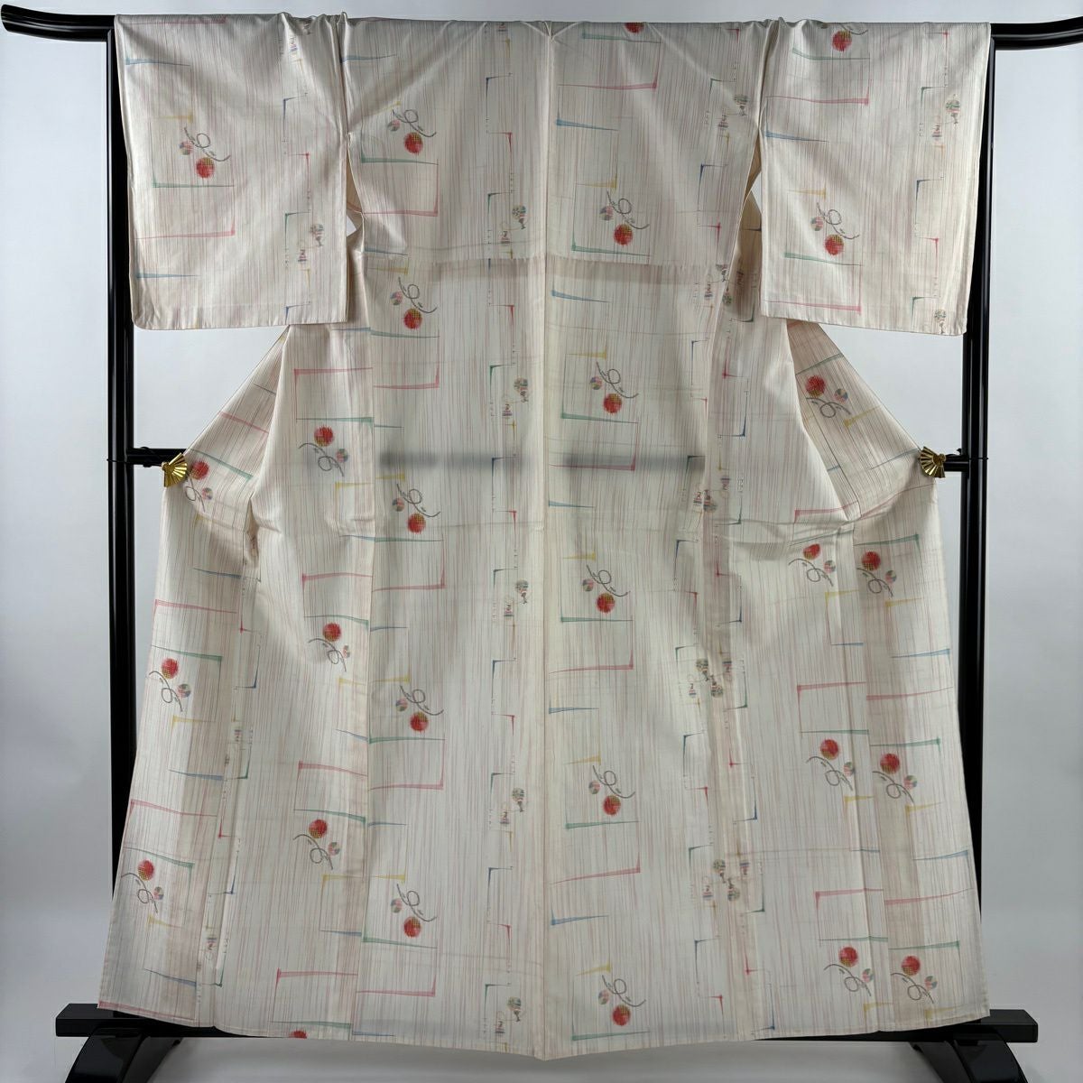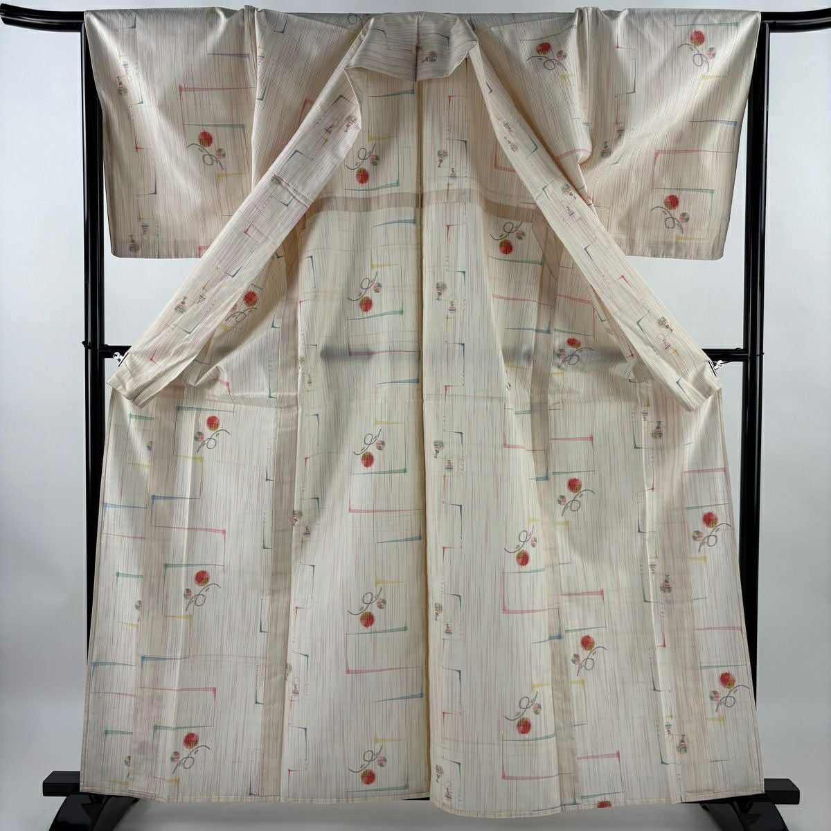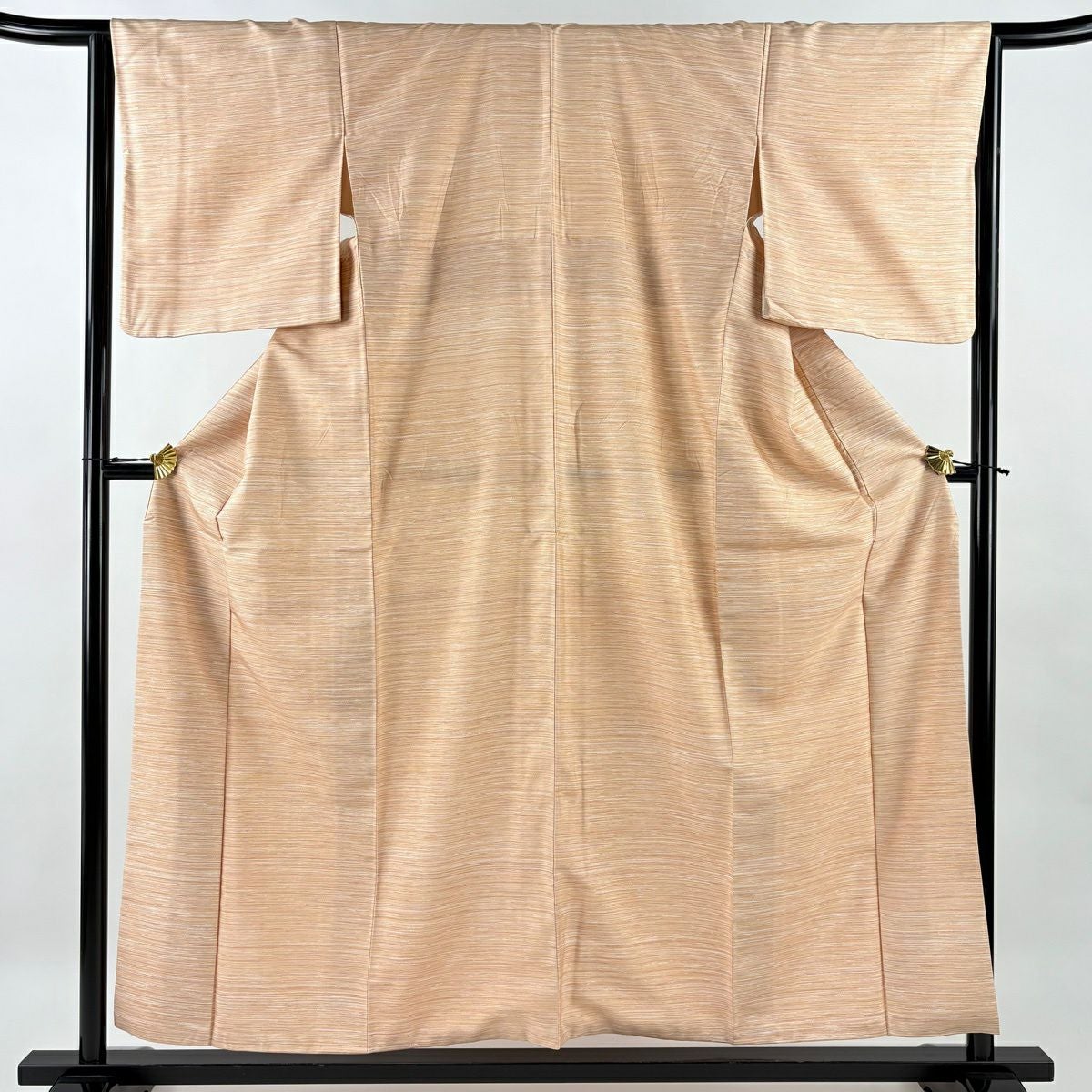 小紋 身丈156.5cm 裄丈65cm M 袷 紬地 横縞 薄オレンジ 正絹 秀品