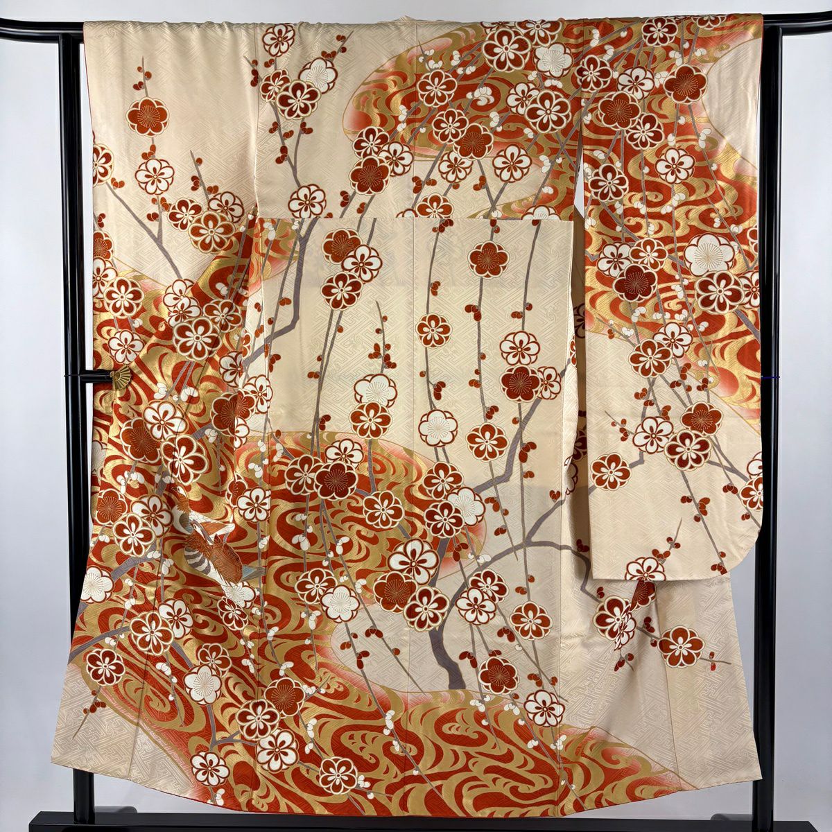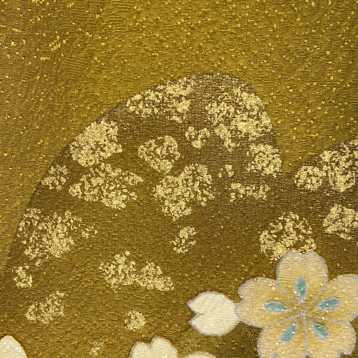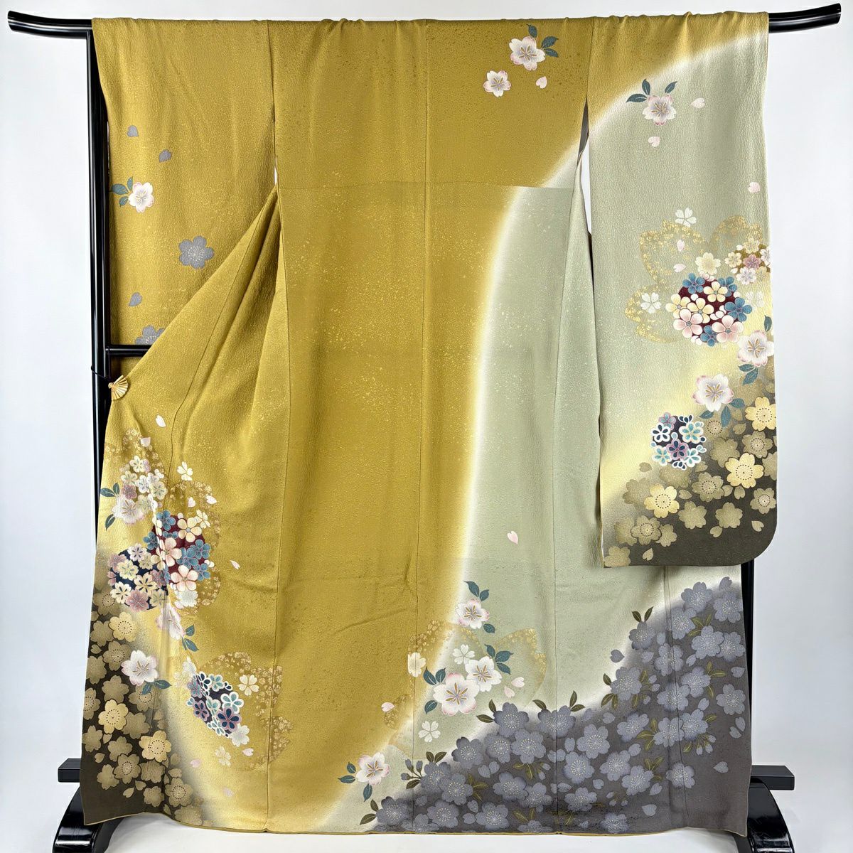 振袖 身丈170cm 裄丈69cm L 袷 梅 桜 金糸 金彩 からし色 正絹 秀品