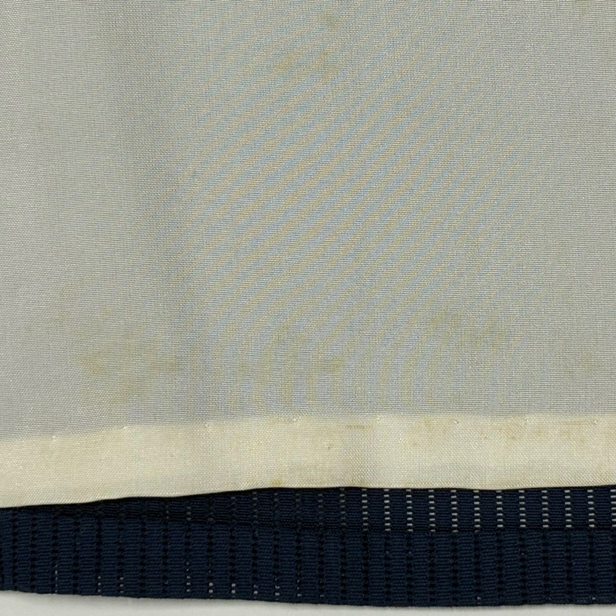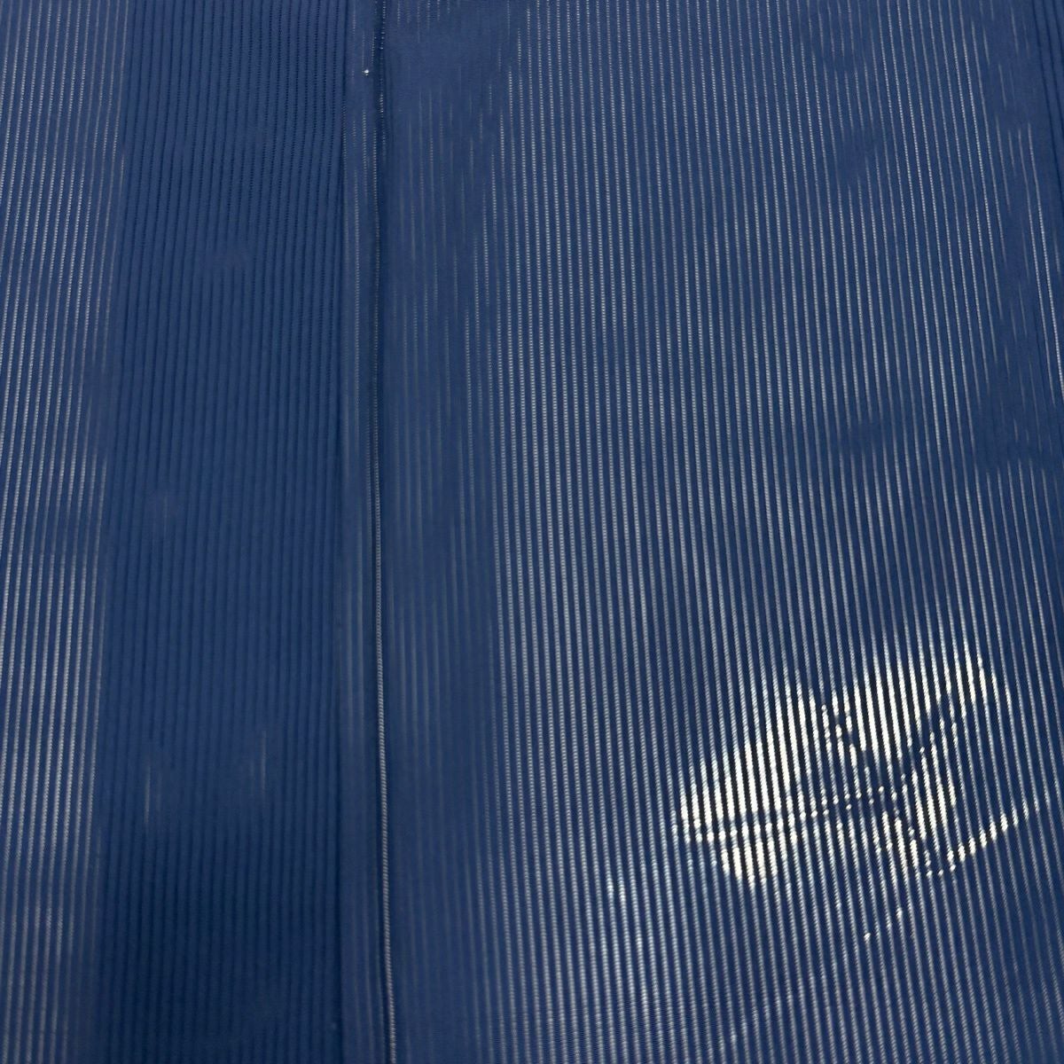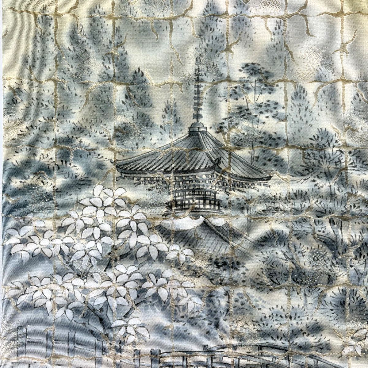 【美品】 名古屋帯 秀品 松葉仕立て 八寸名古屋帯 斜縞 幾何学 金銀糸 青灰色 正絹