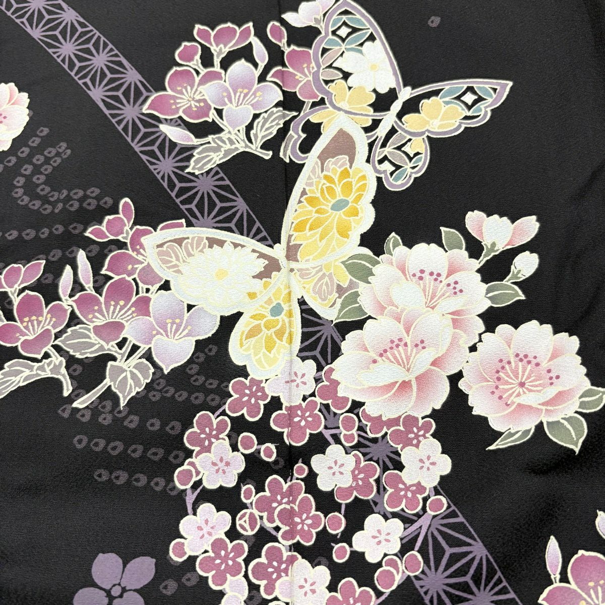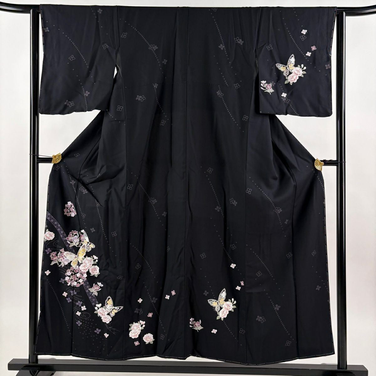 付下げ 身丈154cm 裄丈63cm S 袷 蝶 花丸文 ぼかし 墨色 正絹 秀品