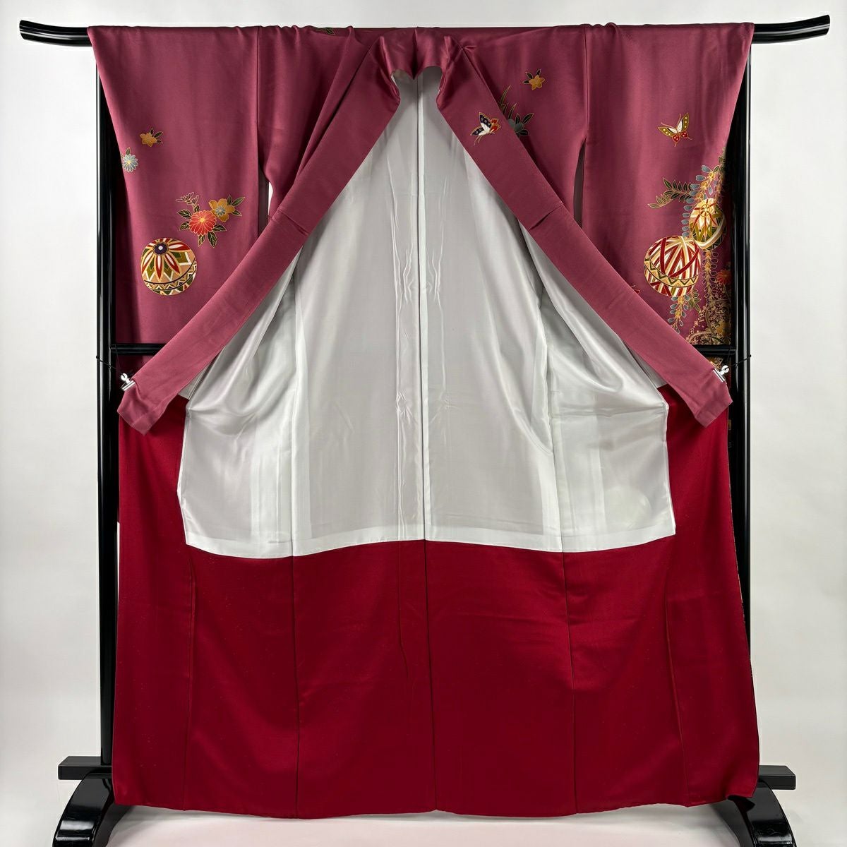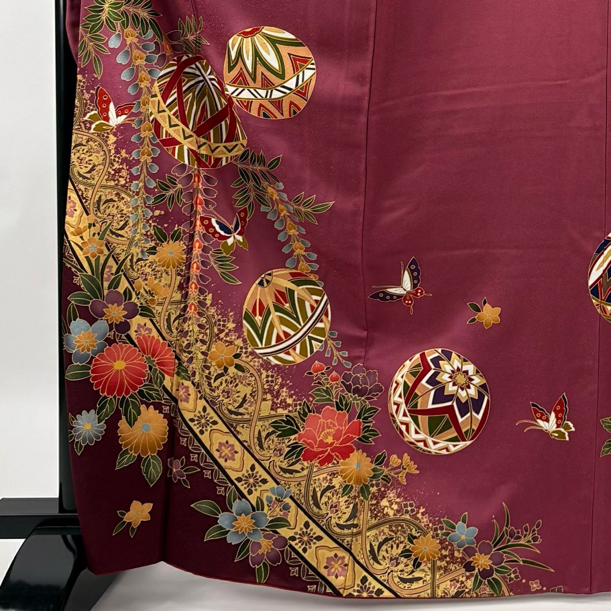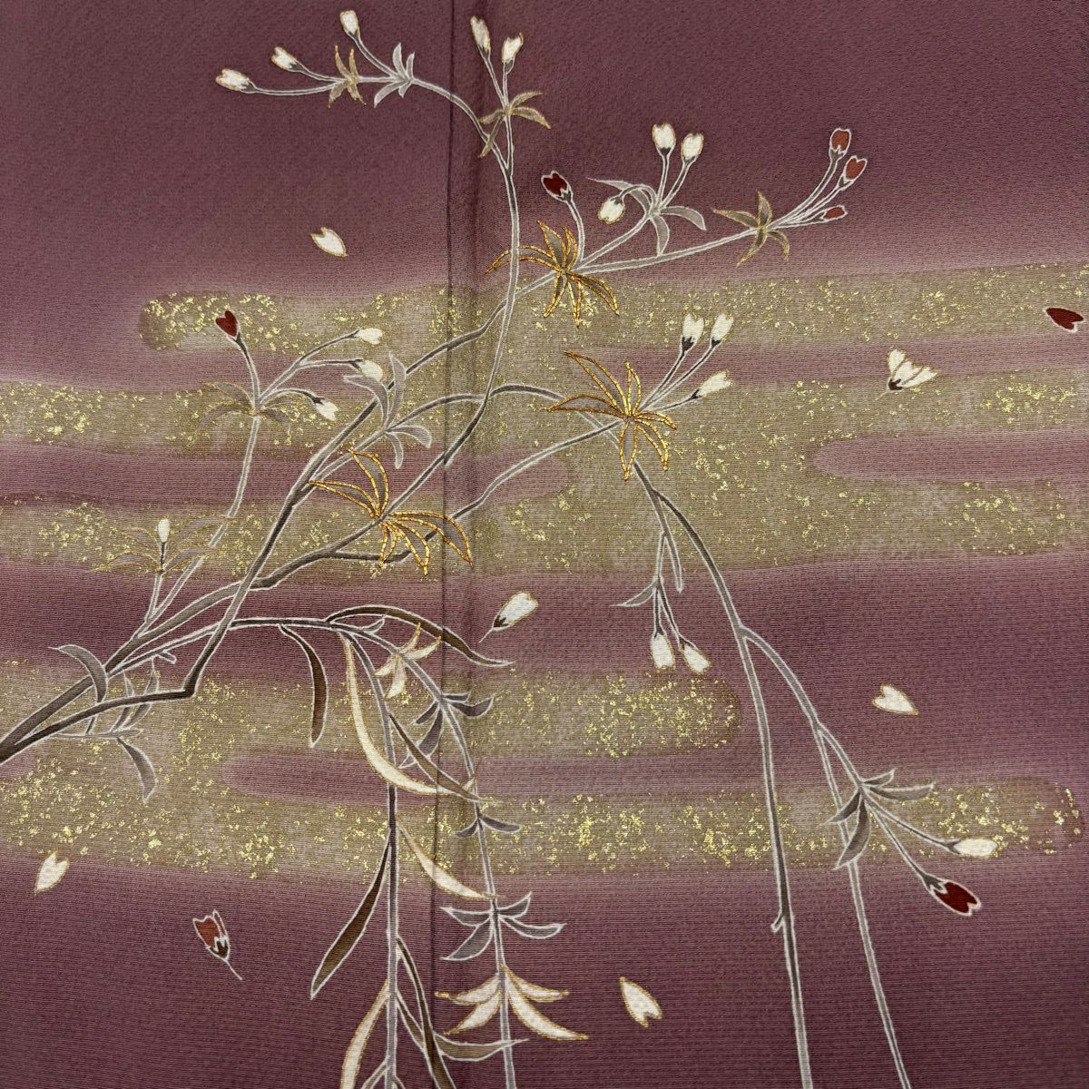 振袖 身丈154cm 裄丈64.5cm M 袷 蝶 桜 金糸 金彩 茶紫 正絹 秀品