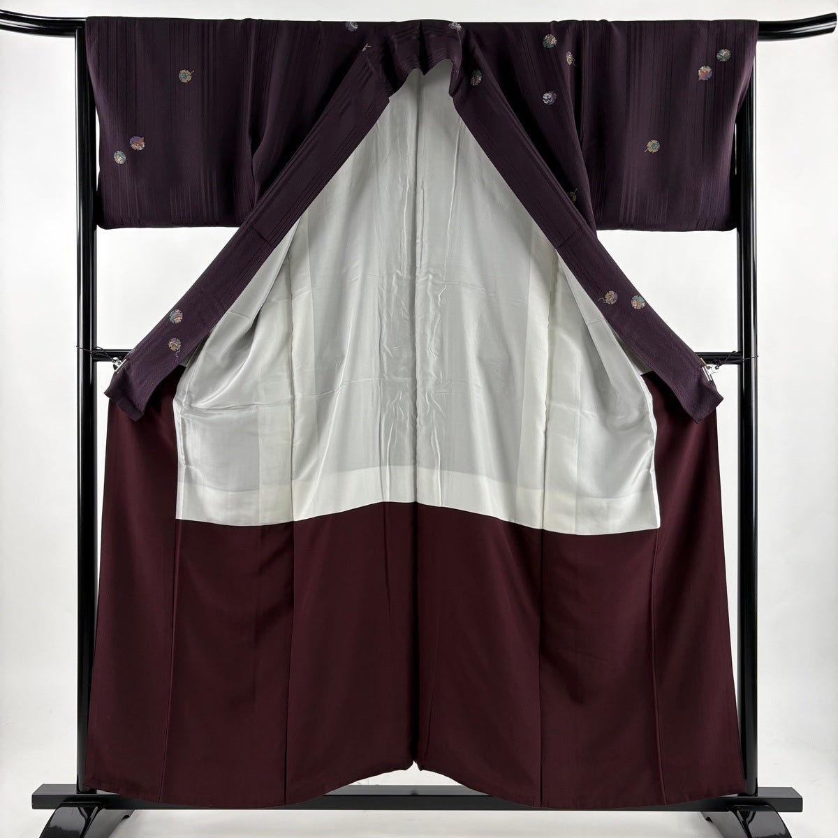 小紋 身丈156.5cm 裄丈66.5cm M 袷 雪輪 玩具 濃紫 正絹 秀品