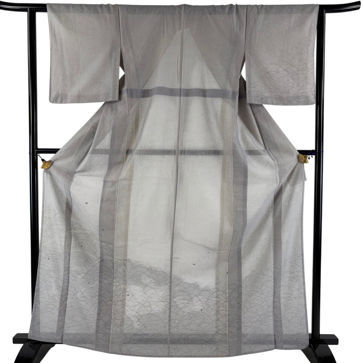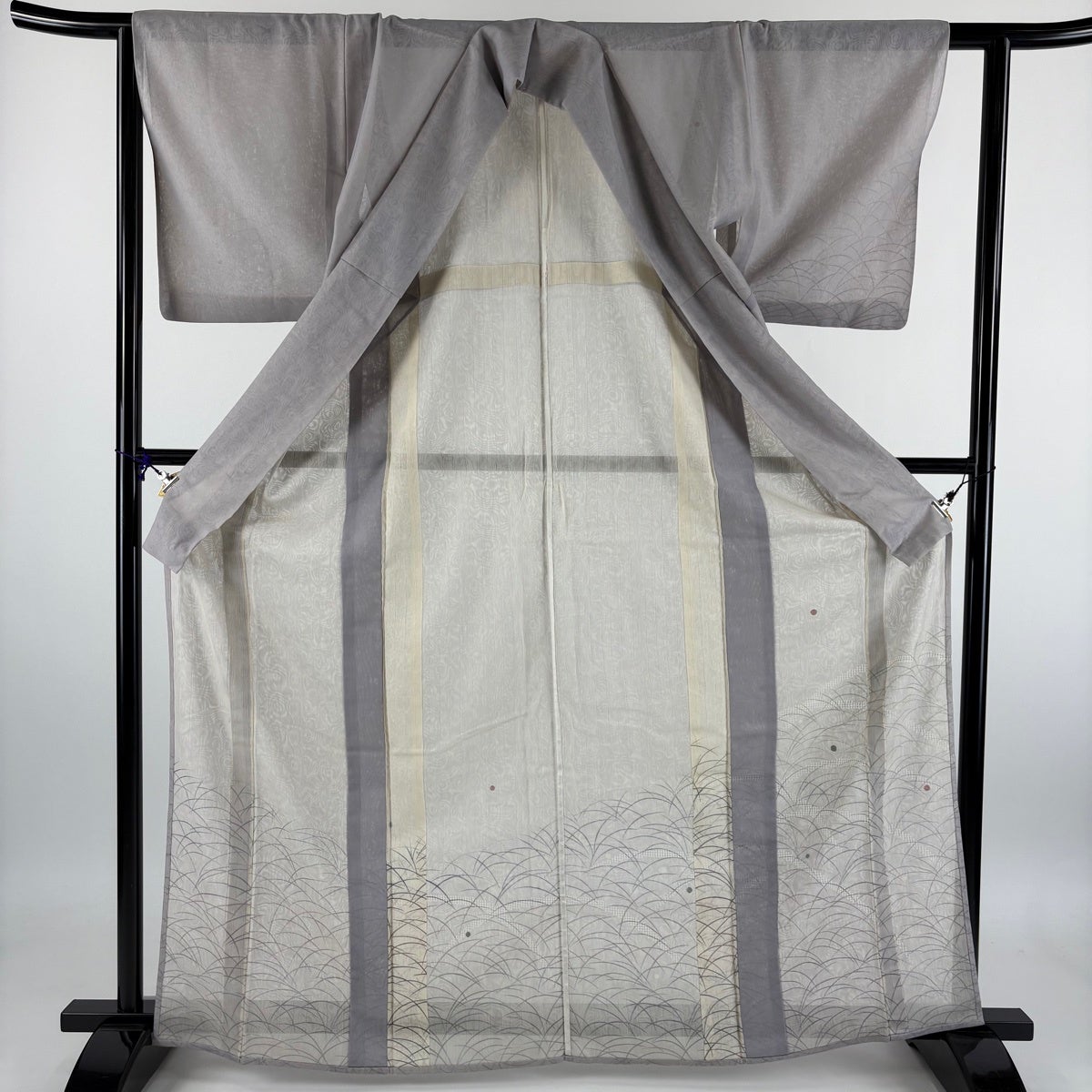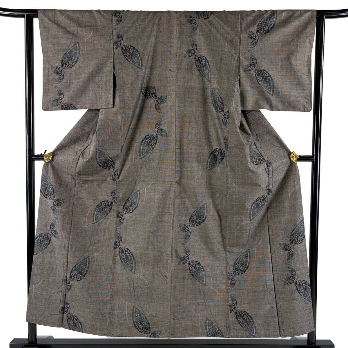 小紋 身丈164cm 裄丈64cm M 薄物 絽 華文 唐草 灰茶 正絹 秀品