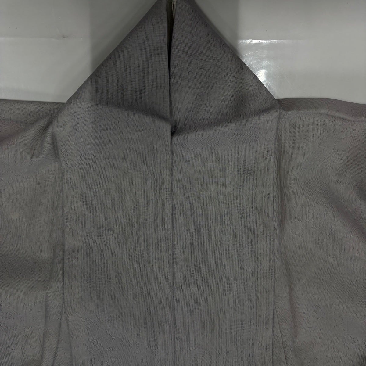 小紋 身丈161cm 裄丈65cm M 袷 麻の葉 縦縞 灰色 正絹 秀品