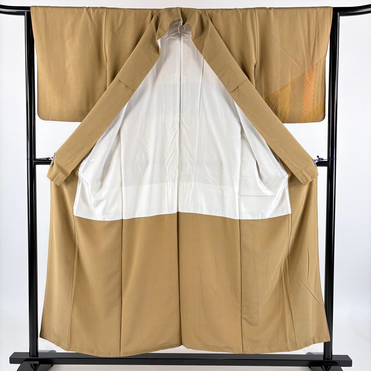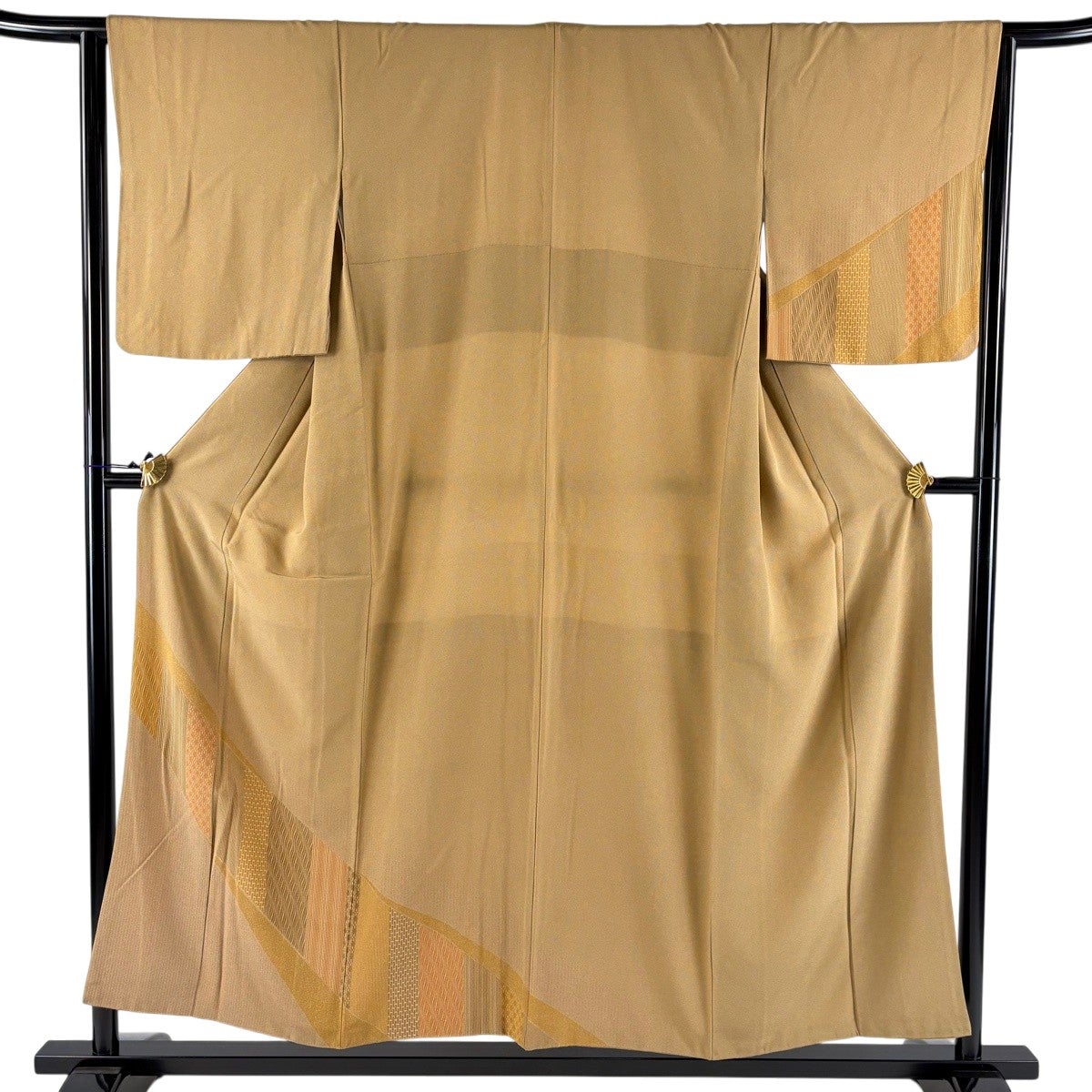 付下げ 身丈153cm 裄丈64cm M 袷 竹縞 鮫 薄茶色 正絹 秀品