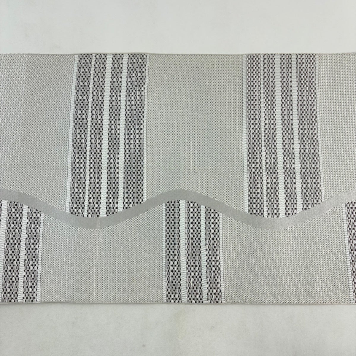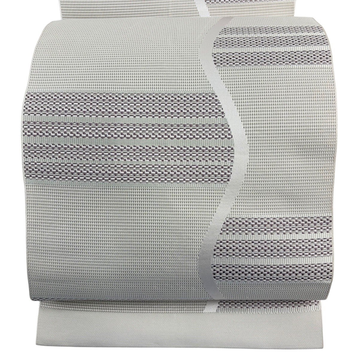 名古屋帯 秀品 八寸名古屋帯 紬地 トンネル仕立て 縞 幾何学模様 灰色 正絹