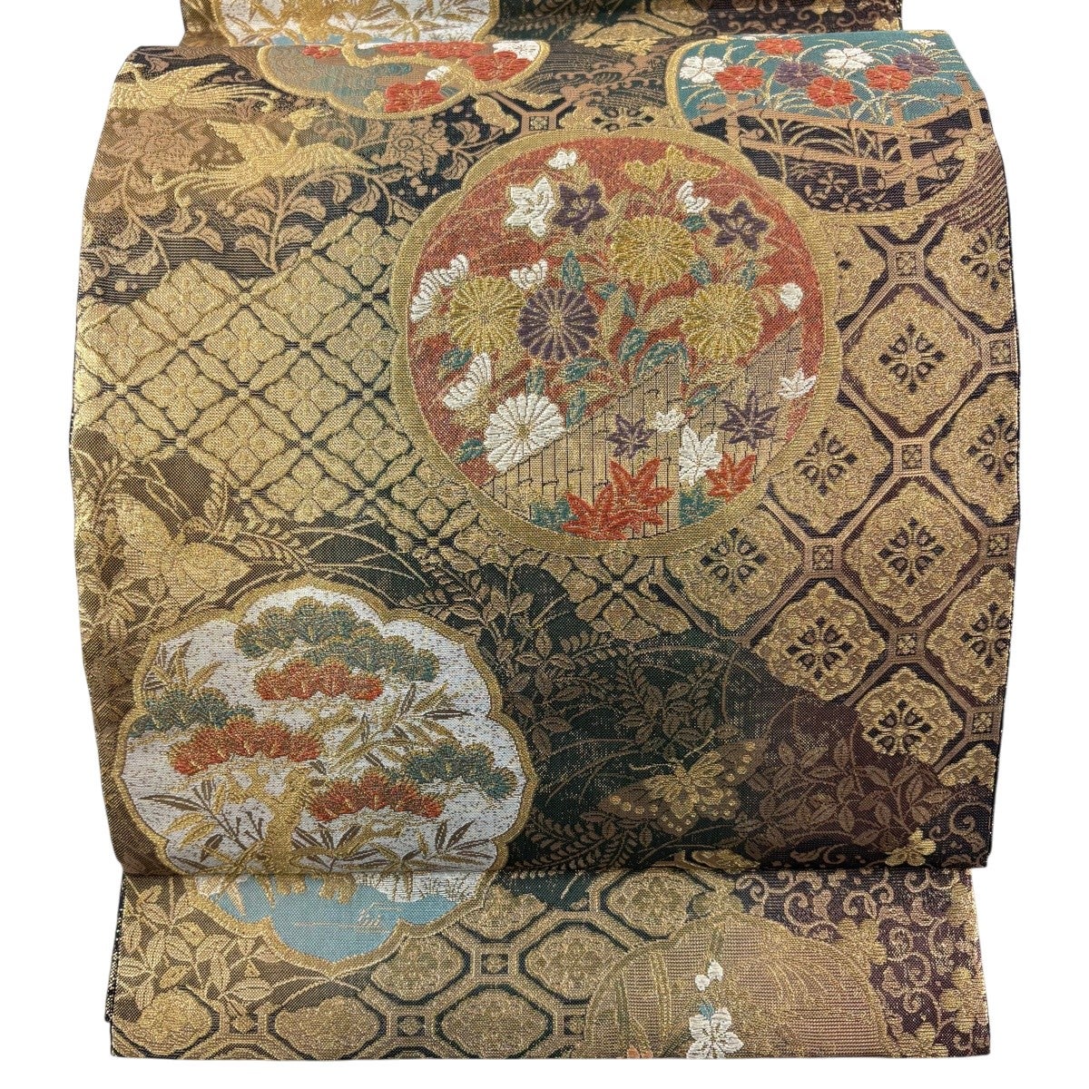 【美品】 袋帯 秀品 証紙あり 花鳥 蜀江文 金糸 箔 墨色 六通 正絹