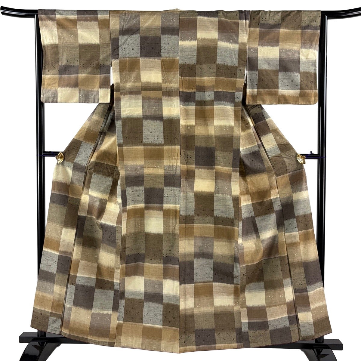 紬 身丈163cm 裄丈64cm M 単衣 縦縞 ベージュ 正絹 秀品