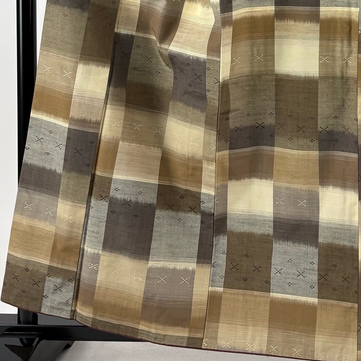 紬 身丈168.5cm 裄丈66cm M 袷 蔦 縦縞 焦茶色 正絹 秀品