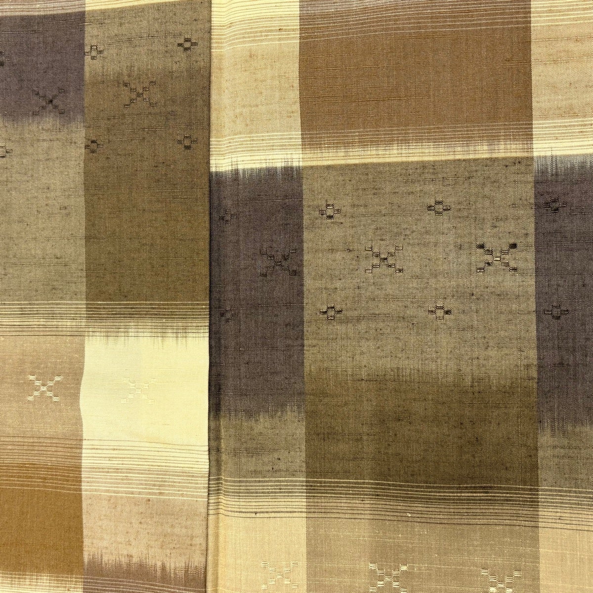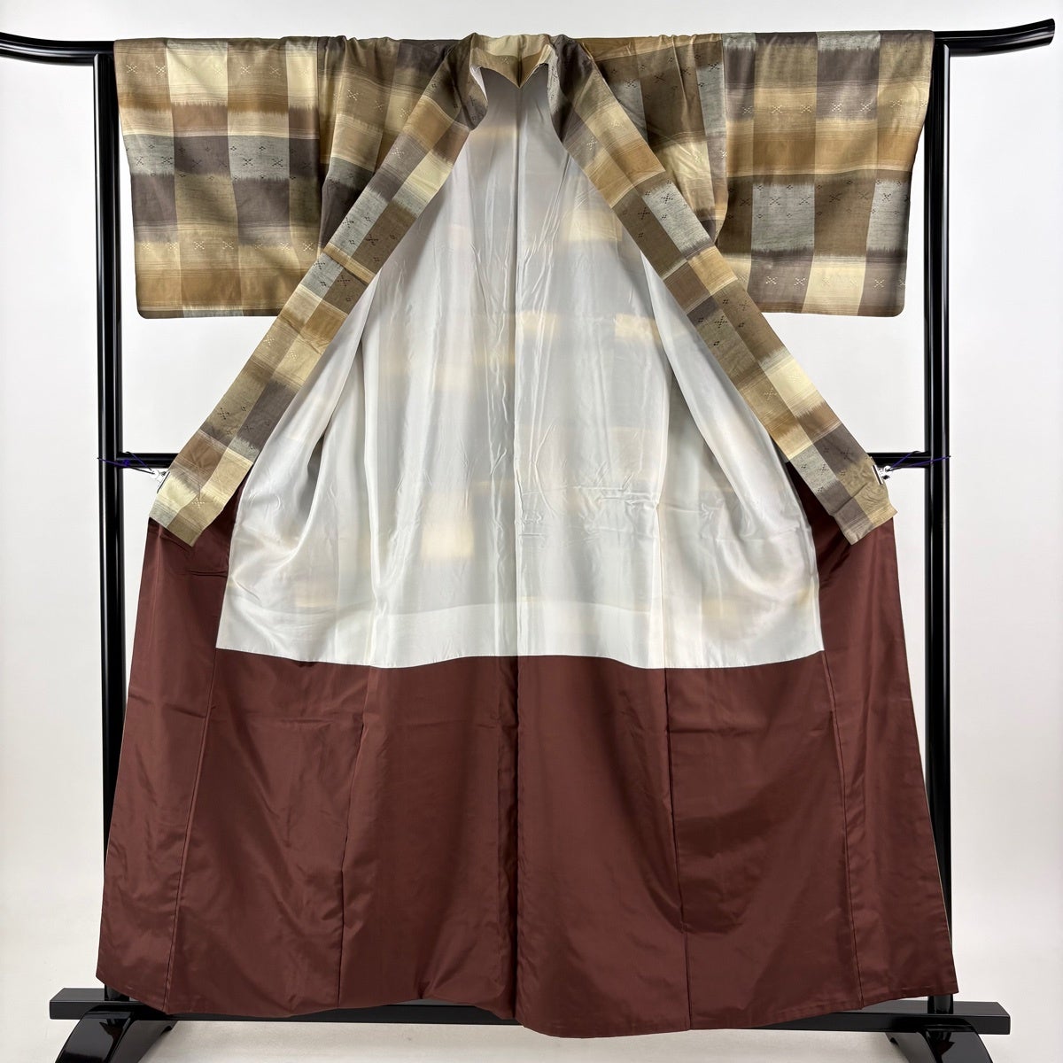 【美品】 紬 身丈156cm 裄丈62cm S 袷 縞 黄土色 正絹 秀品