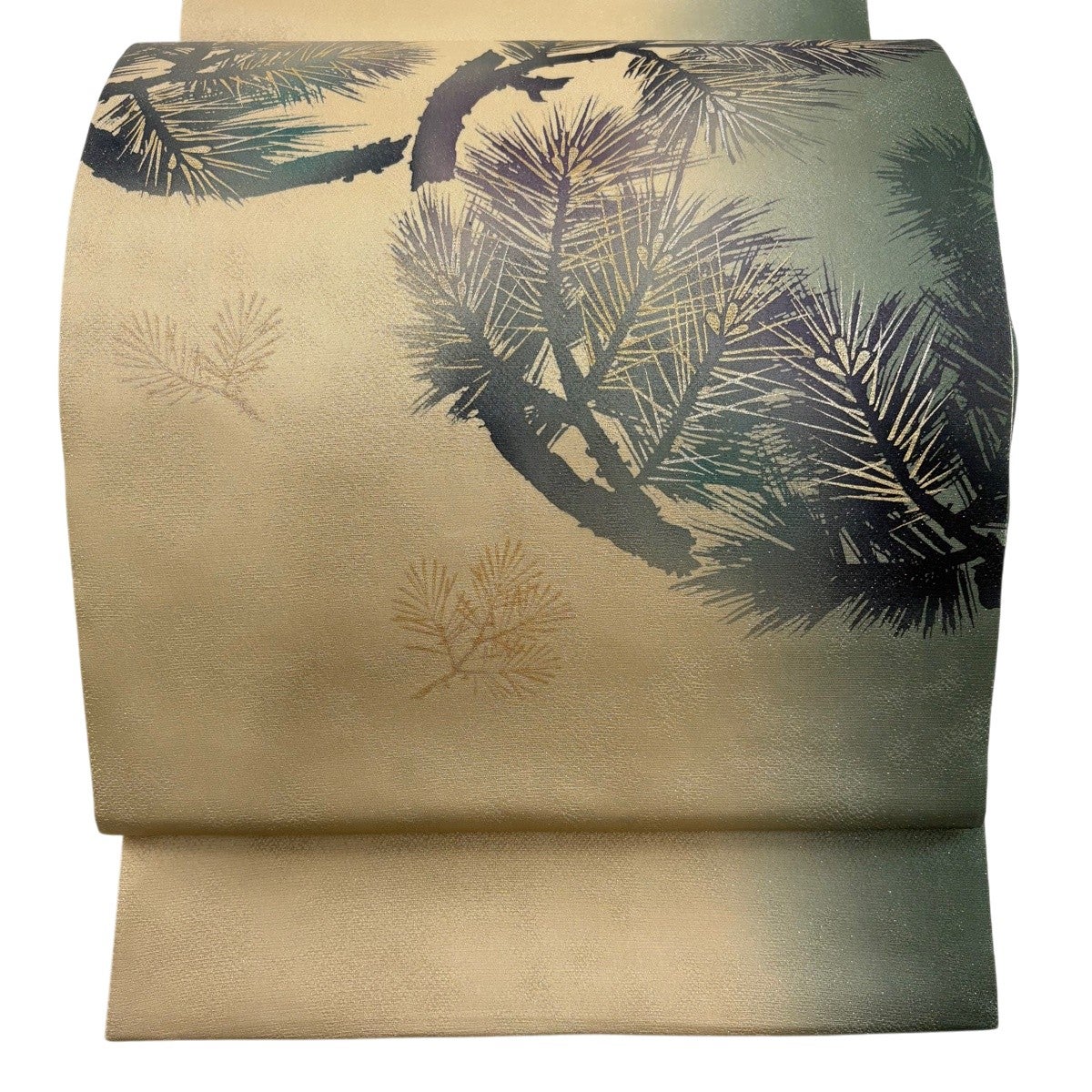 【美品】 袋帯 秀品 若松 笠松 金銀糸 刺繍 ベージュ 六通 正絹