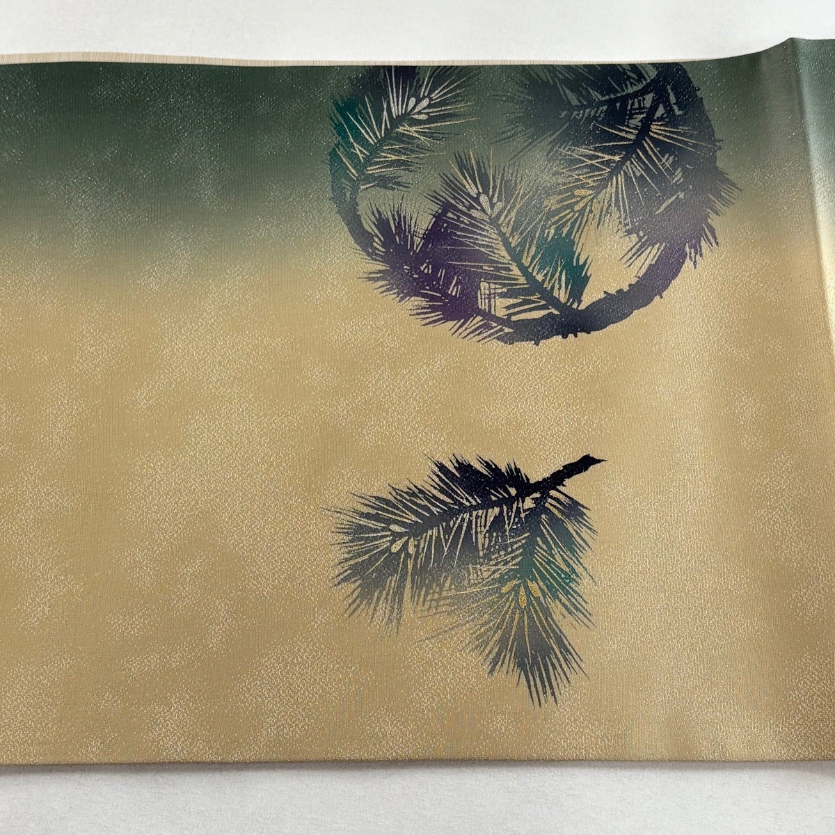 【美品】 袋帯 秀品 関西仕立て 若松 幾何学模様 箔 灰緑 六通 正絹