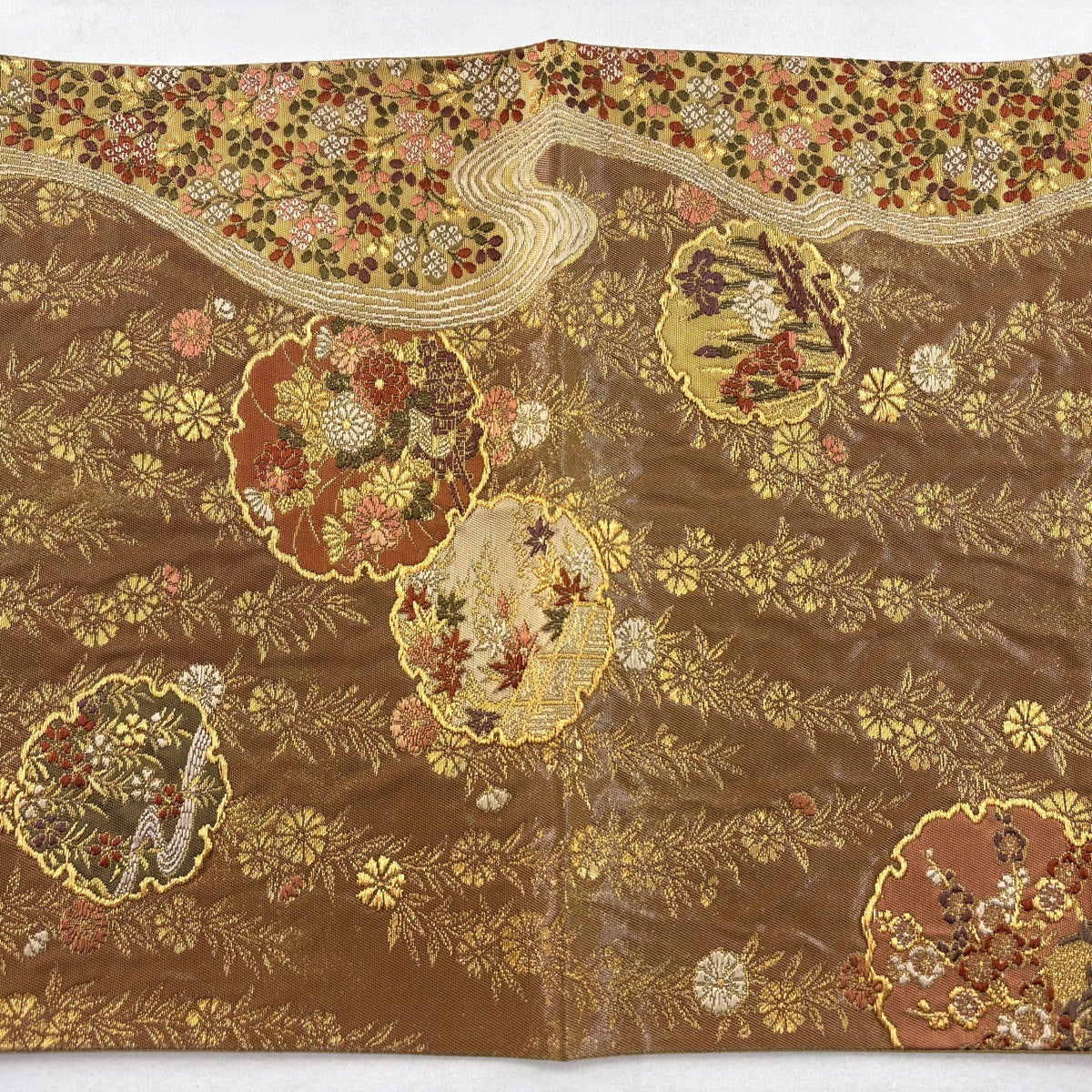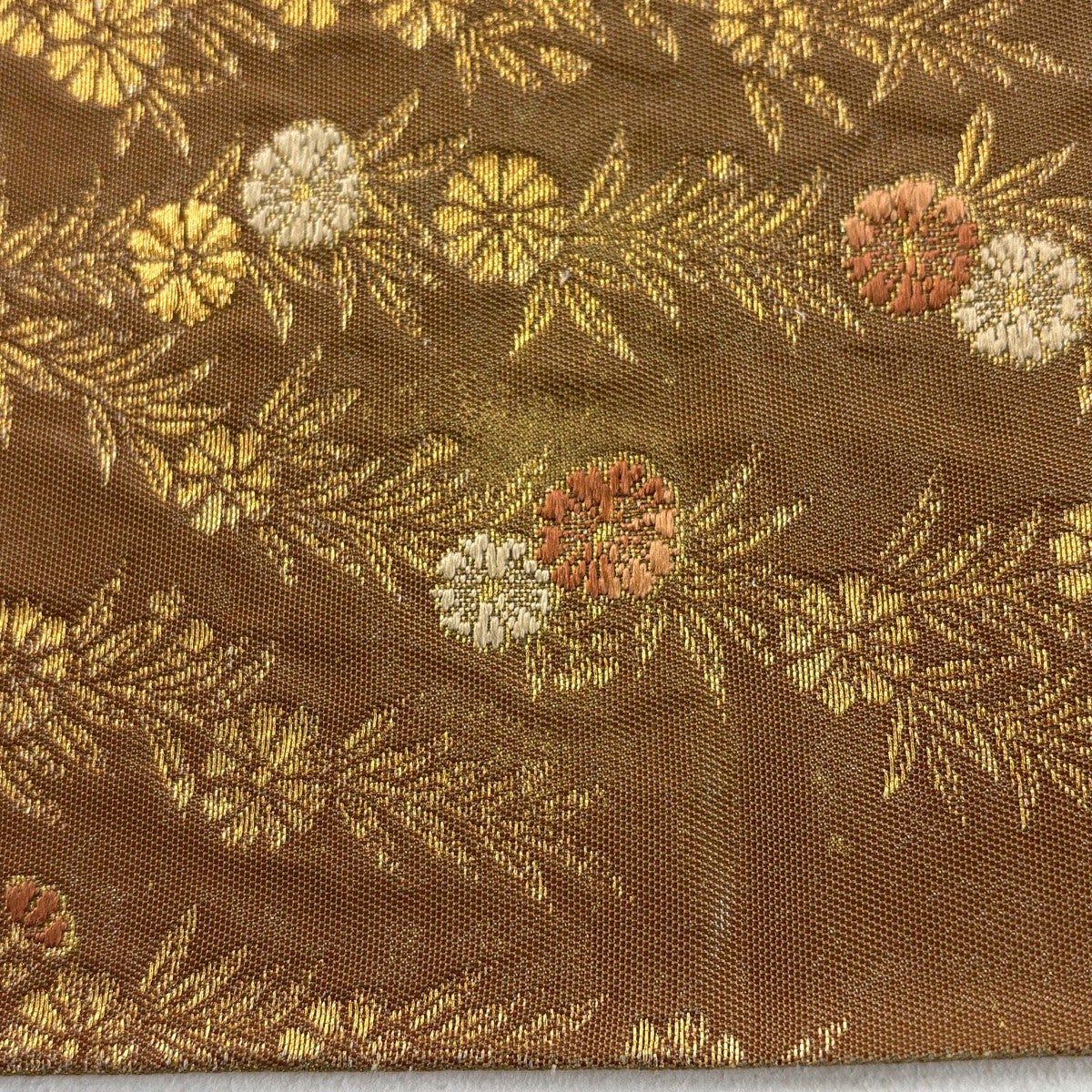【美品】 袋帯 秀品 葡萄松秋草文 霞 金糸 唐織 山吹茶色 六通 正絹