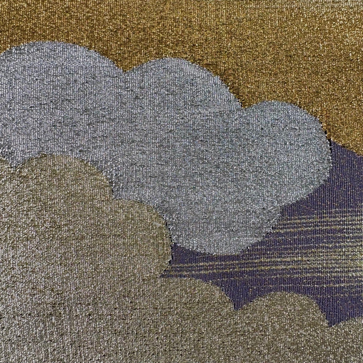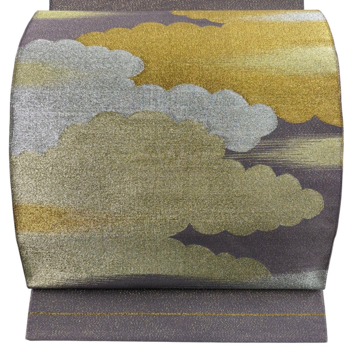 袋帯 秀品 川島織物 落款あり 夏帯 紗 雲文 葉 箔 灰紫 六通 正絹