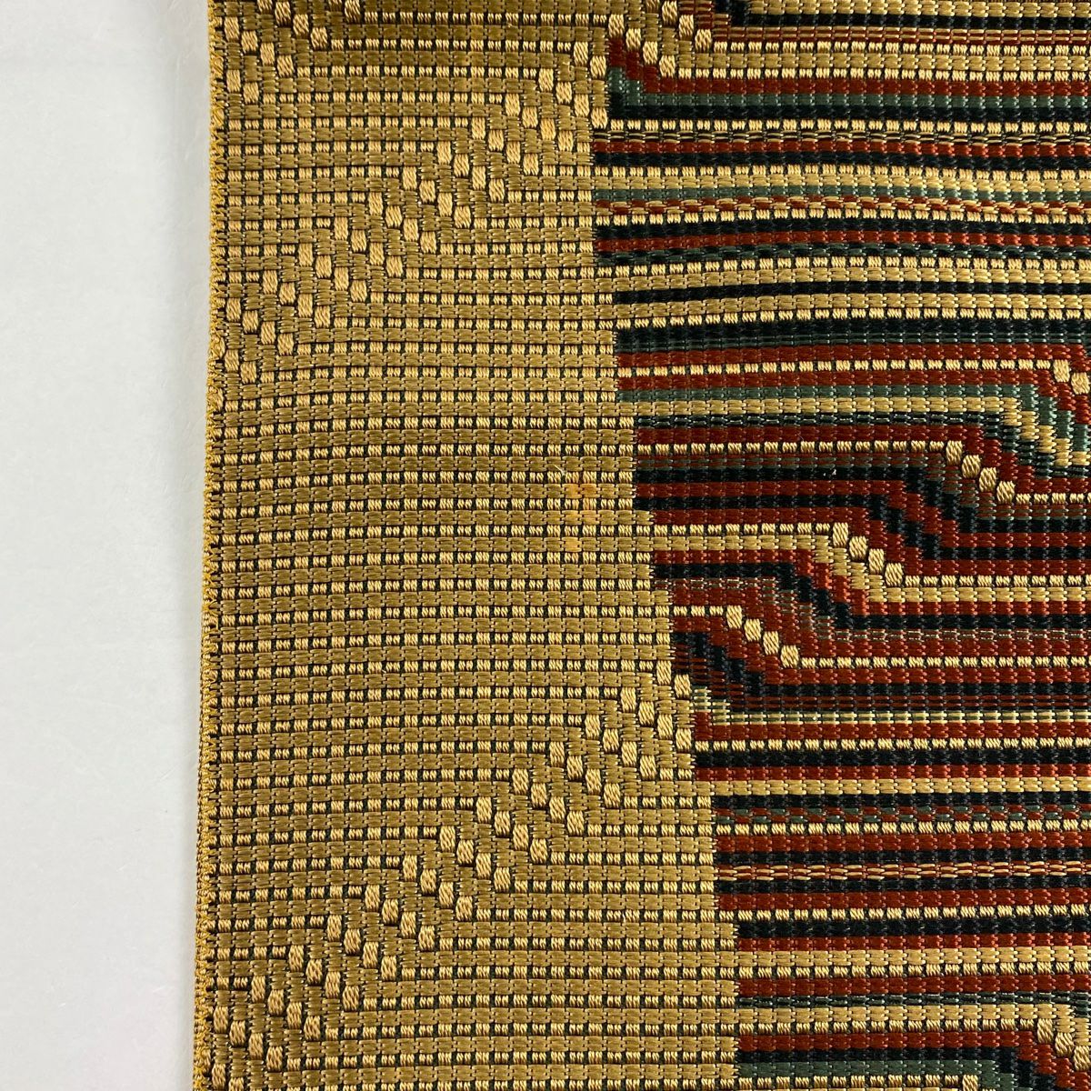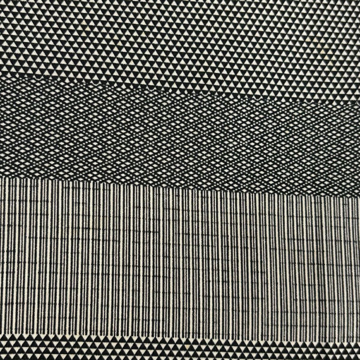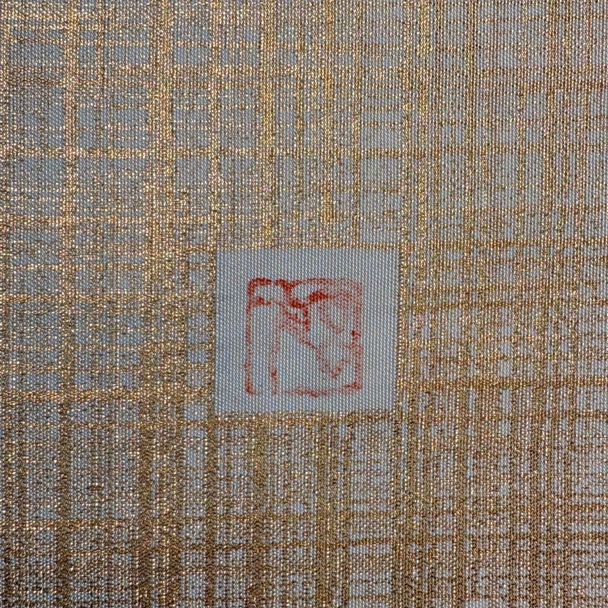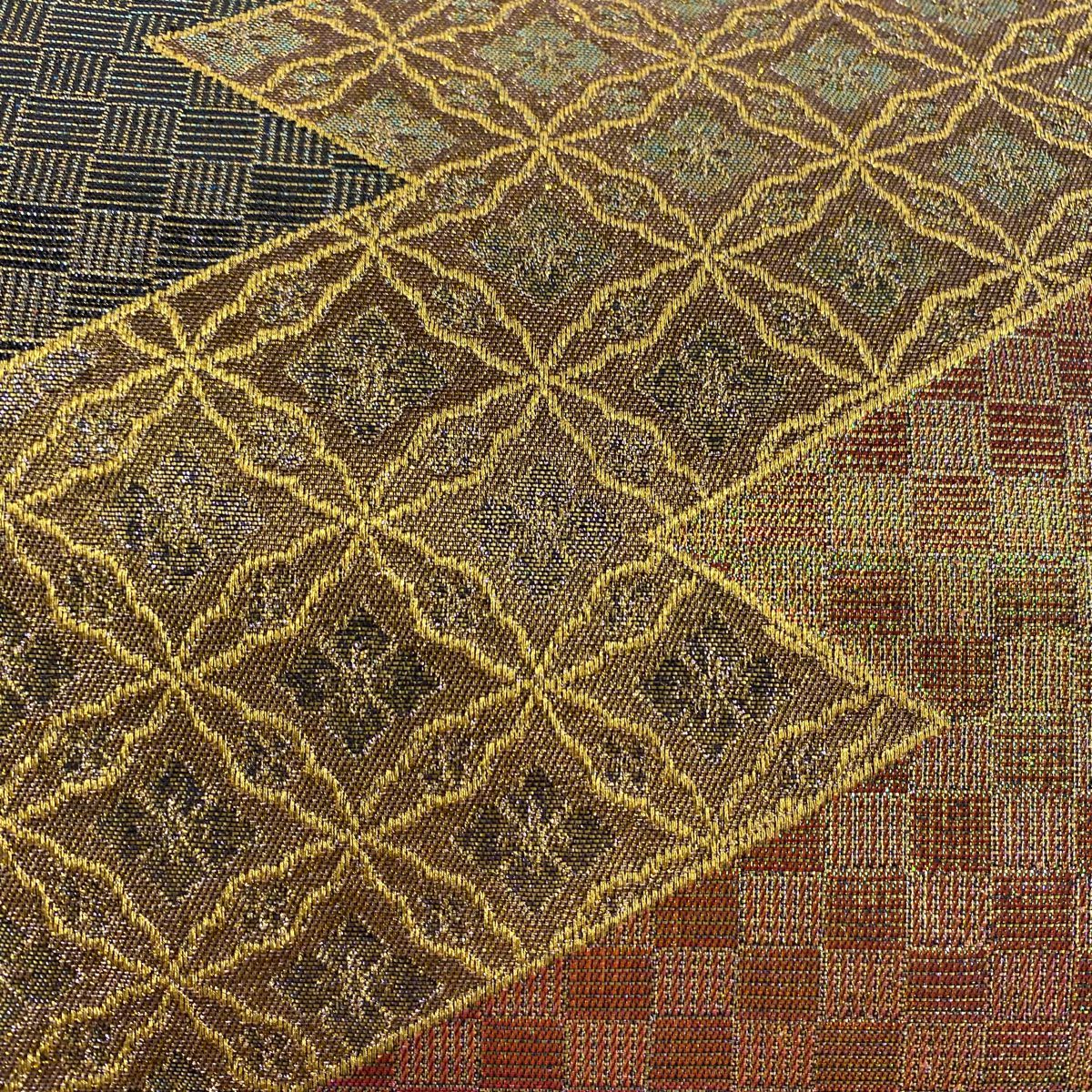 【美品】 袋帯 秀品 大久保玄才 落款あり 幾何学模様 格子 箔 金色 全通 正絹