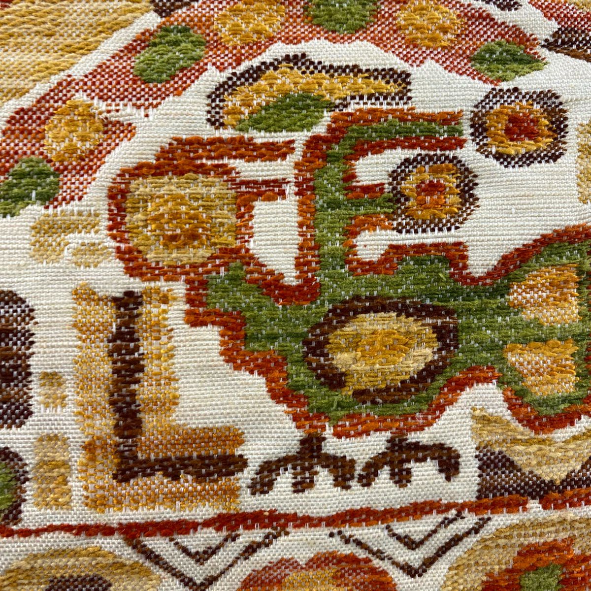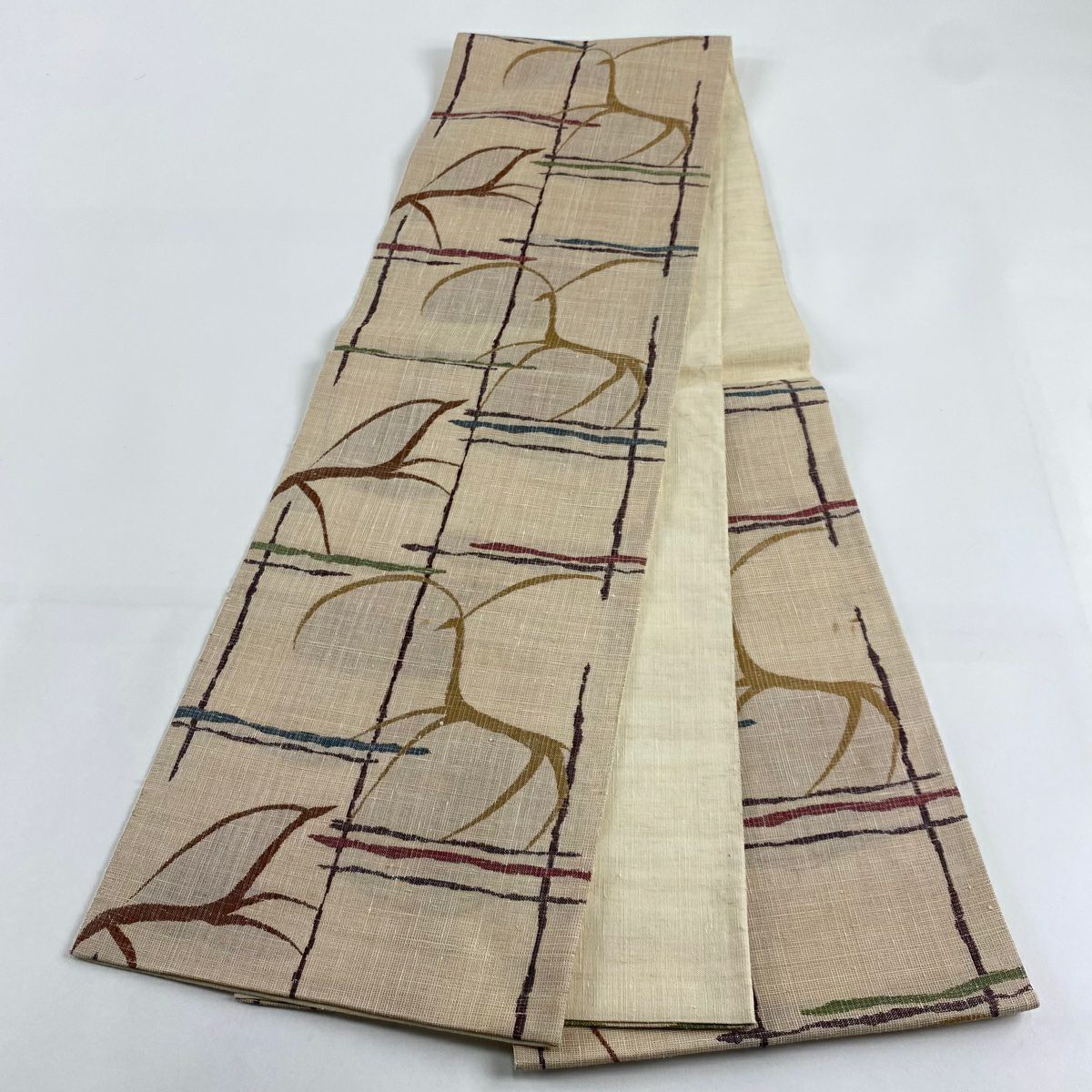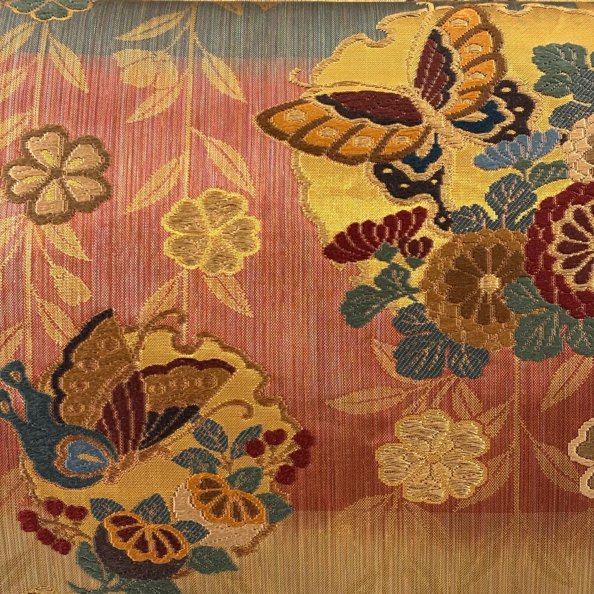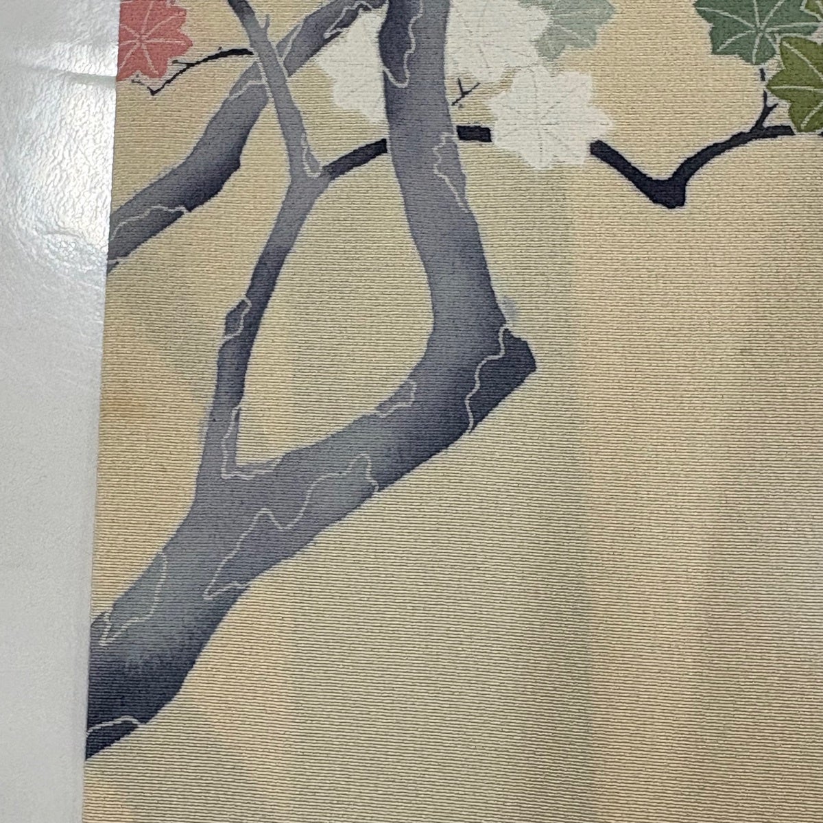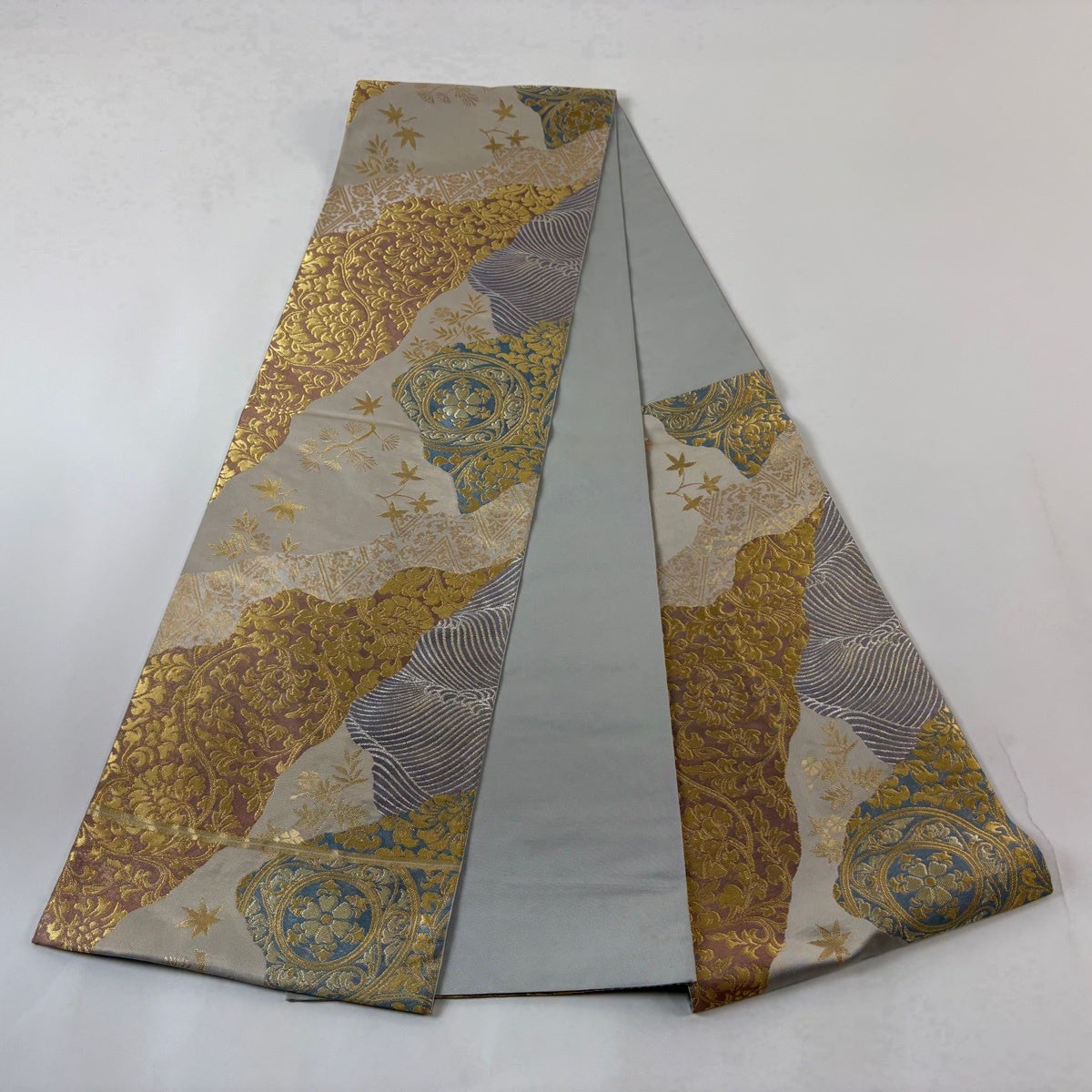 袋帯 秀品 春秋段文 関西仕立て 桜楓 横段 金銀糸 箔 クリーム お太鼓柄 正絹