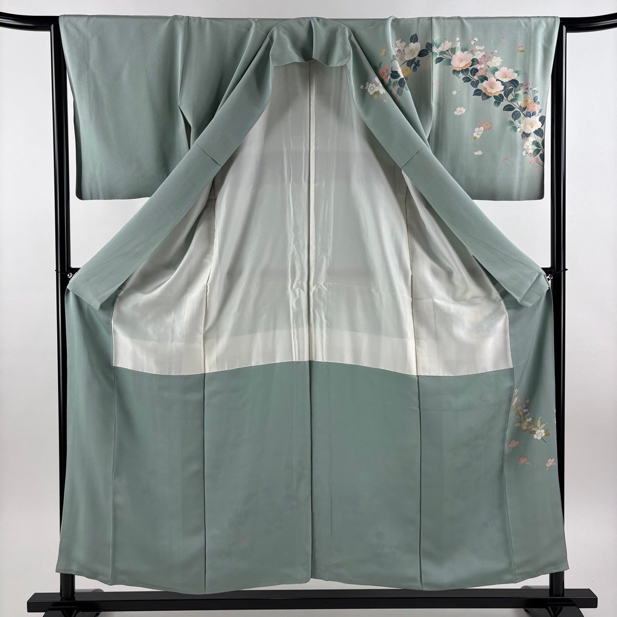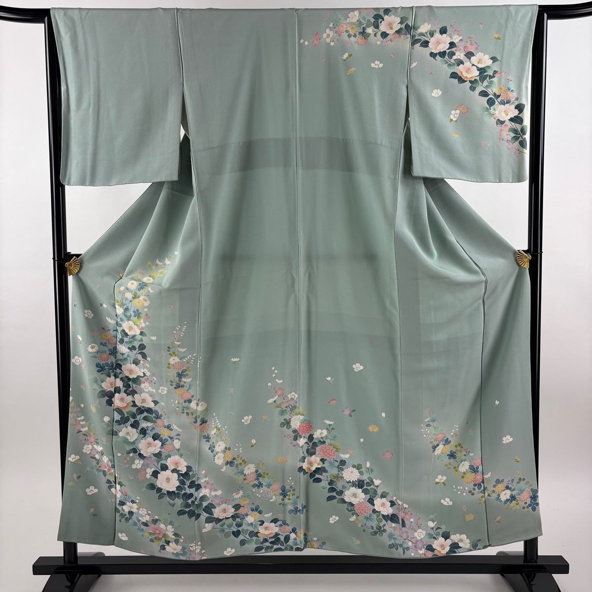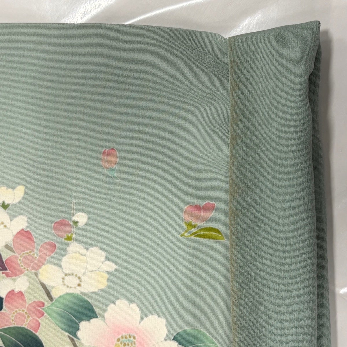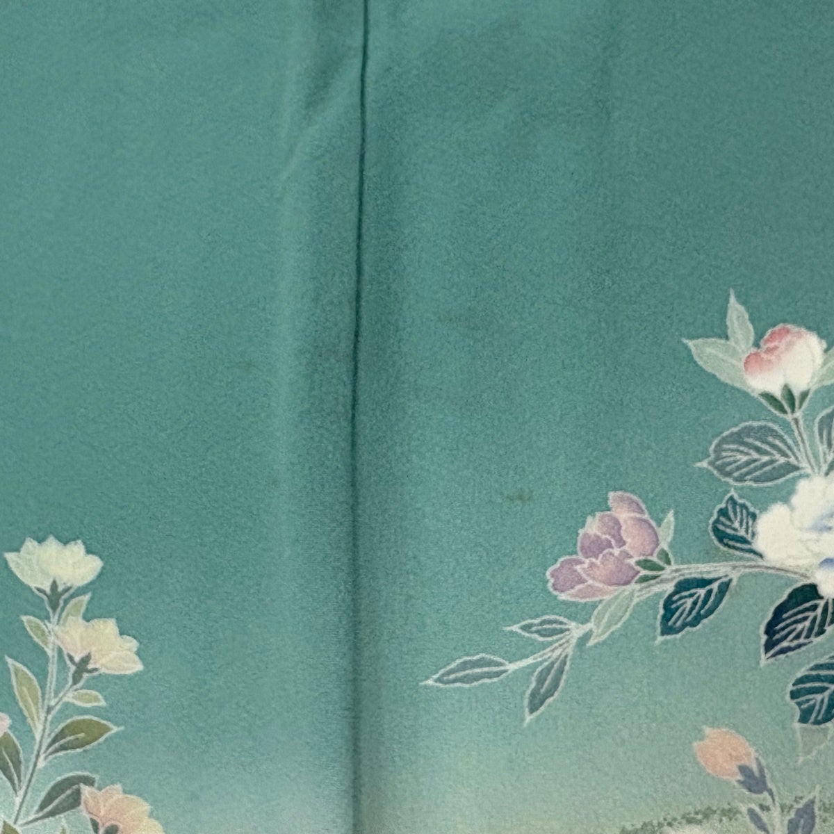 訪問着 身丈155.5cm 裄丈64.5cm M 袷 椿 草花 ぼかし 薄緑 正絹 秀品