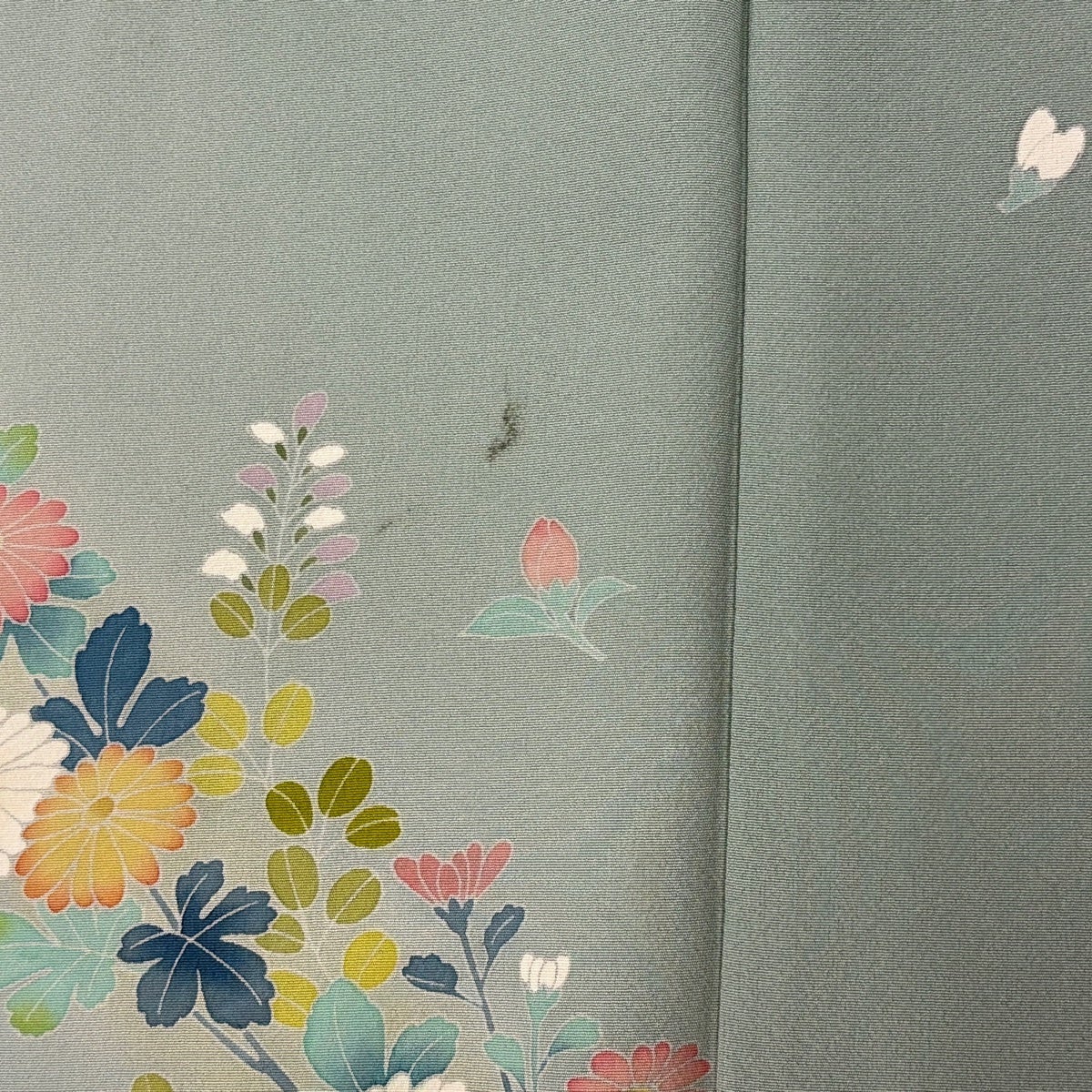 訪問着 身丈160.5cm 裄丈64cm M 袷 草花 鳥 ぼかし 薄緑 正絹 秀品