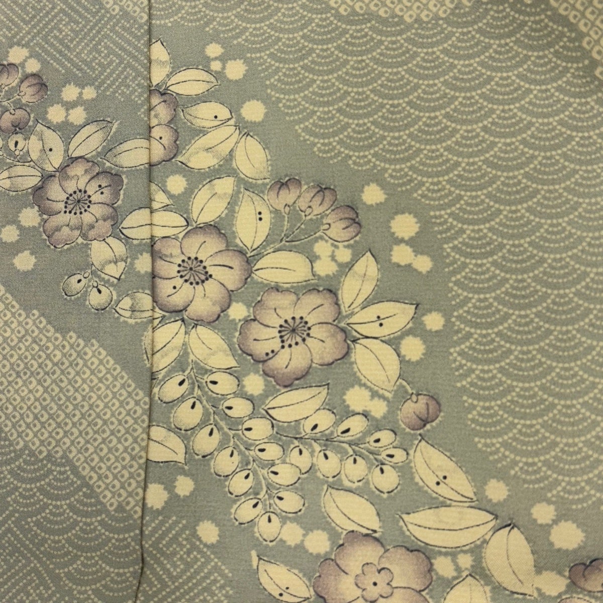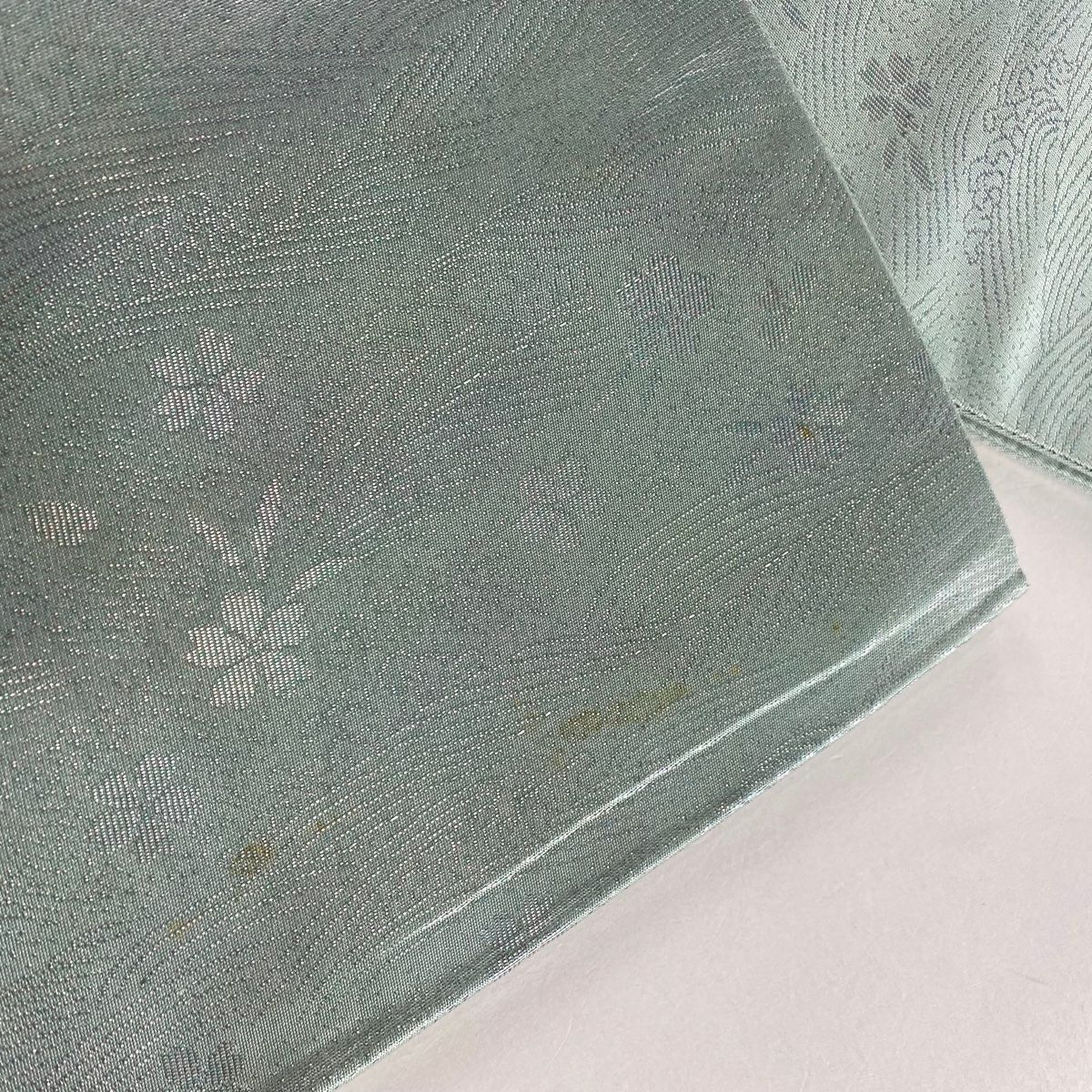 【美品】 長襦袢 身丈125cm 裄丈66cm M 草花 有職文様 灰緑 正絹 秀品