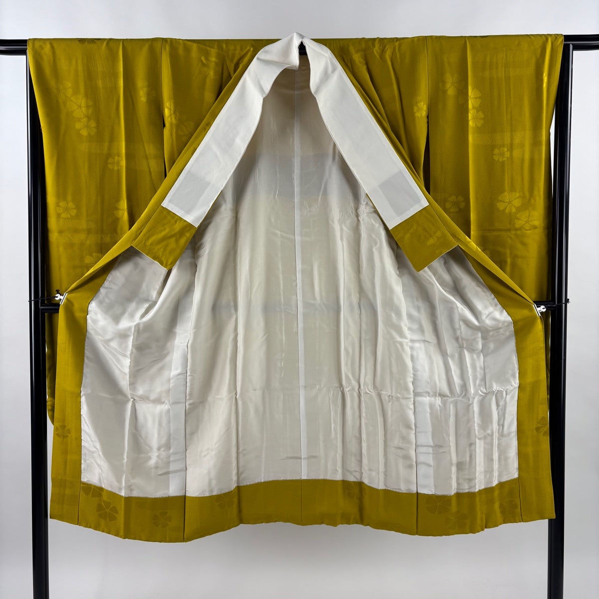 長襦袢 身丈127cm 裄丈65cm M 振袖用 やまと 地紋 からし色 正絹 秀品