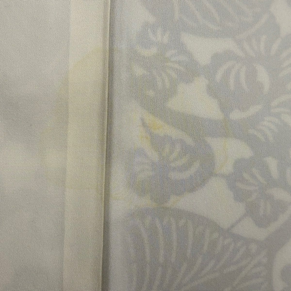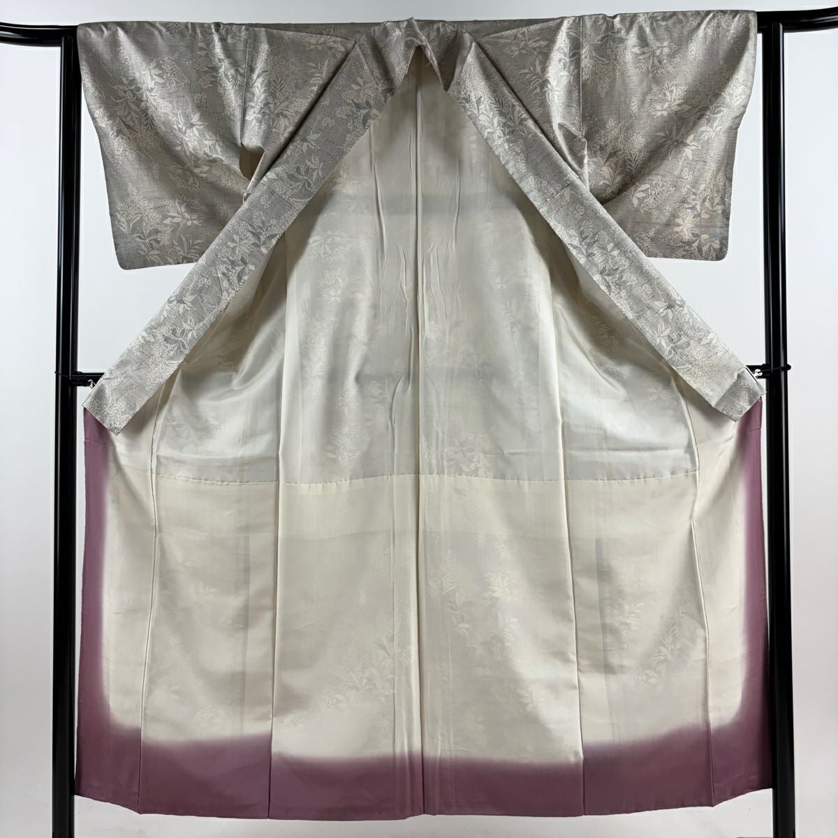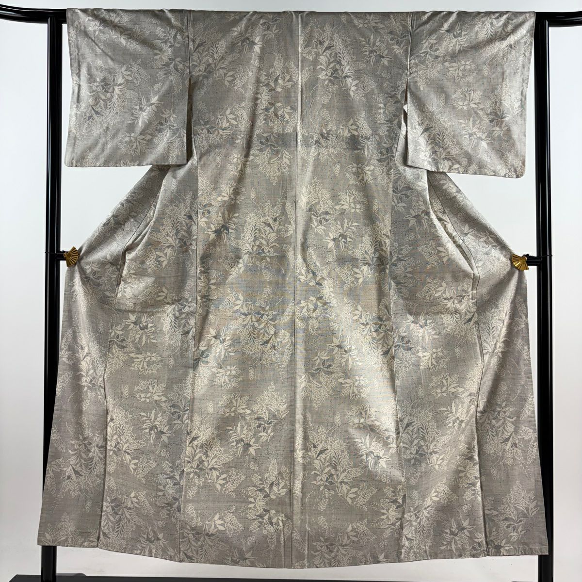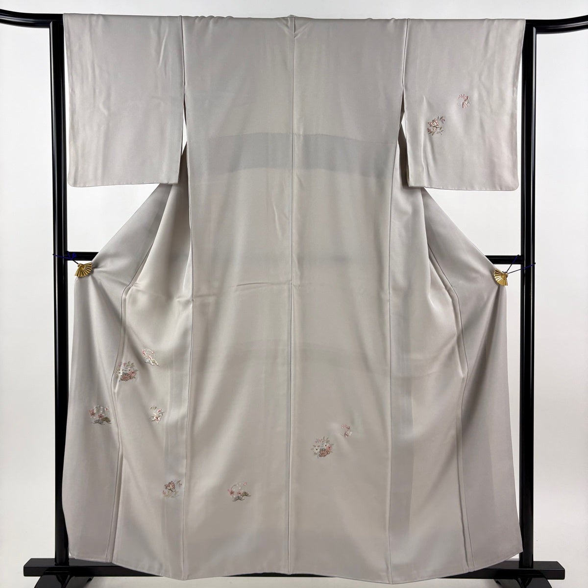 付下げ 身丈160cm 裄丈64cm M 袷 梅 桧扇 金糸 刺繍 灰色 正絹 秀品