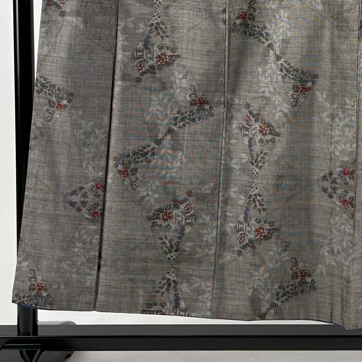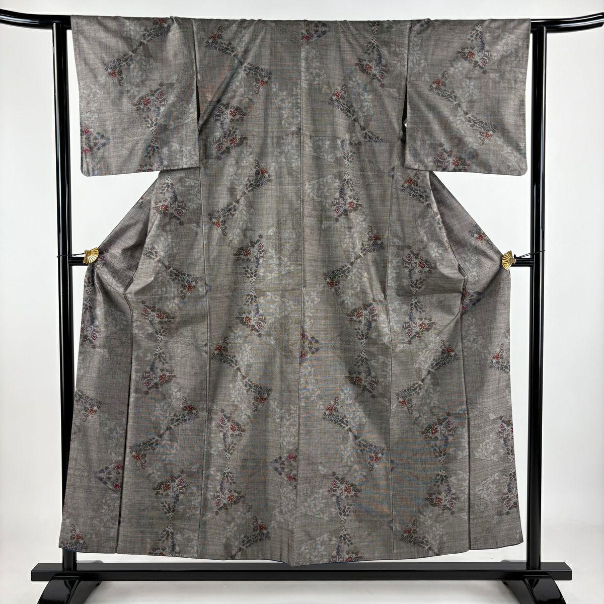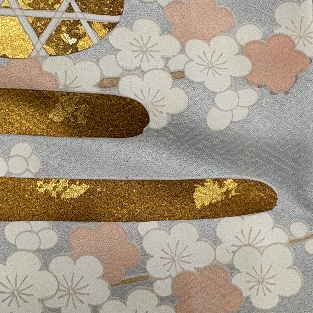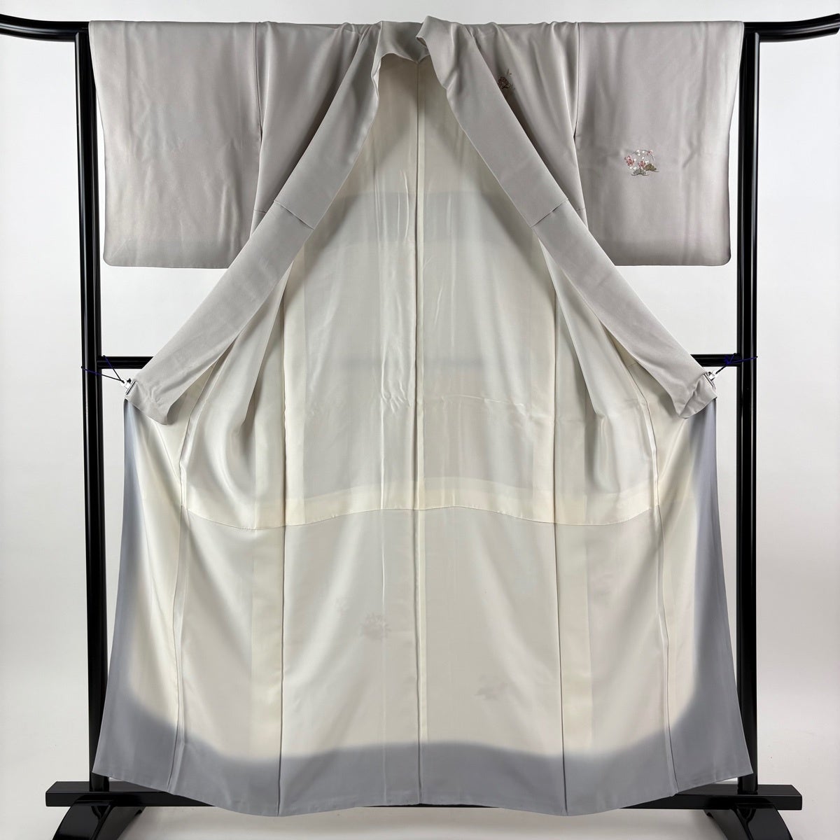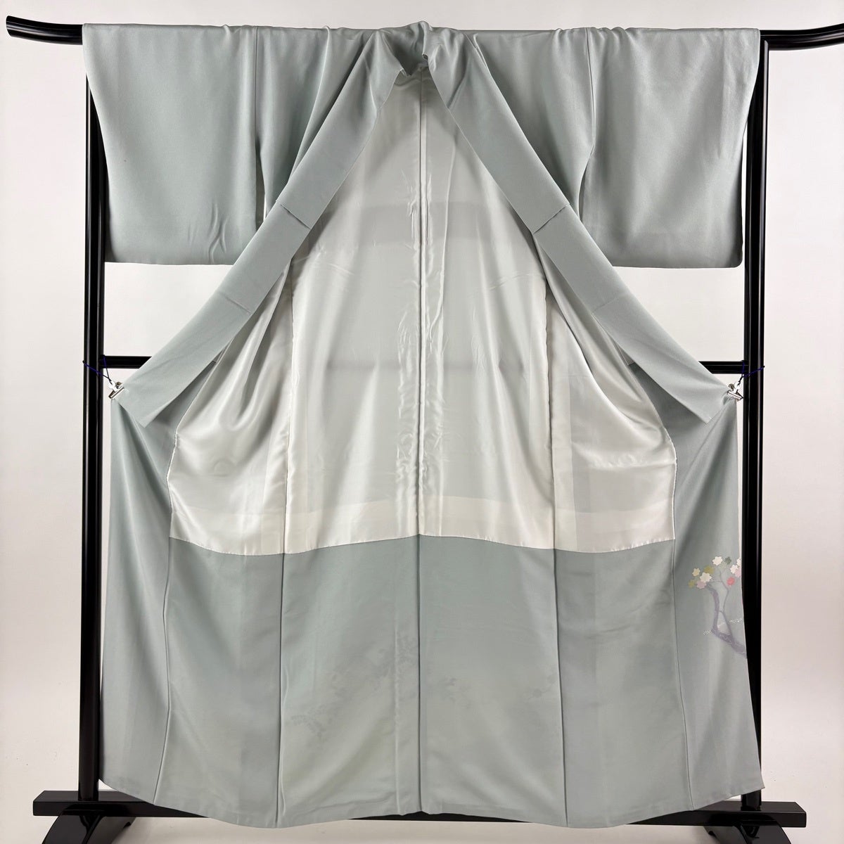 付下げ 身丈160cm 裄丈64cm M 袷 梅 桧扇 金糸 刺繍 灰色 正絹 秀品