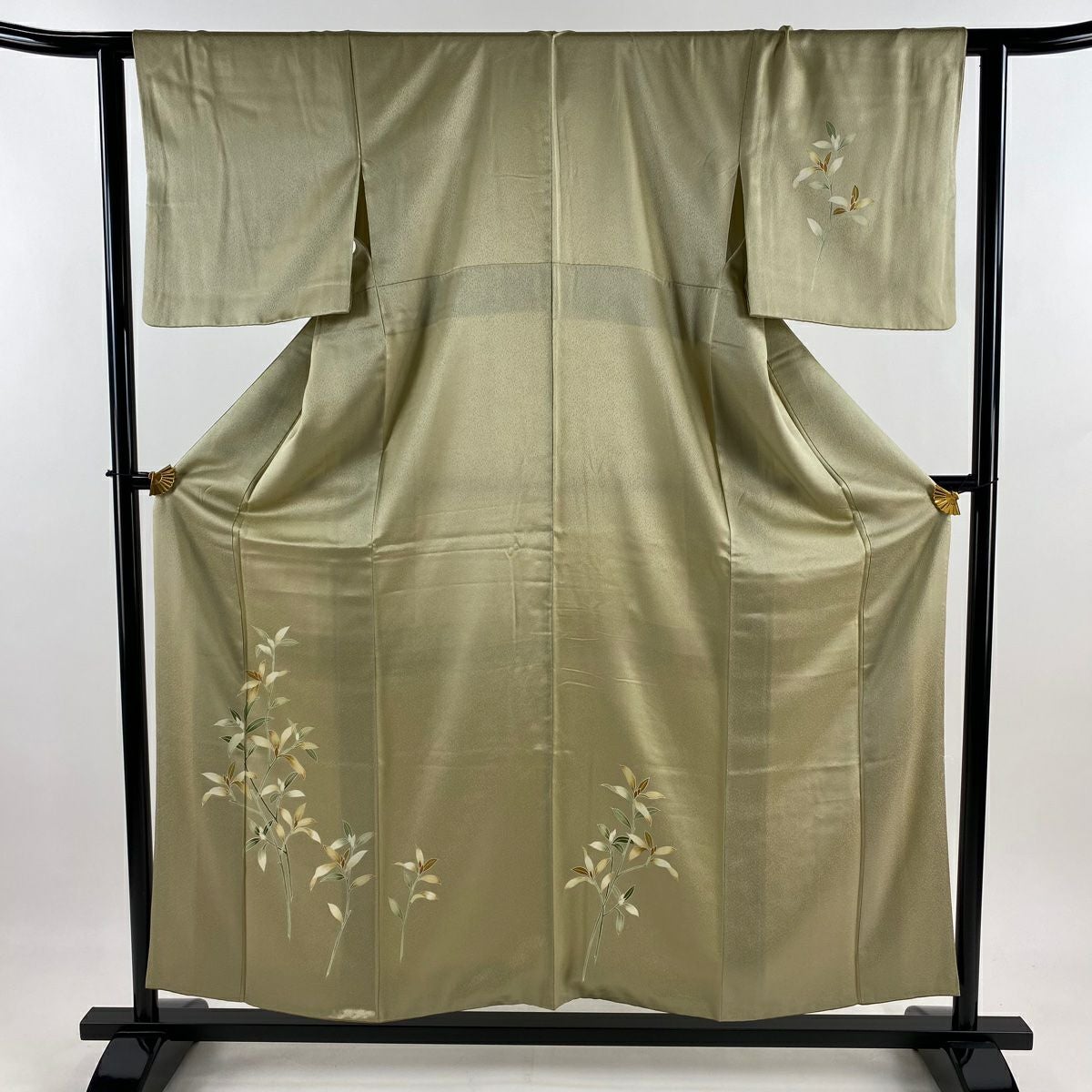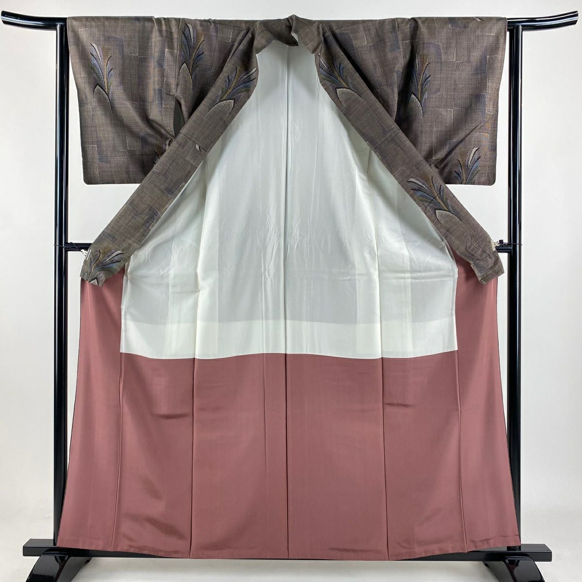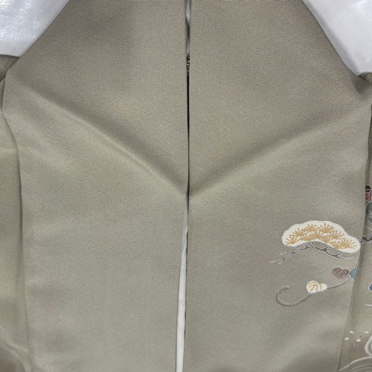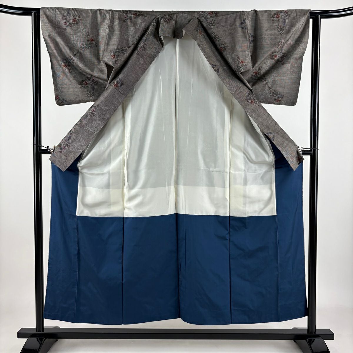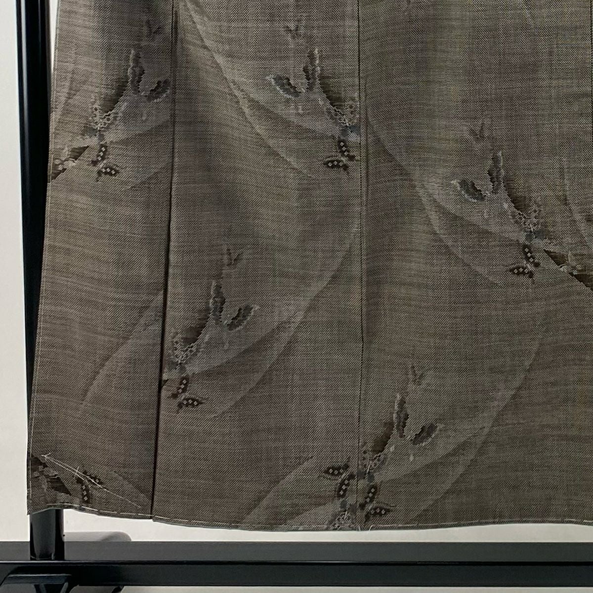 付下げ 身丈160cm 裄丈64cm M 袷 梅 桧扇 金糸 刺繍 灰色 正絹 秀品
