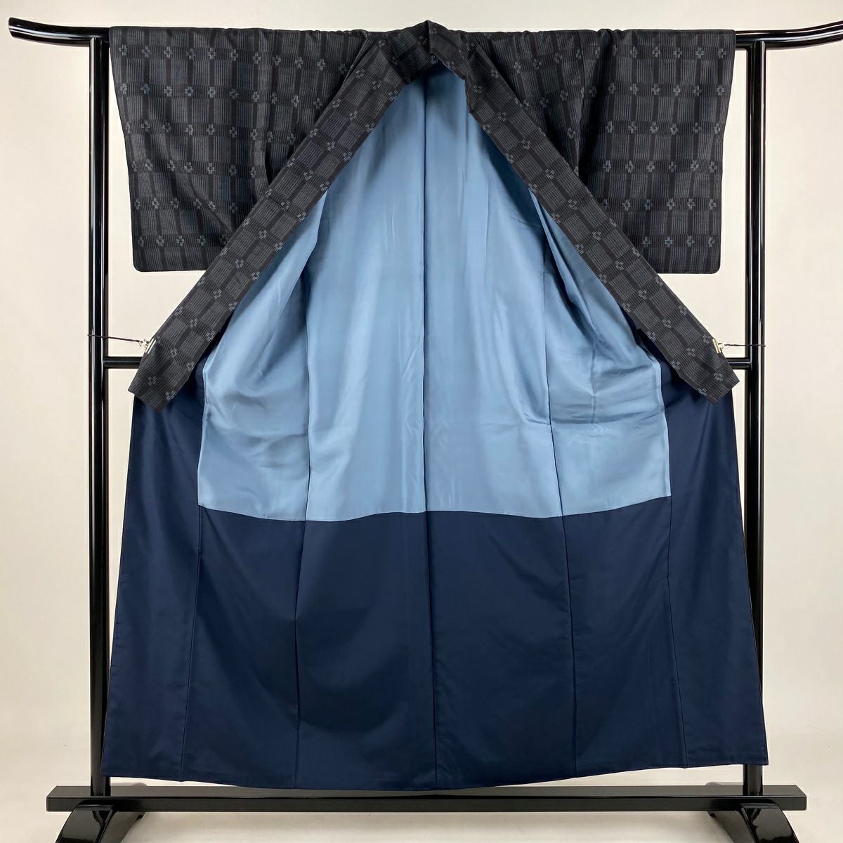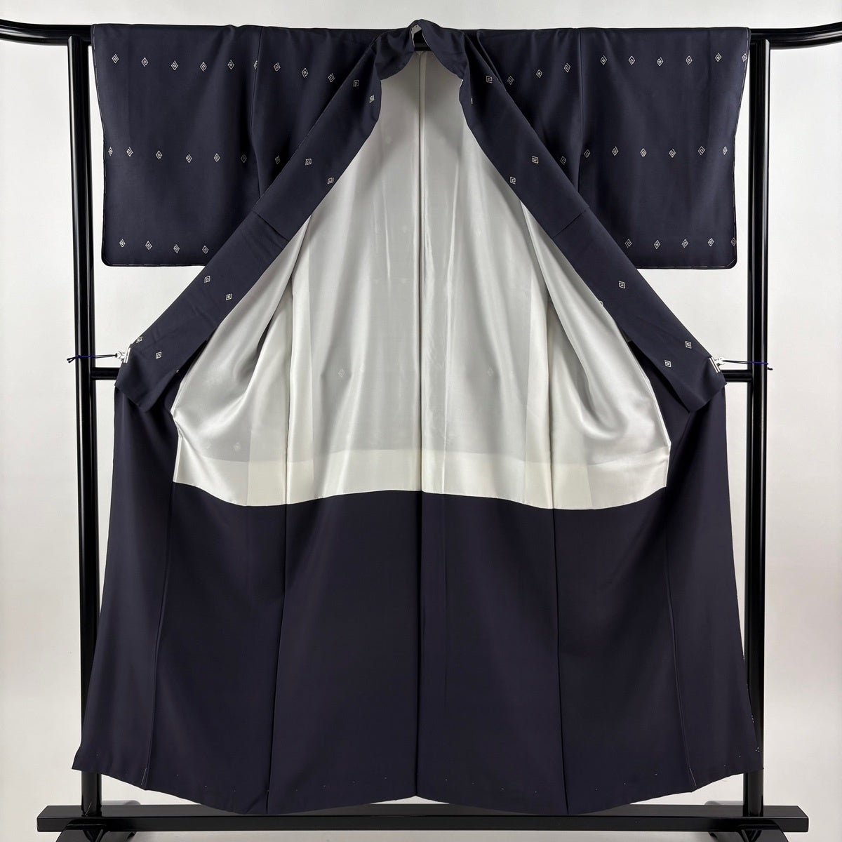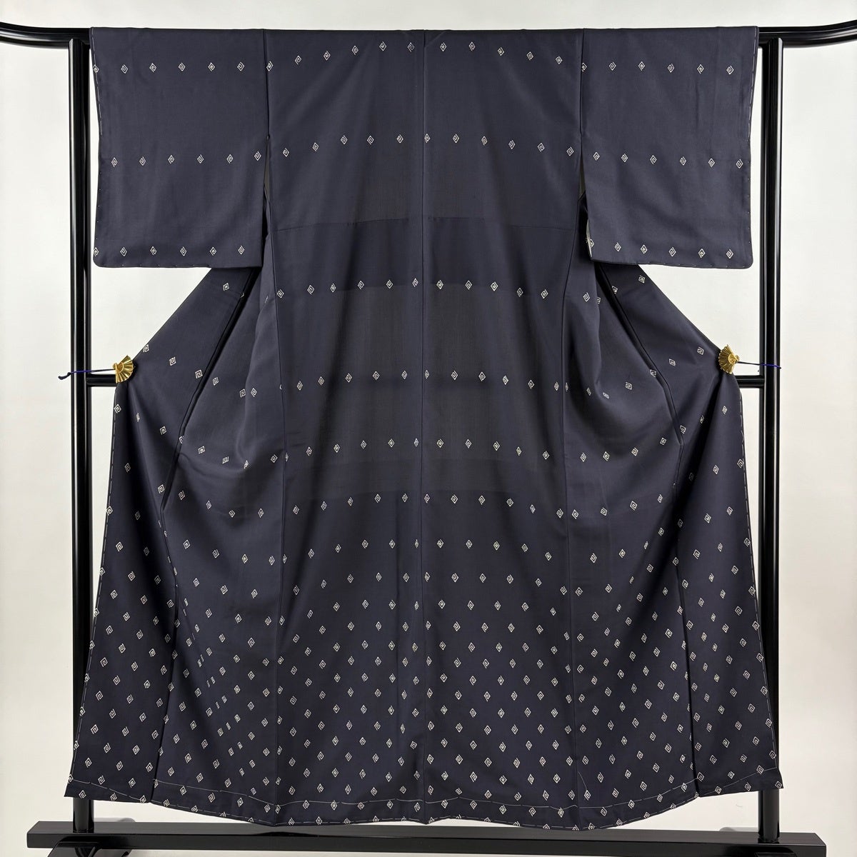 付下げ 身丈154.5cm 裄丈62.5cm S 袷 紬地 幾何学模様 濃紺 正絹 秀品