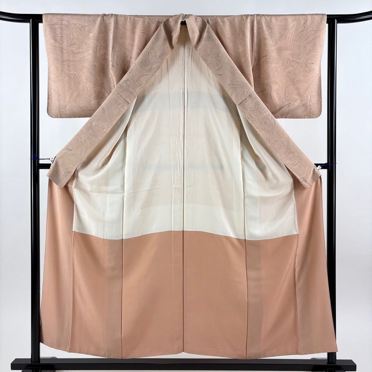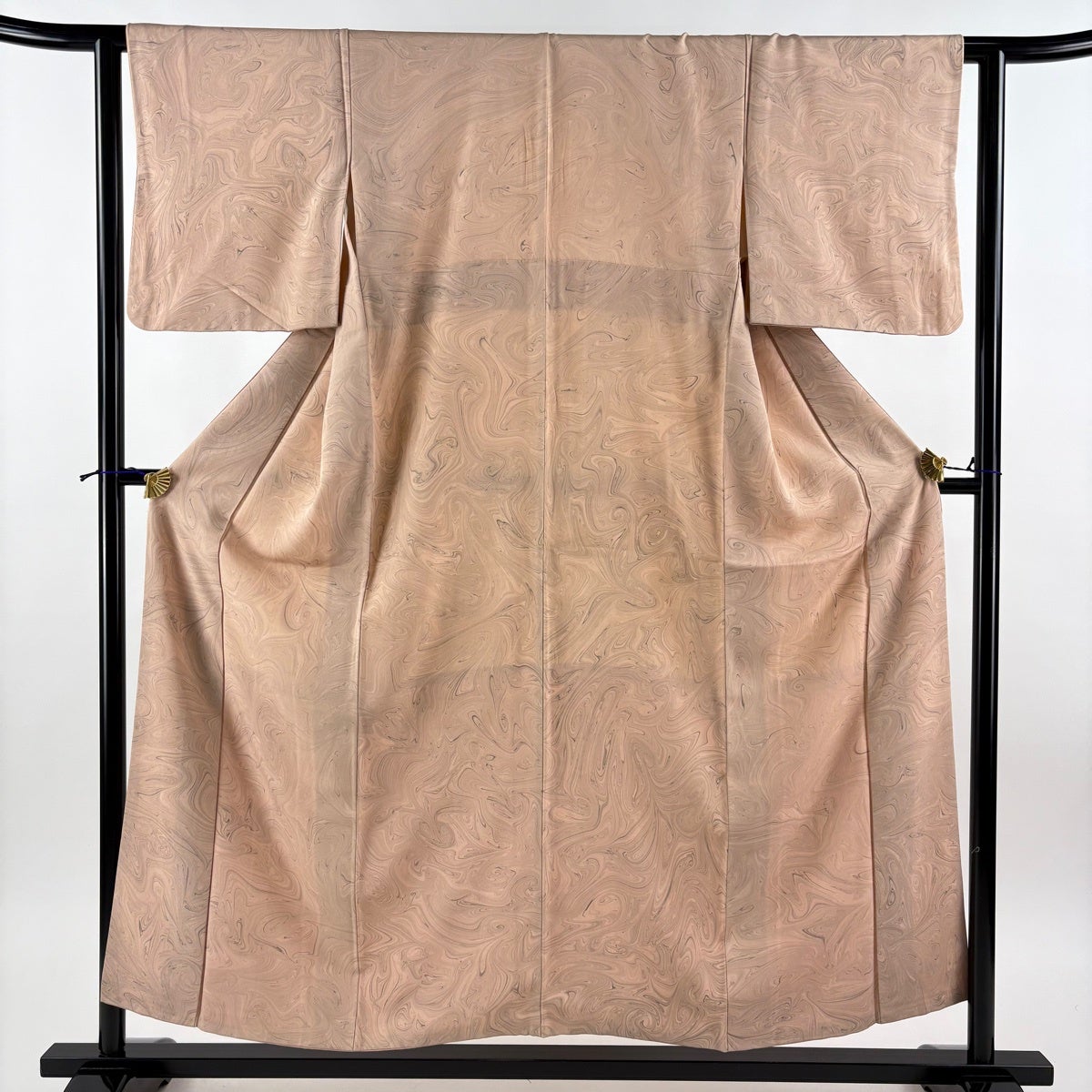 小紋 身丈154cm 裄丈62cm S 袷 墨流し ピンクベージュ 正絹 秀品