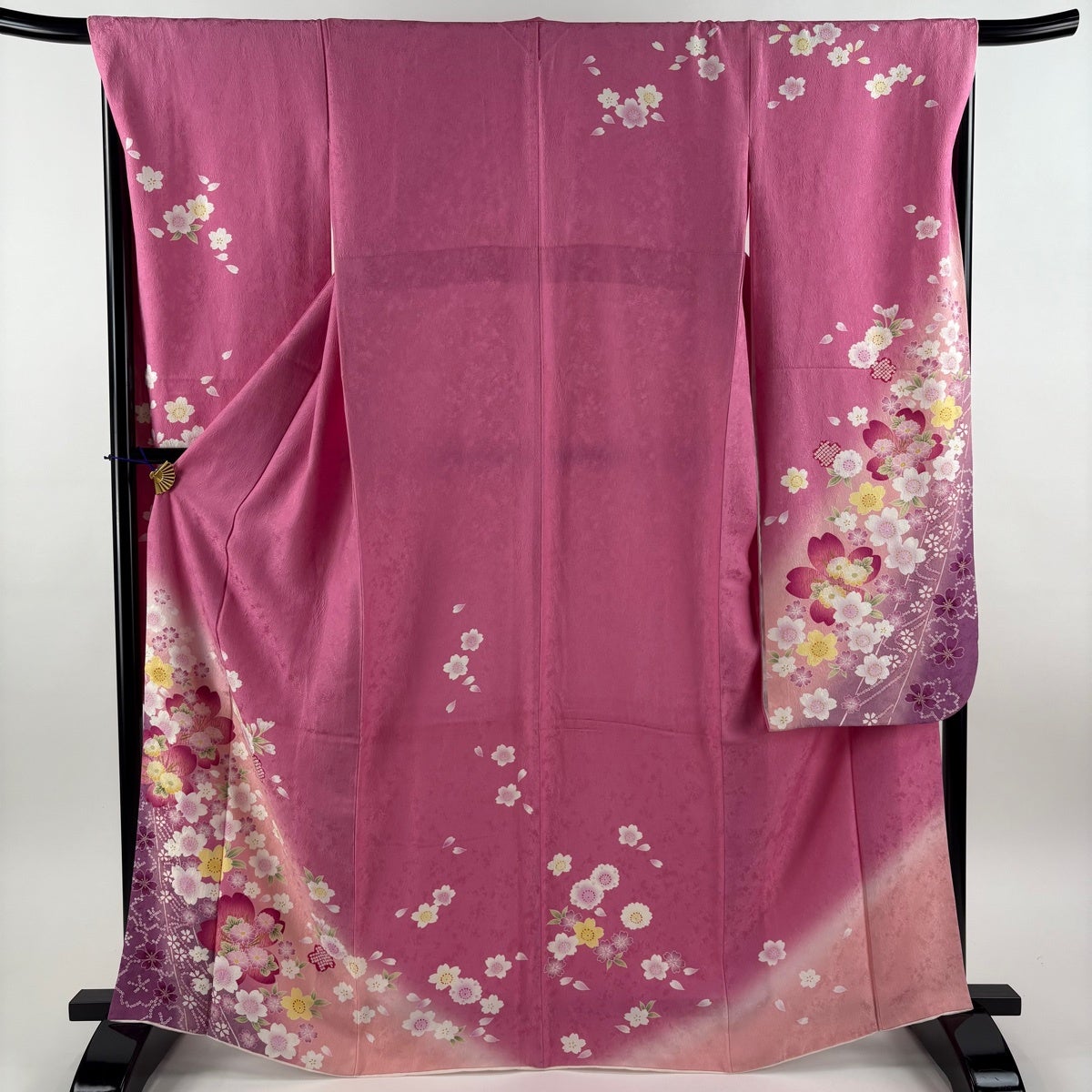 振袖 身丈168cm 裄丈68cm L 袷 桜 花弁 金彩 ぼかし ピンク 正絹 秀品