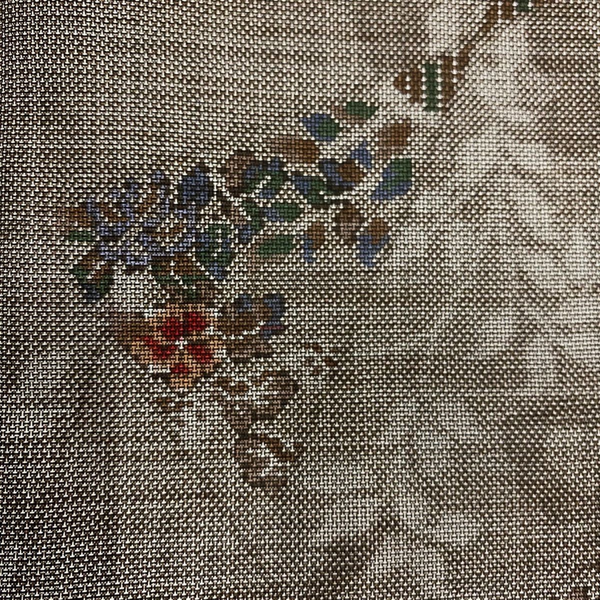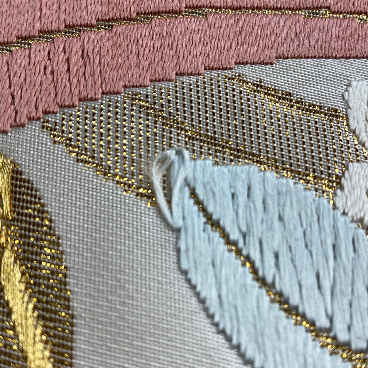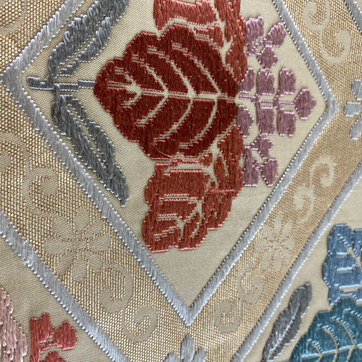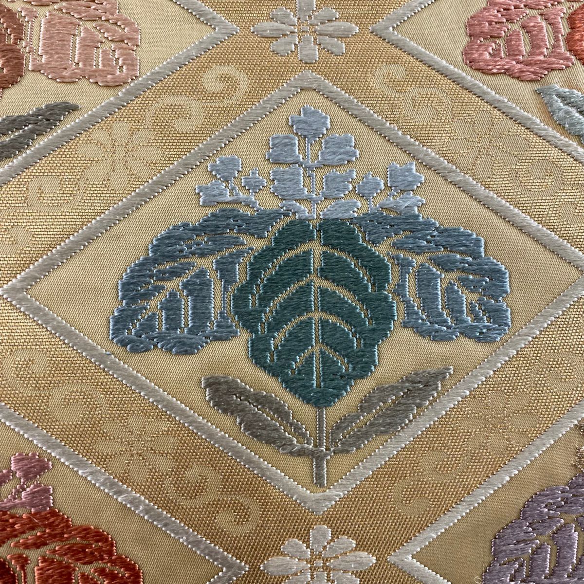 袋帯 秀品 関西仕立て 扇面 牡丹 箔 刺繍 ピンクベージュ お太鼓柄 正絹