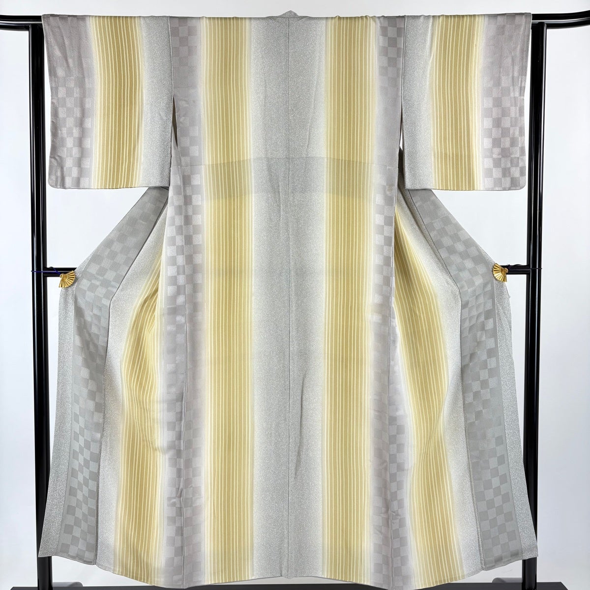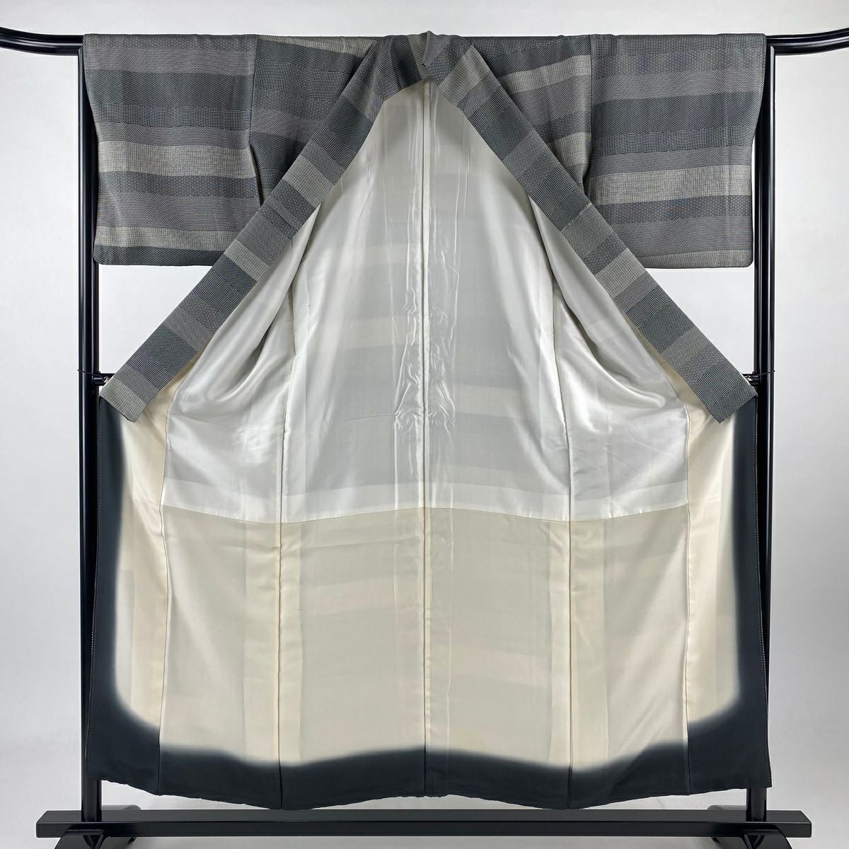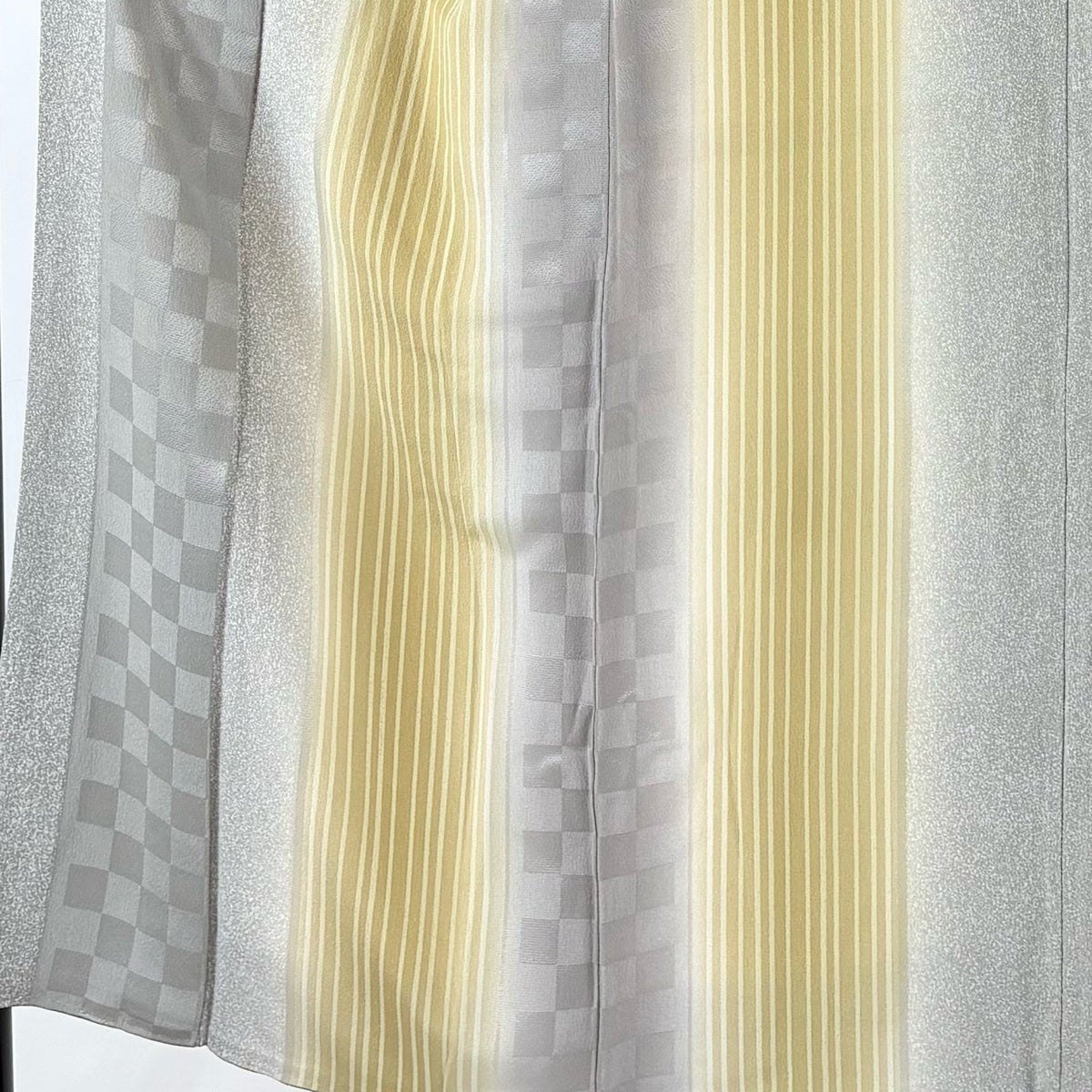 小紋 身丈152.5cm 裄丈63.5cm S 袷 縦縞 市松 ぼかし 灰色 正絹 秀品