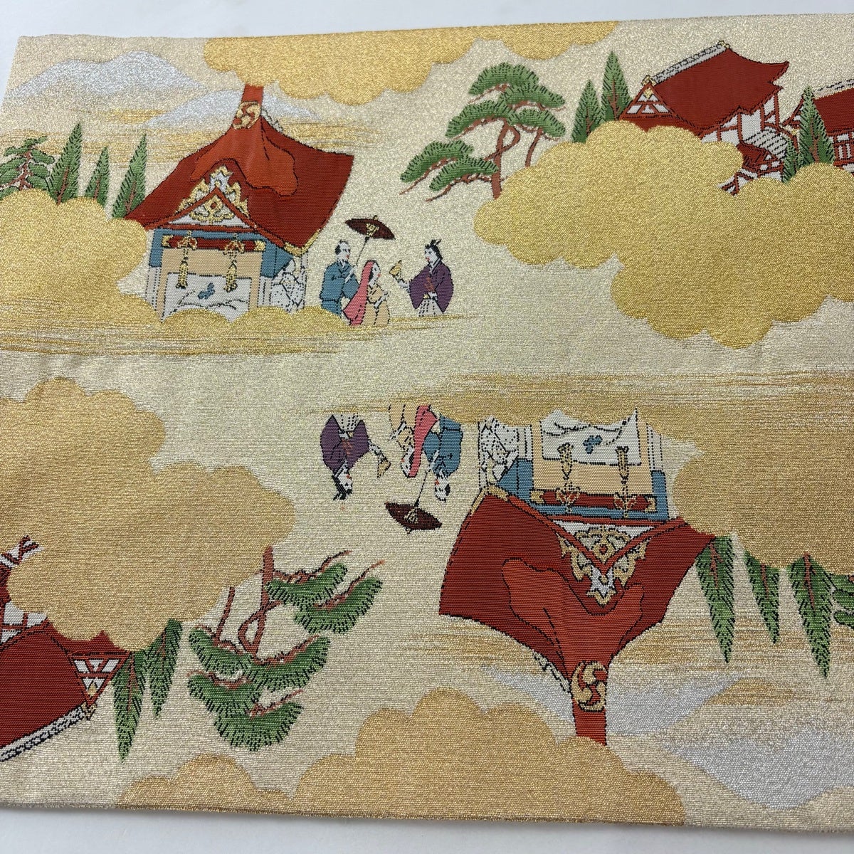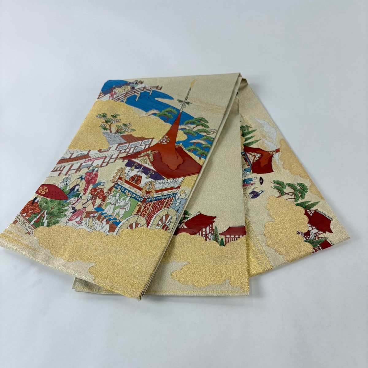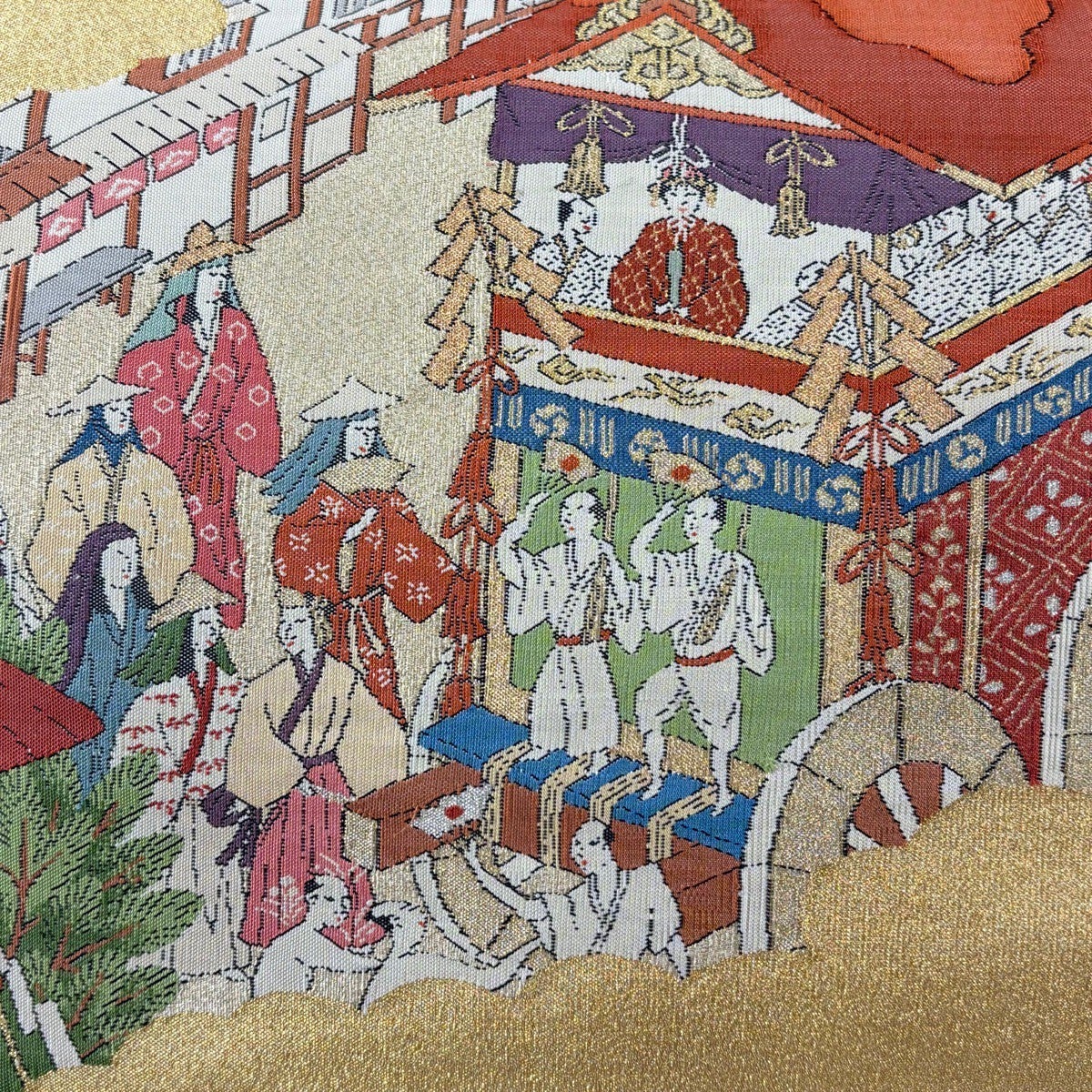 【美品】 袋帯 秀品 関西仕立て 山鉾 人物 金銀糸 ベージュ お太鼓柄 正絹