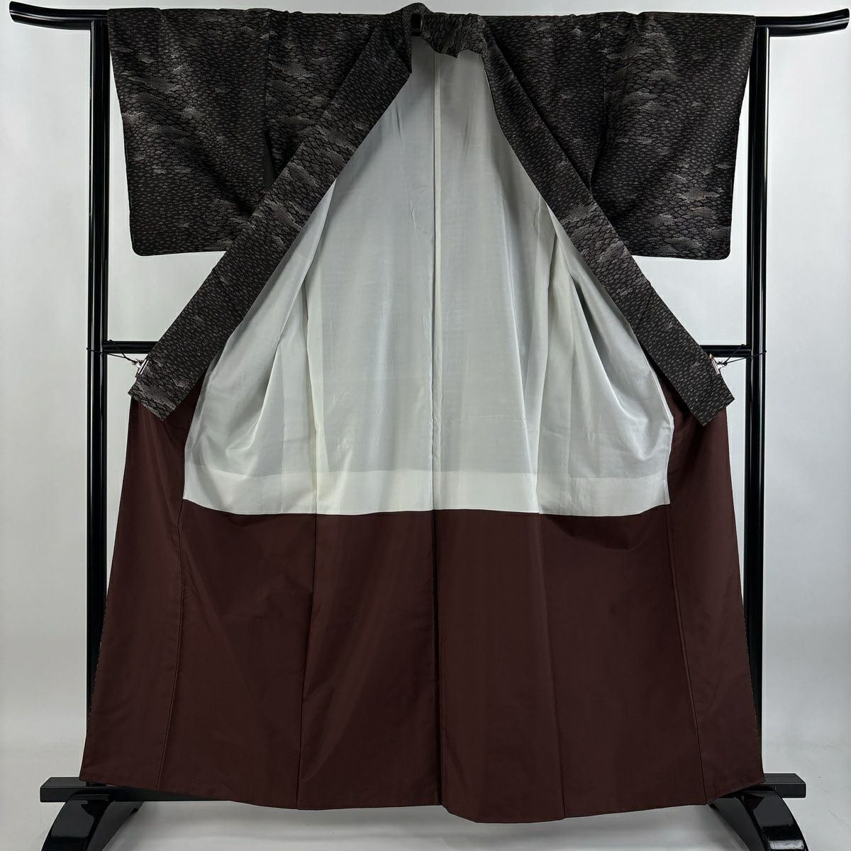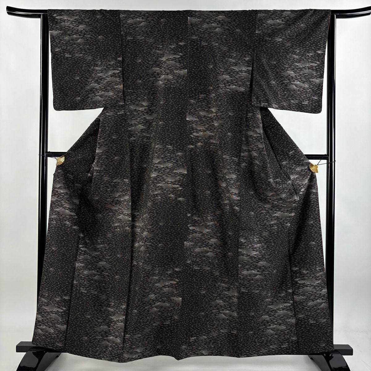 訪問着 身丈155cm 裄丈65cm M 袷 笠松 波 金彩 灰茶 正絹 秀品 一つ紋