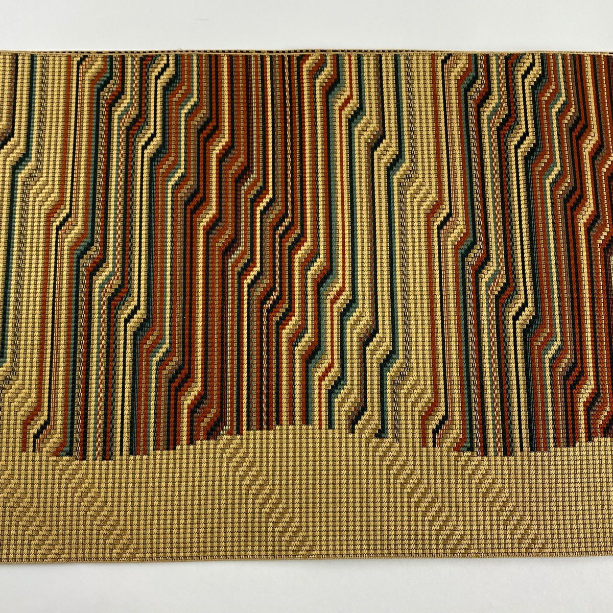 【美品】 名古屋帯 秀品 八寸名古屋帯 松葉仕立て 縞 幾何学模様 金糸 クリーム 正絹