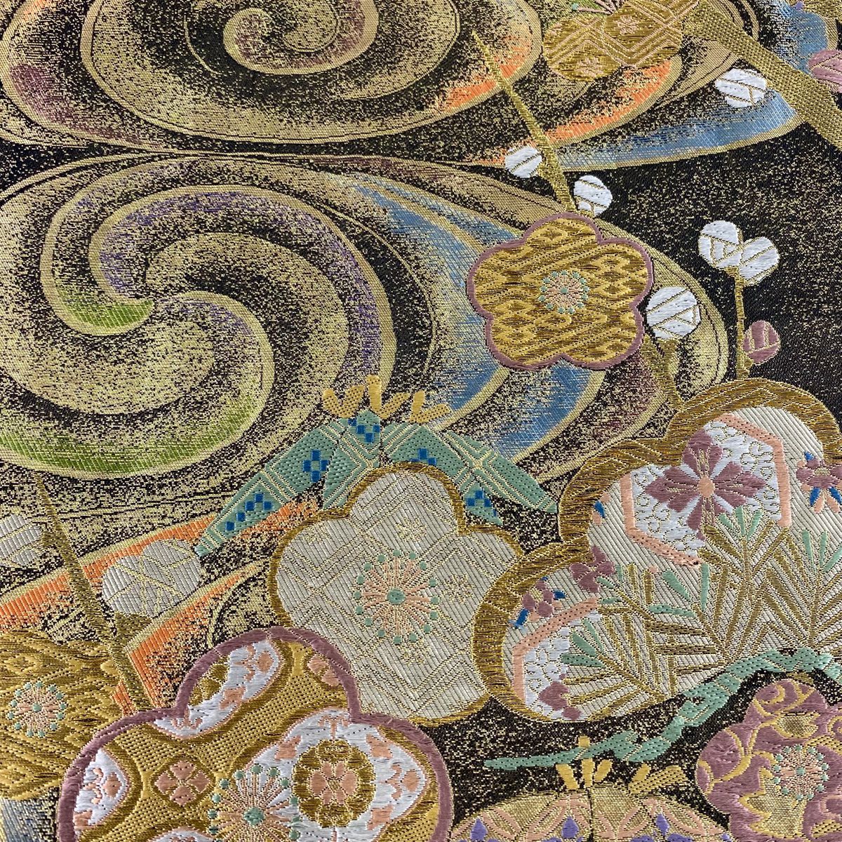【美品】 袋帯 秀品 伝統工芸士 華文 花うさぎ 金糸 唐織 墨色 お太鼓柄 正絹