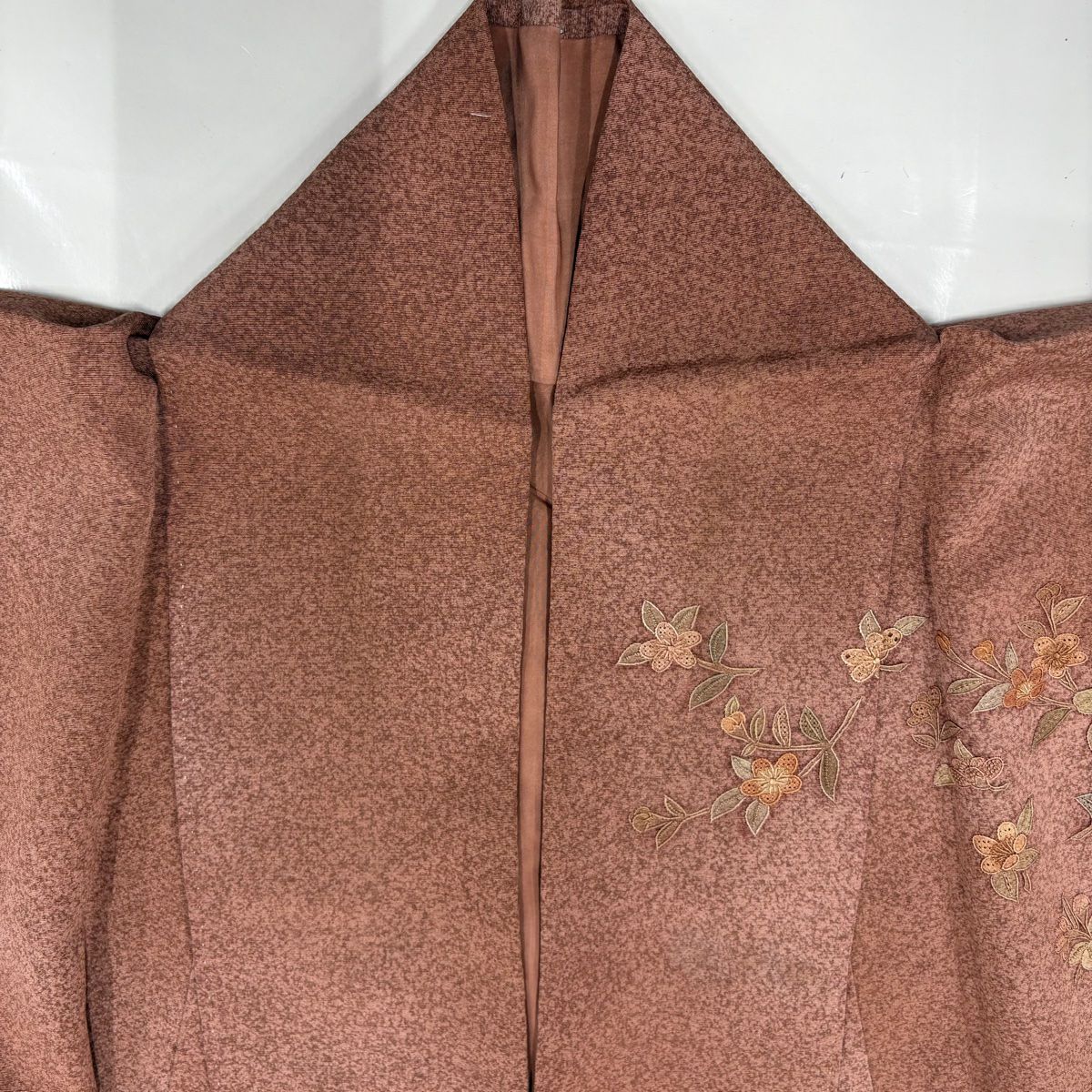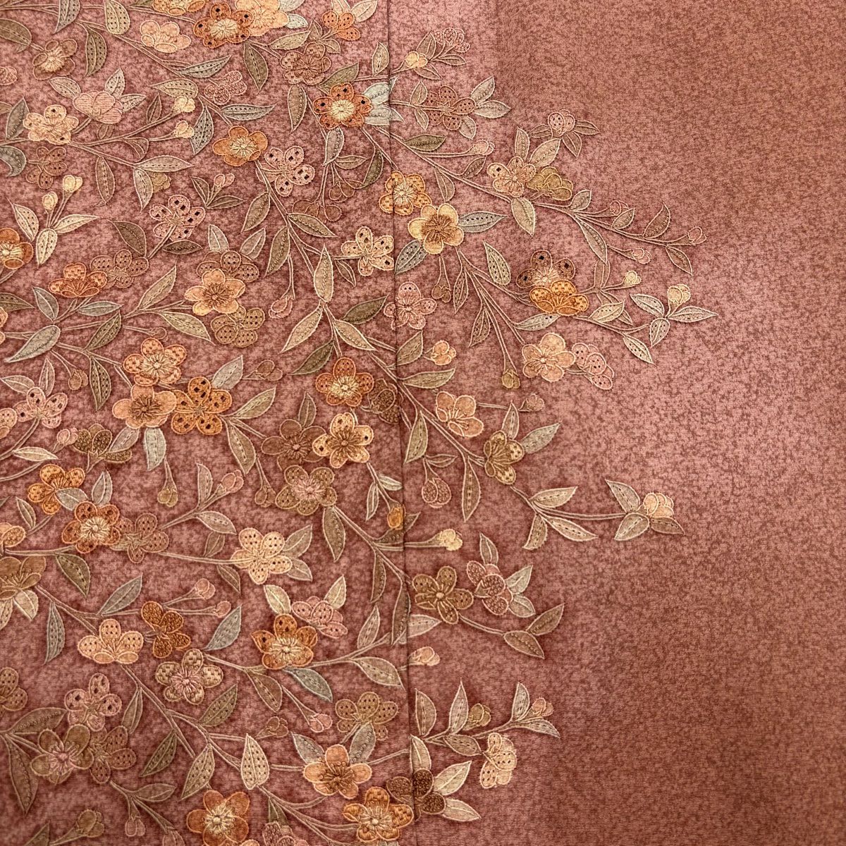 訪問着 身丈158cm 裄丈67cm M 袷 枝花 刺繍 ぼかし 赤茶 正絹 秀品