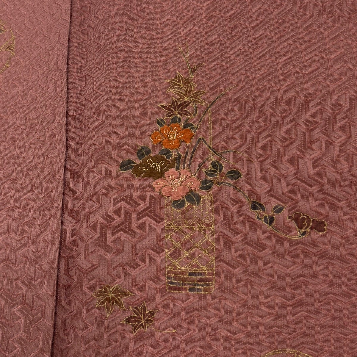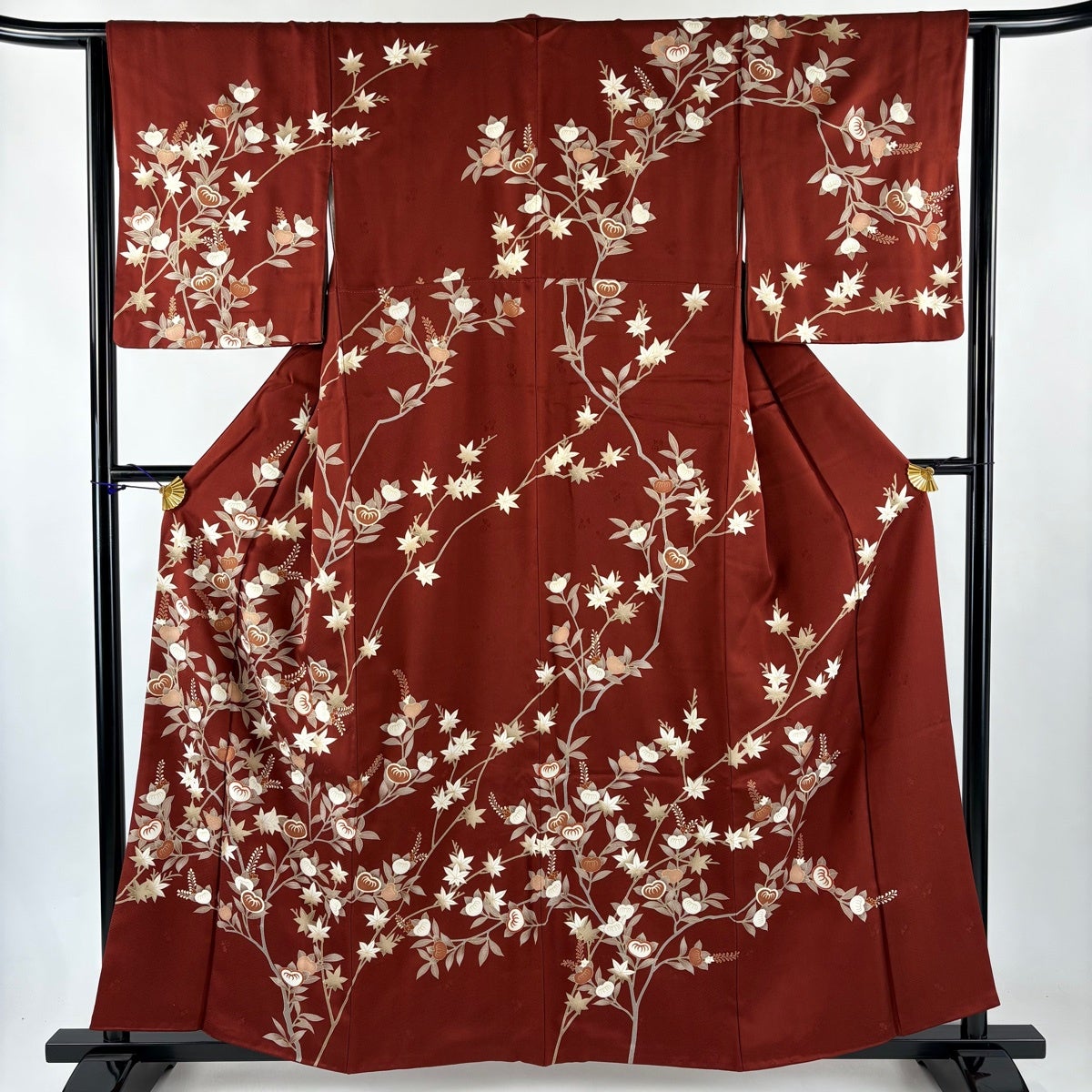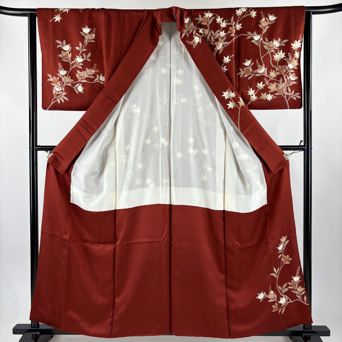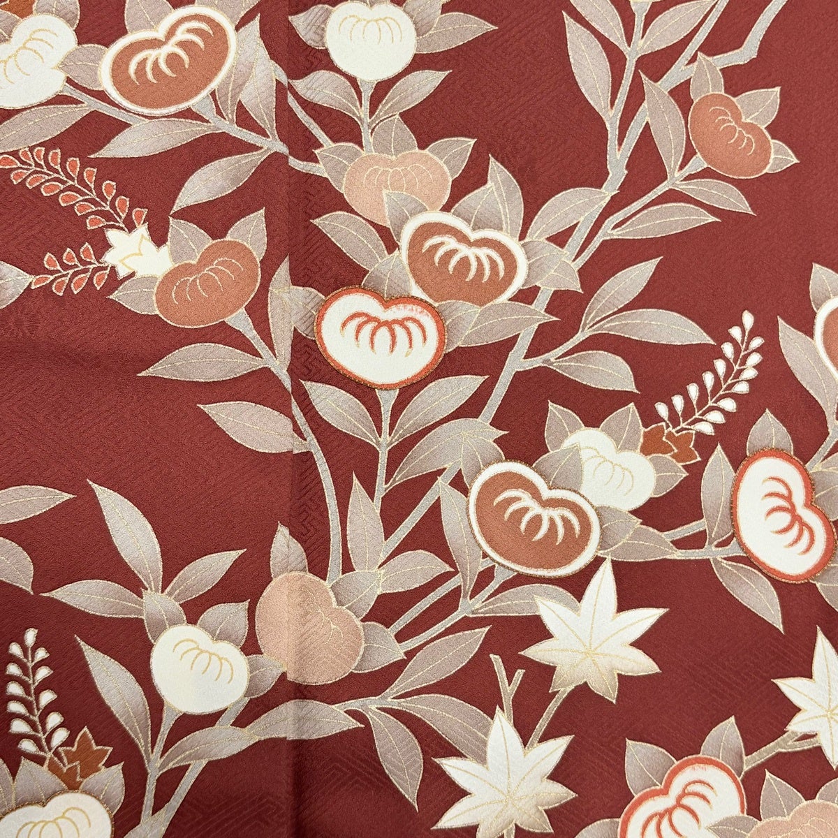 付下げ 身丈159cm 裄丈63cm S 袷 草花 楓 刺繍 金彩 小豆色 正絹 秀品