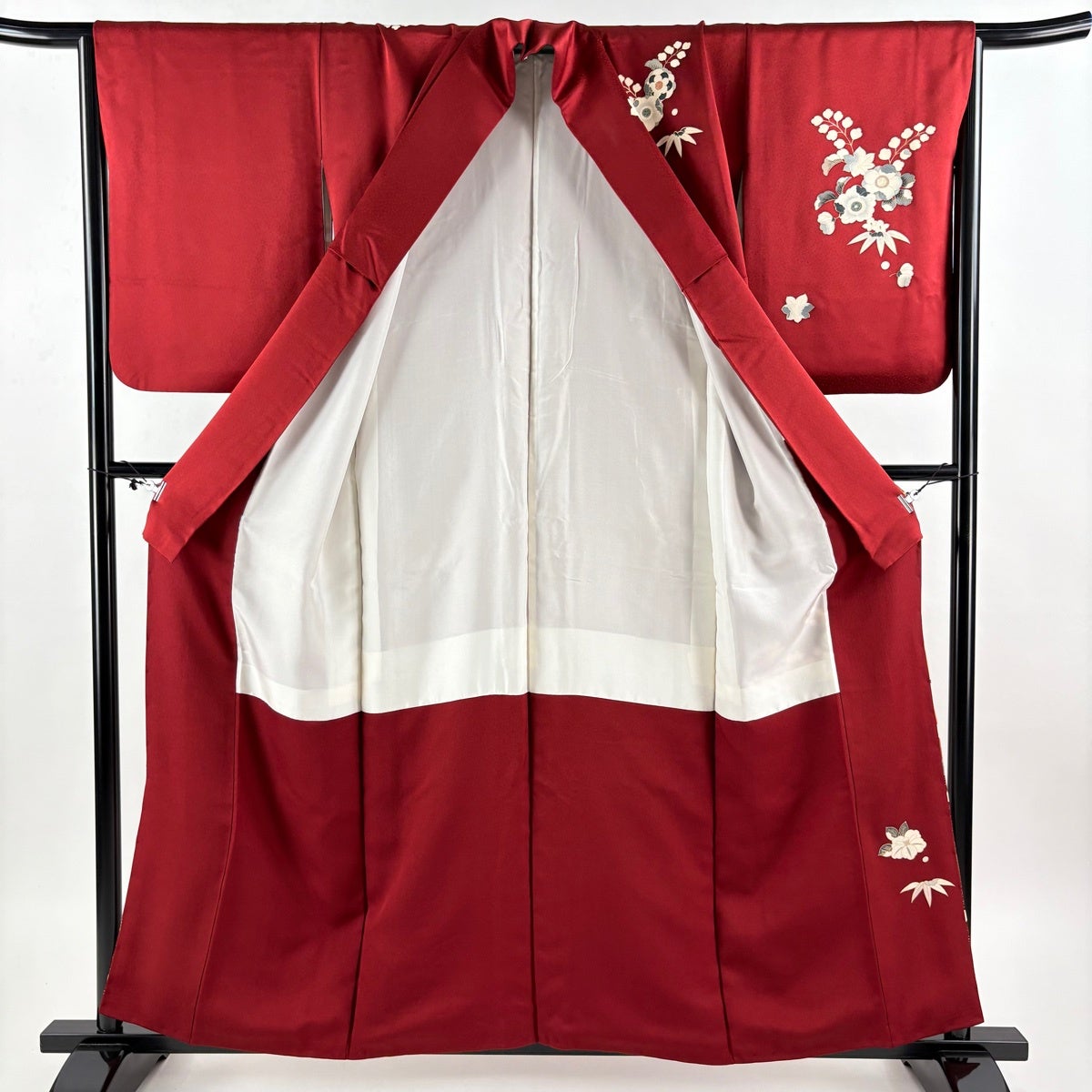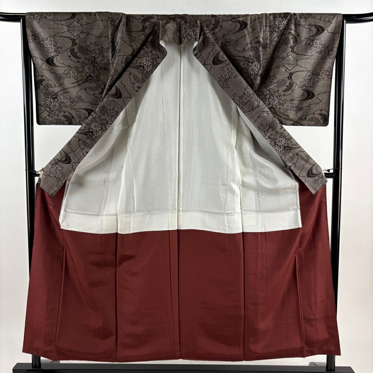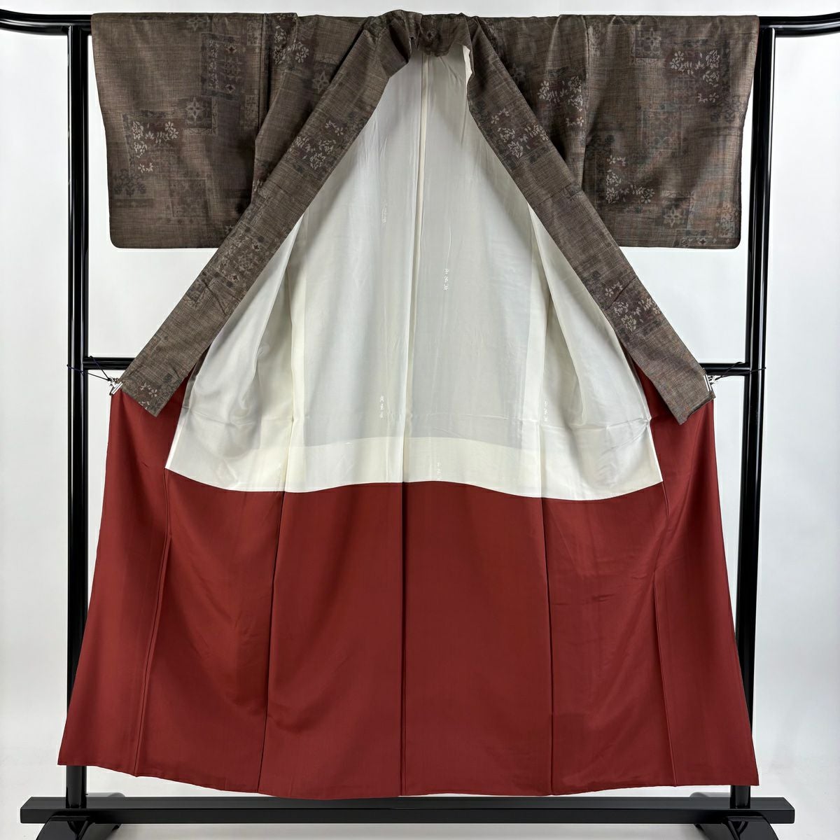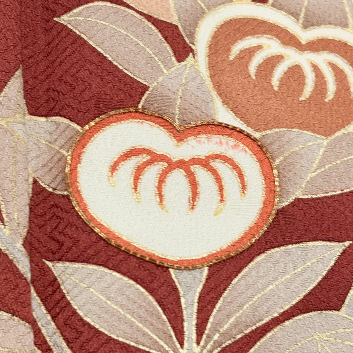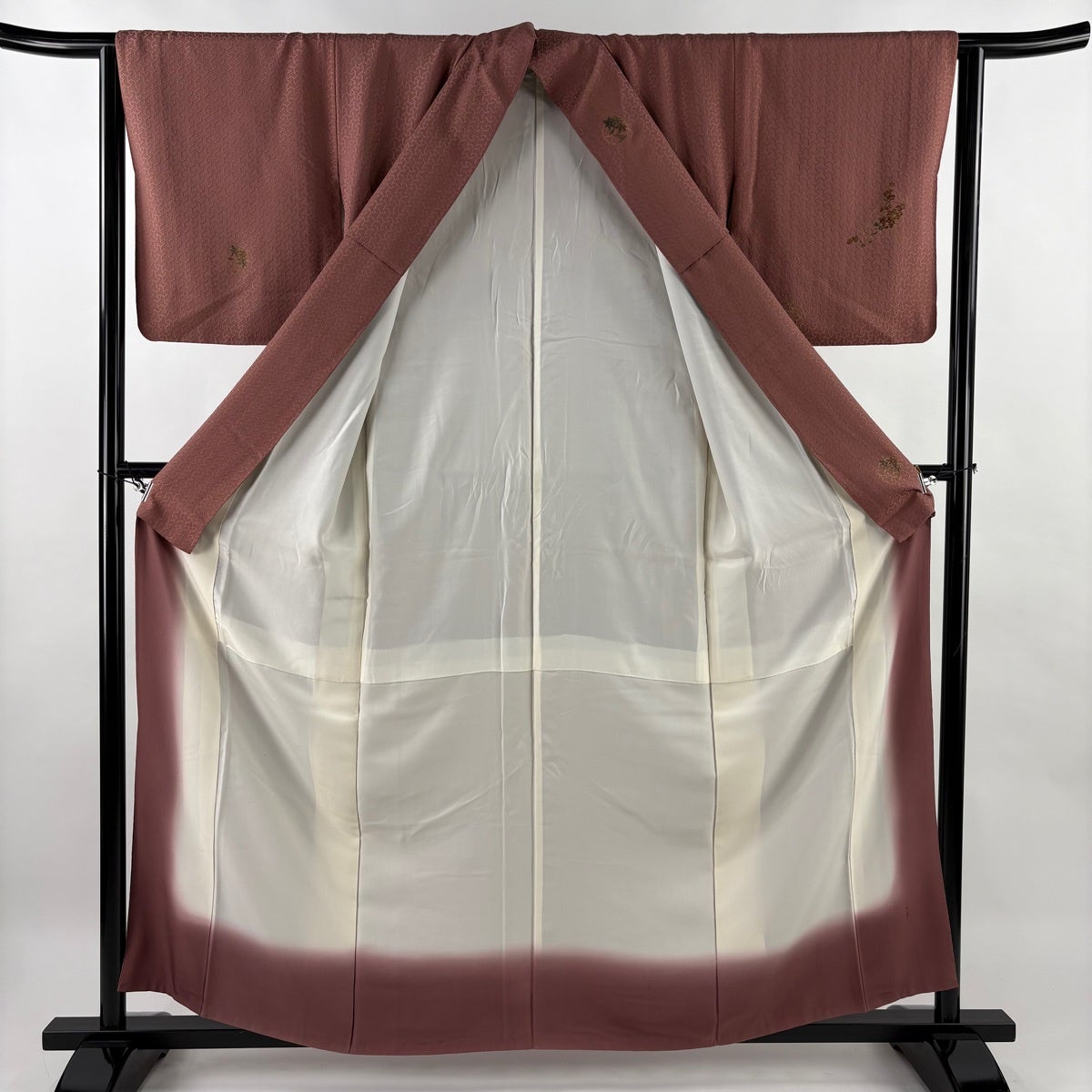 付下げ 身丈159cm 裄丈63cm S 袷 草花 楓 刺繍 金彩 小豆色 正絹 秀品
