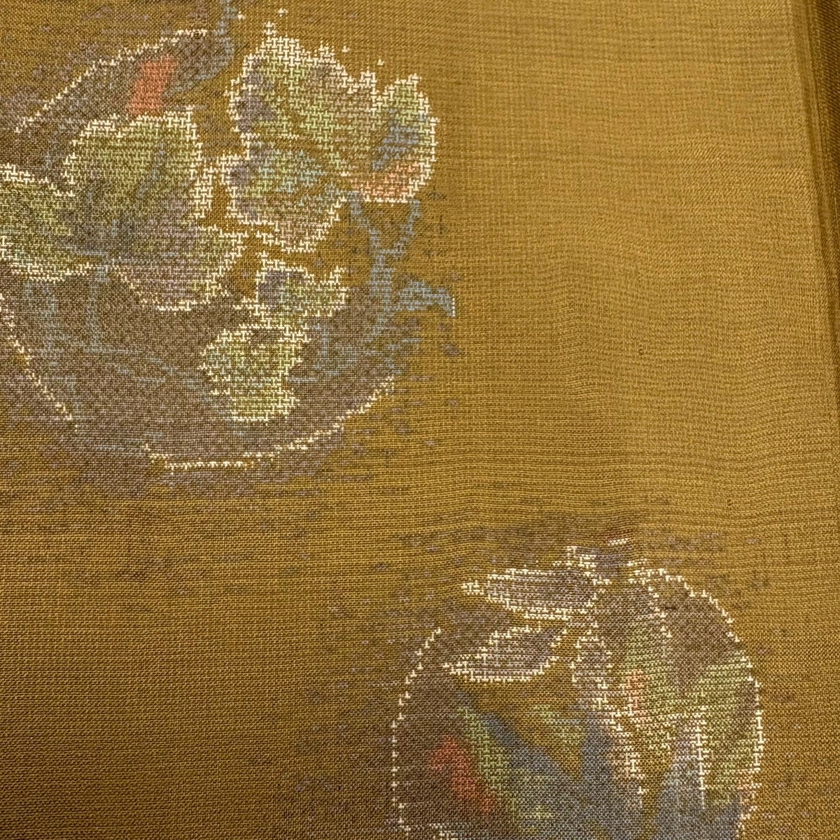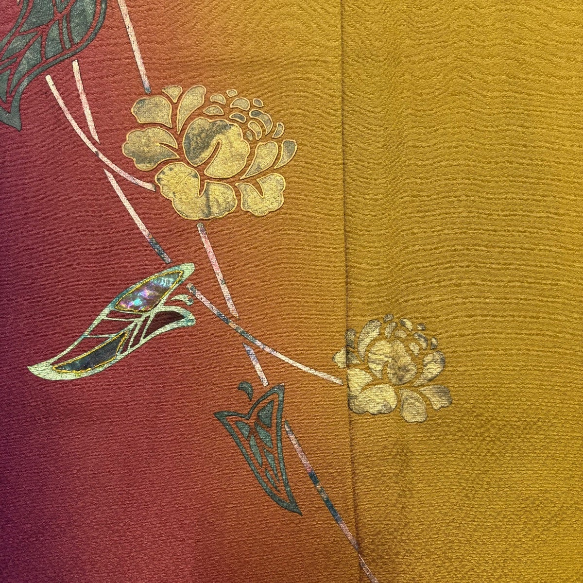 振袖 身丈168cm 裄丈72cm L 袷 草花 金彩 染め分け からし色 正絹 秀品