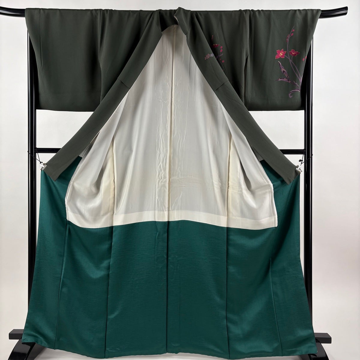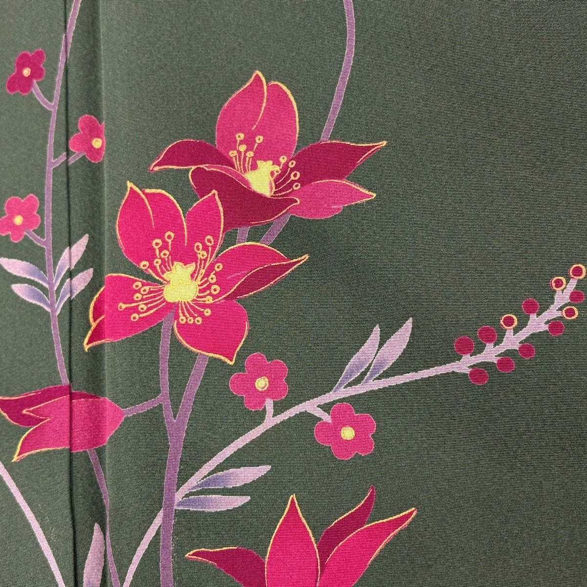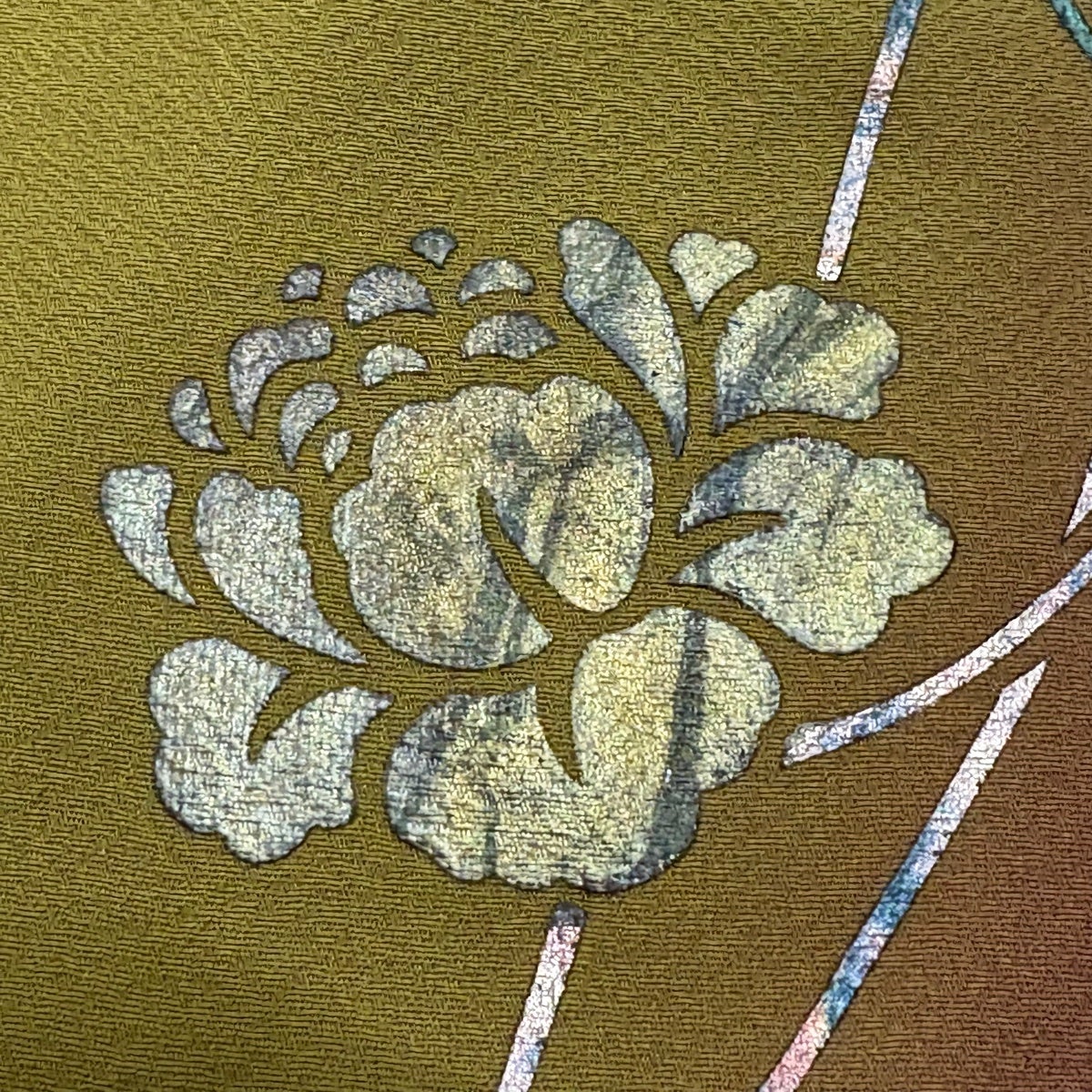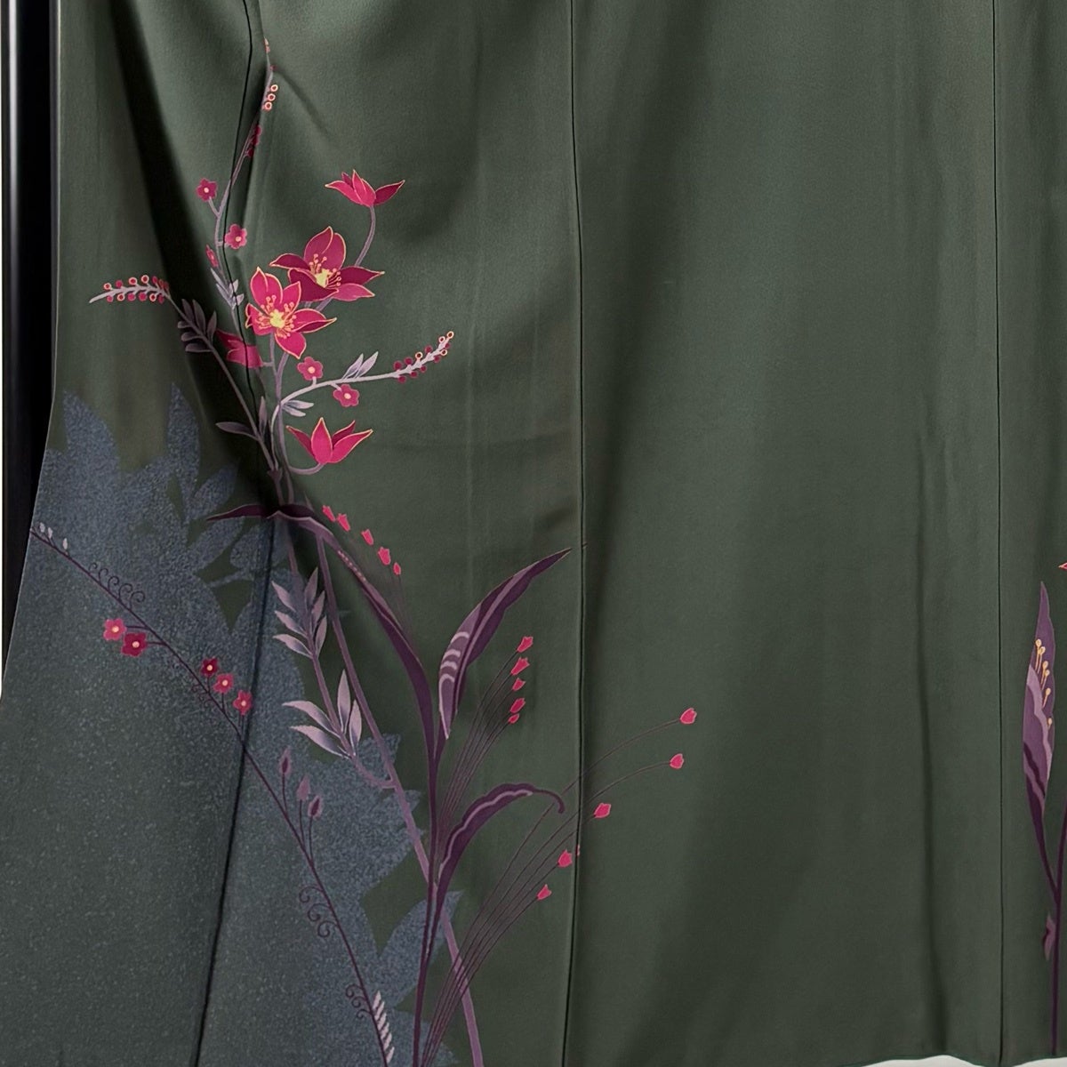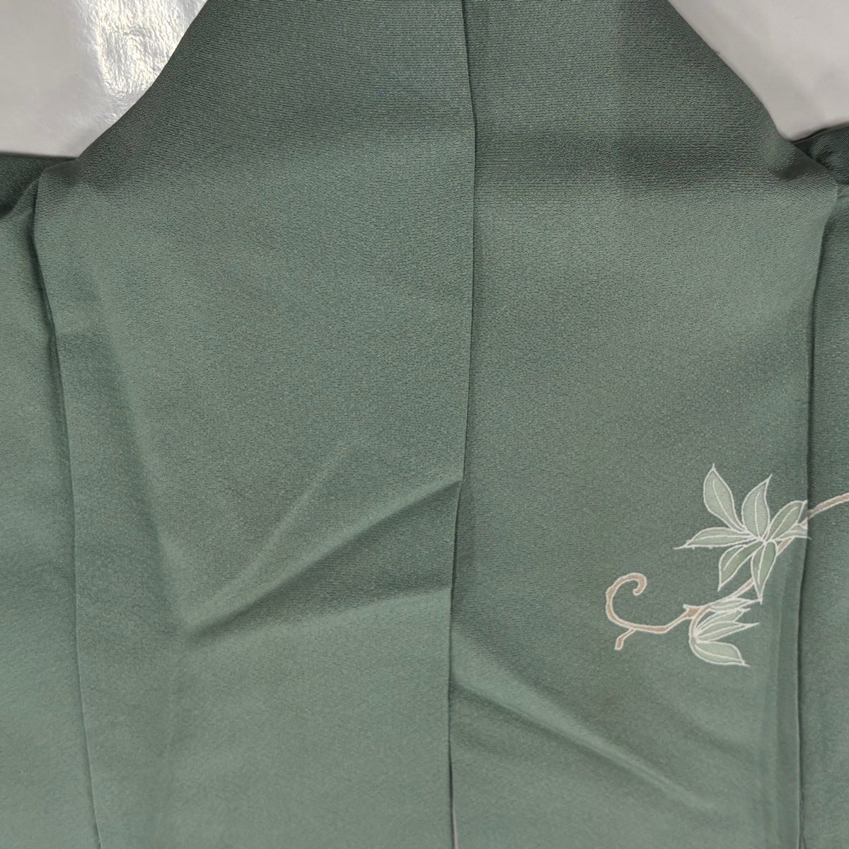付下げ 身丈167cm 裄丈70cm L 袷 草花 シルエット 金彩 深緑 正絹 秀品
